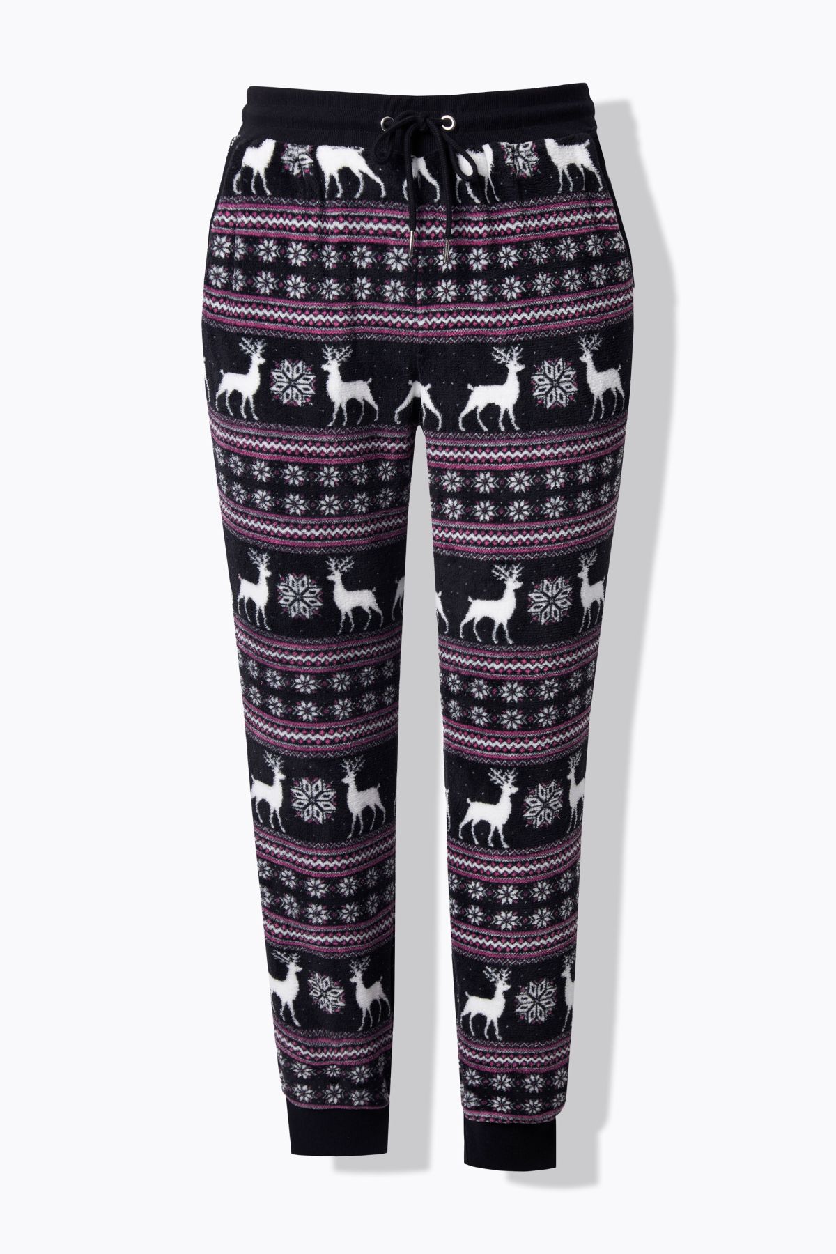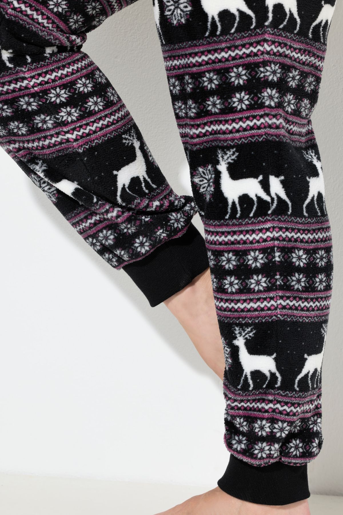 Панталон плюшен с норвежки принт. С контрастна еластична талия с връзка, странични джобове, принт и контрастни рипсени маншети на подгъва
