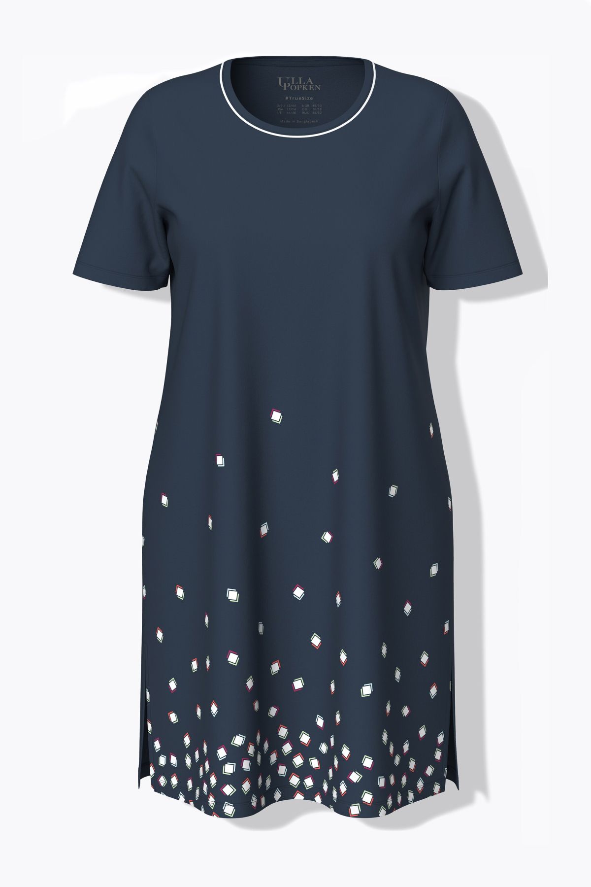 Нощници комплект от 2 броя - едноцветна с принт на подгъва и изцяло с ретро принт И двете с кръгло деколте, къси ръкави и странични цепки на подгъва.