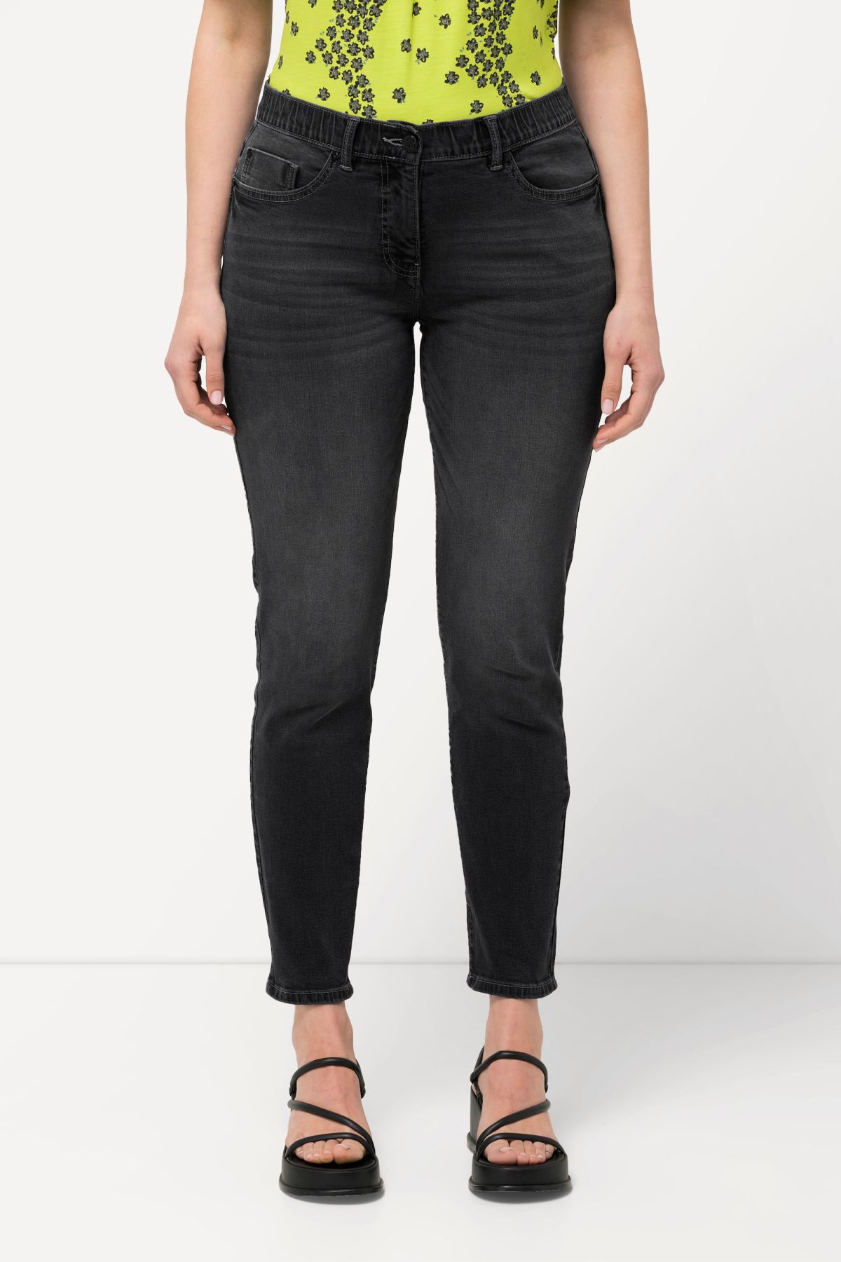 Комфортни, еластични дълги. С тесен силует, фиксирана талия с гайки за колан, копче и цип отпред. Дизайн с 5 джоба.
