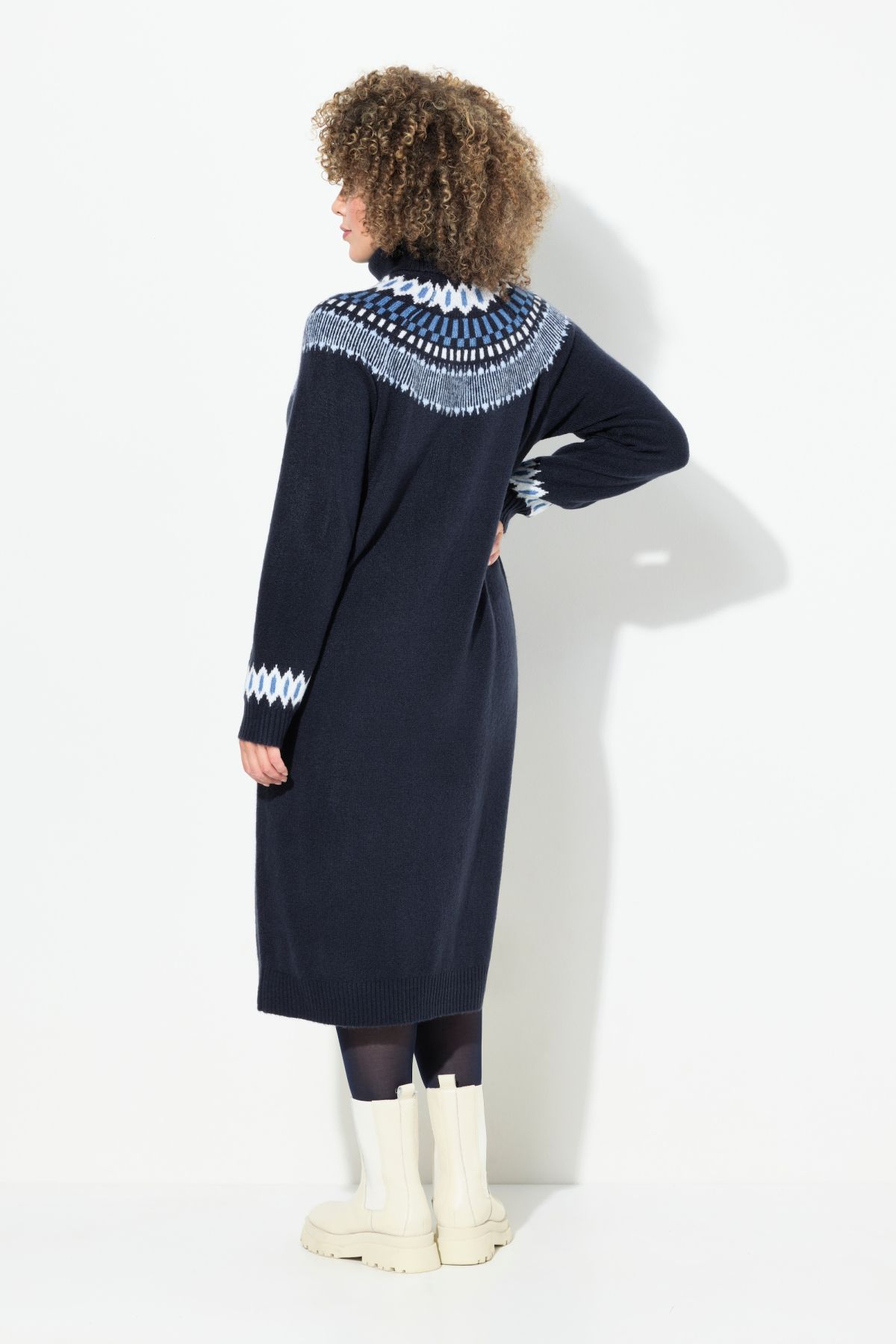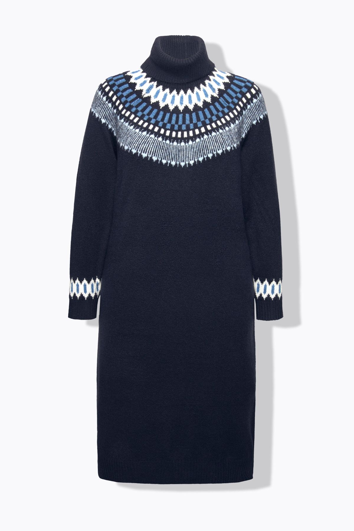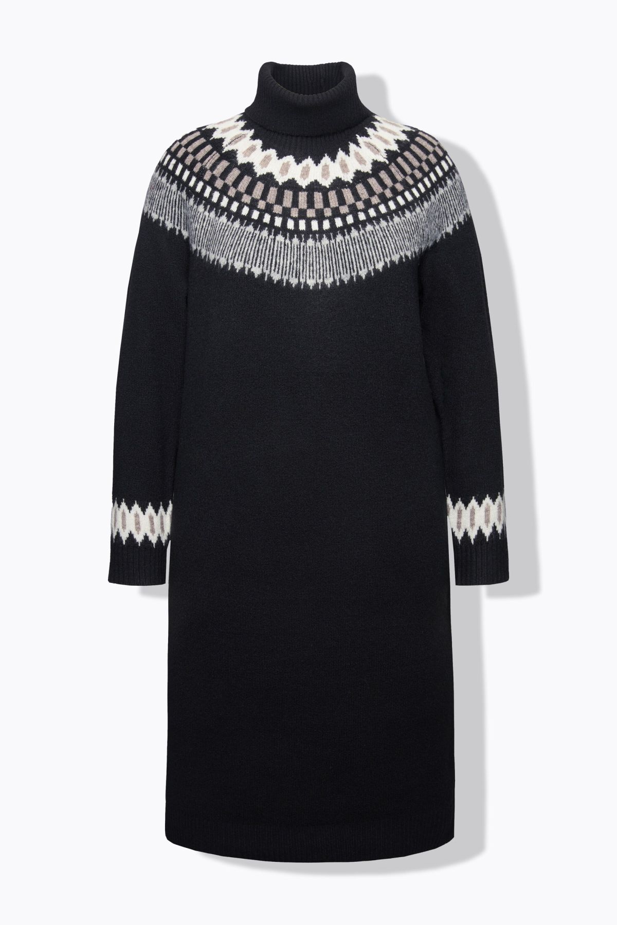 Плетена рокля с модерни норвежки мотиви. С изправена яка по врата и дълги ръкави с акцент. Мека и удобна за ежедневието.