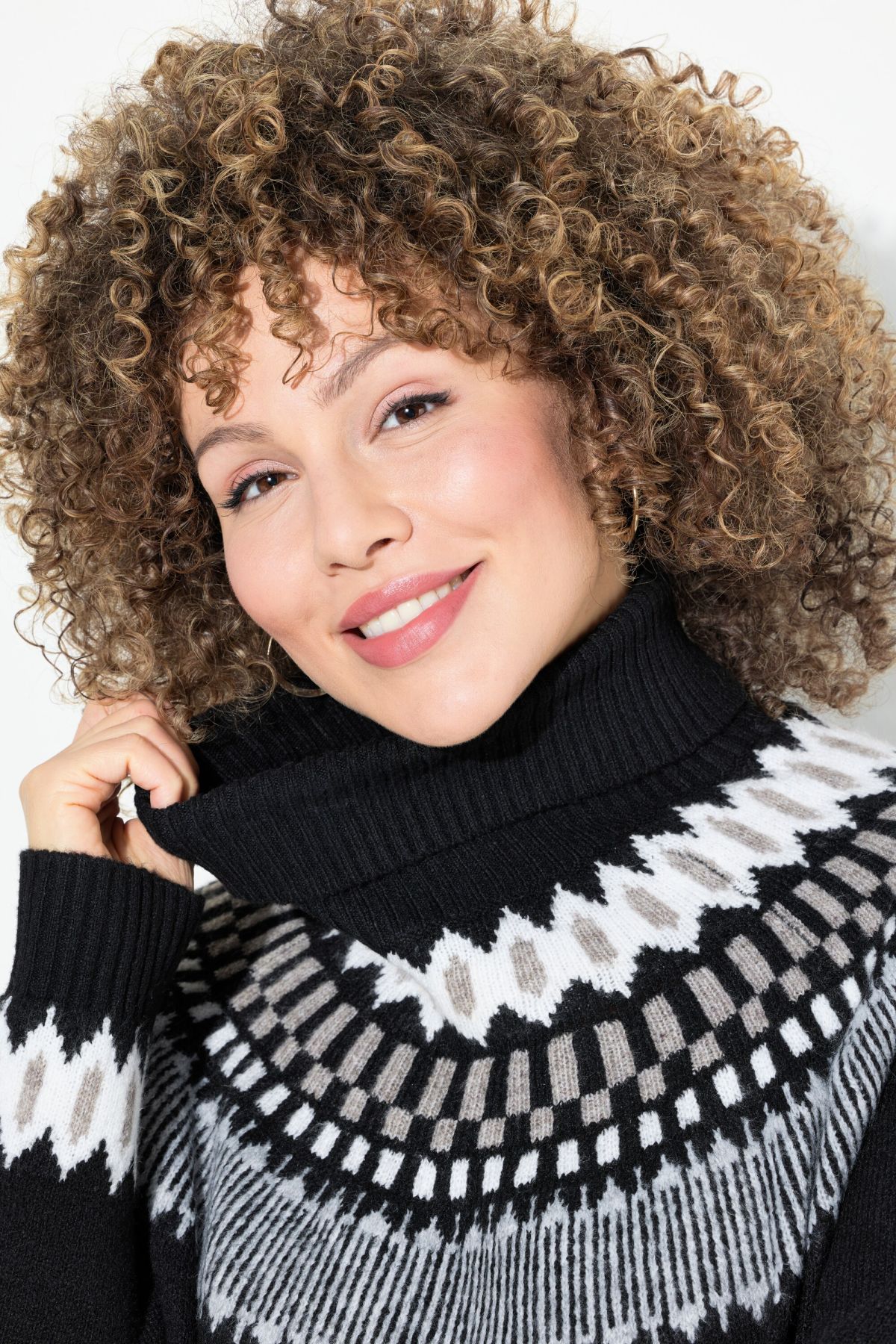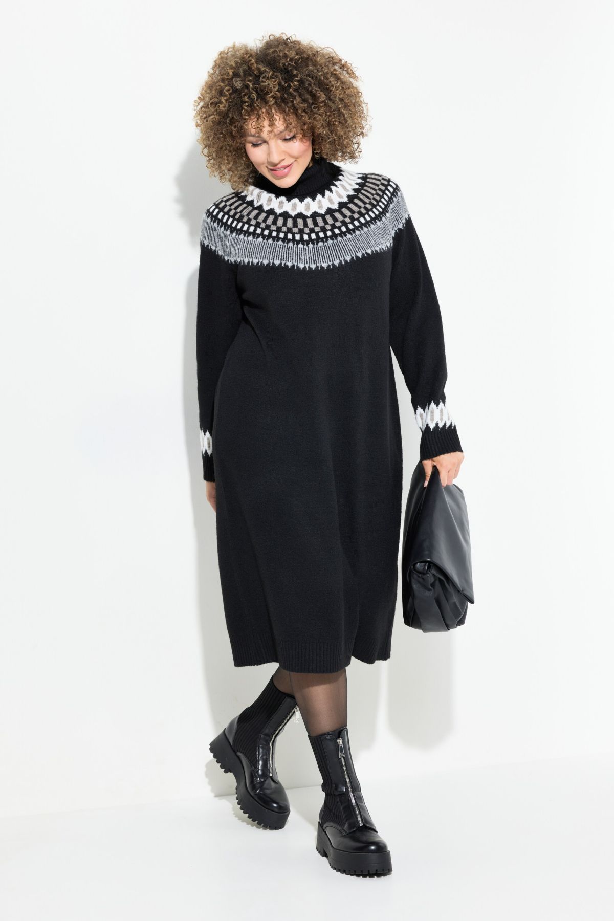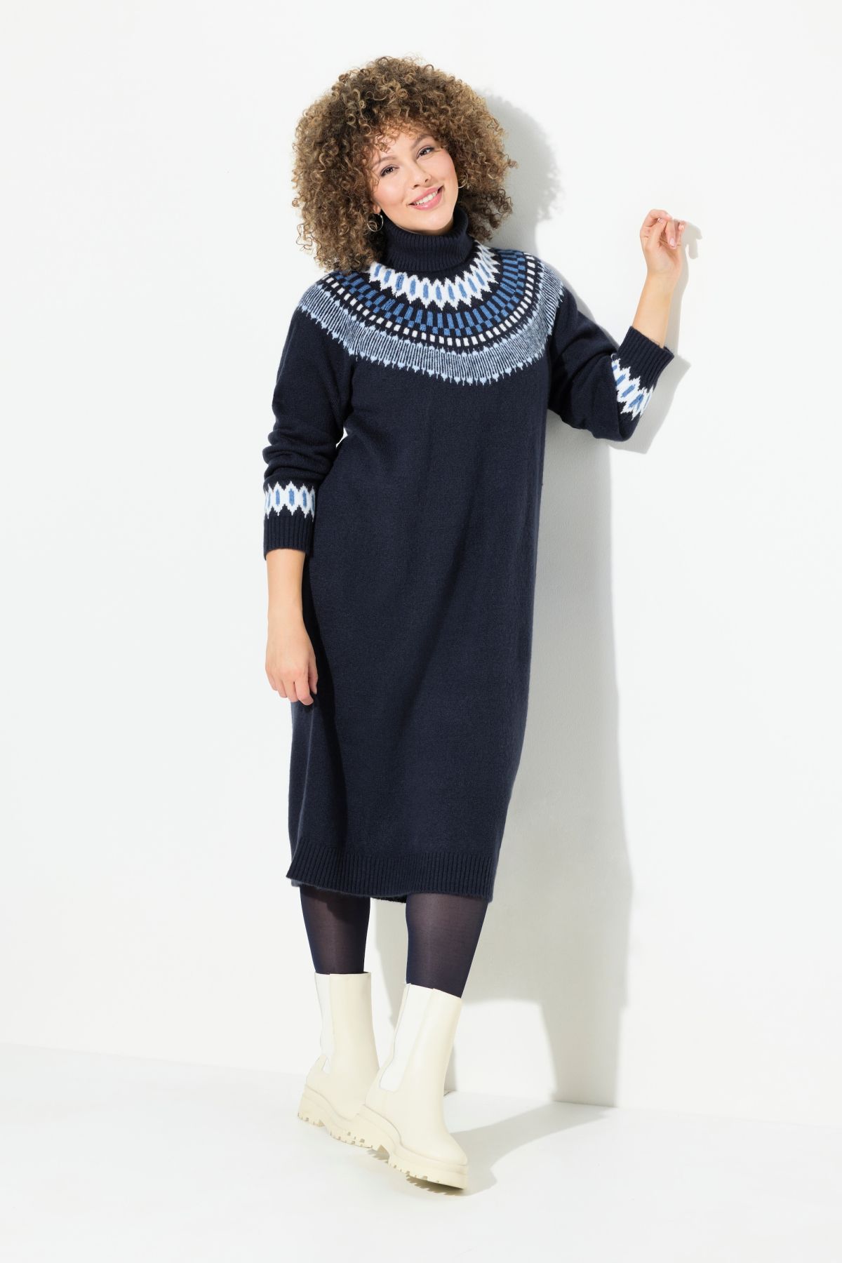Плетена рокля с модерни норвежки мотиви. С изправена яка по врата и дълги ръкави с акцент. Мека и удобна за ежедневието.