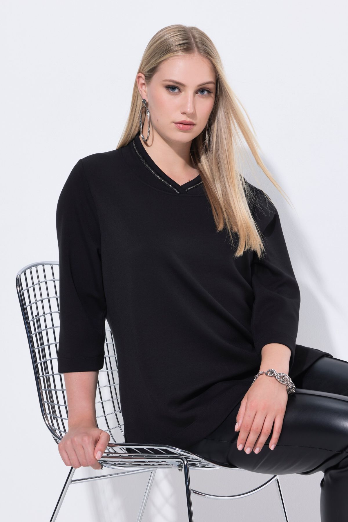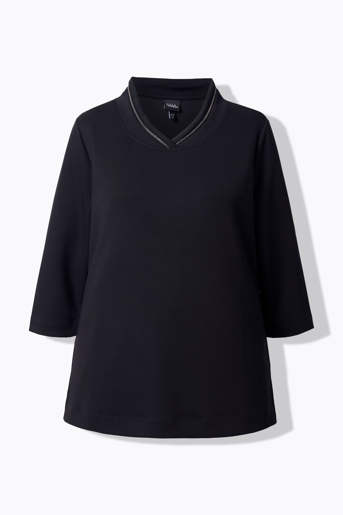 Суитчър с декоративно колие на V - образното деколте. От мека, еластична материя. С дълги ръкави и комфортен силует за ежедневието.