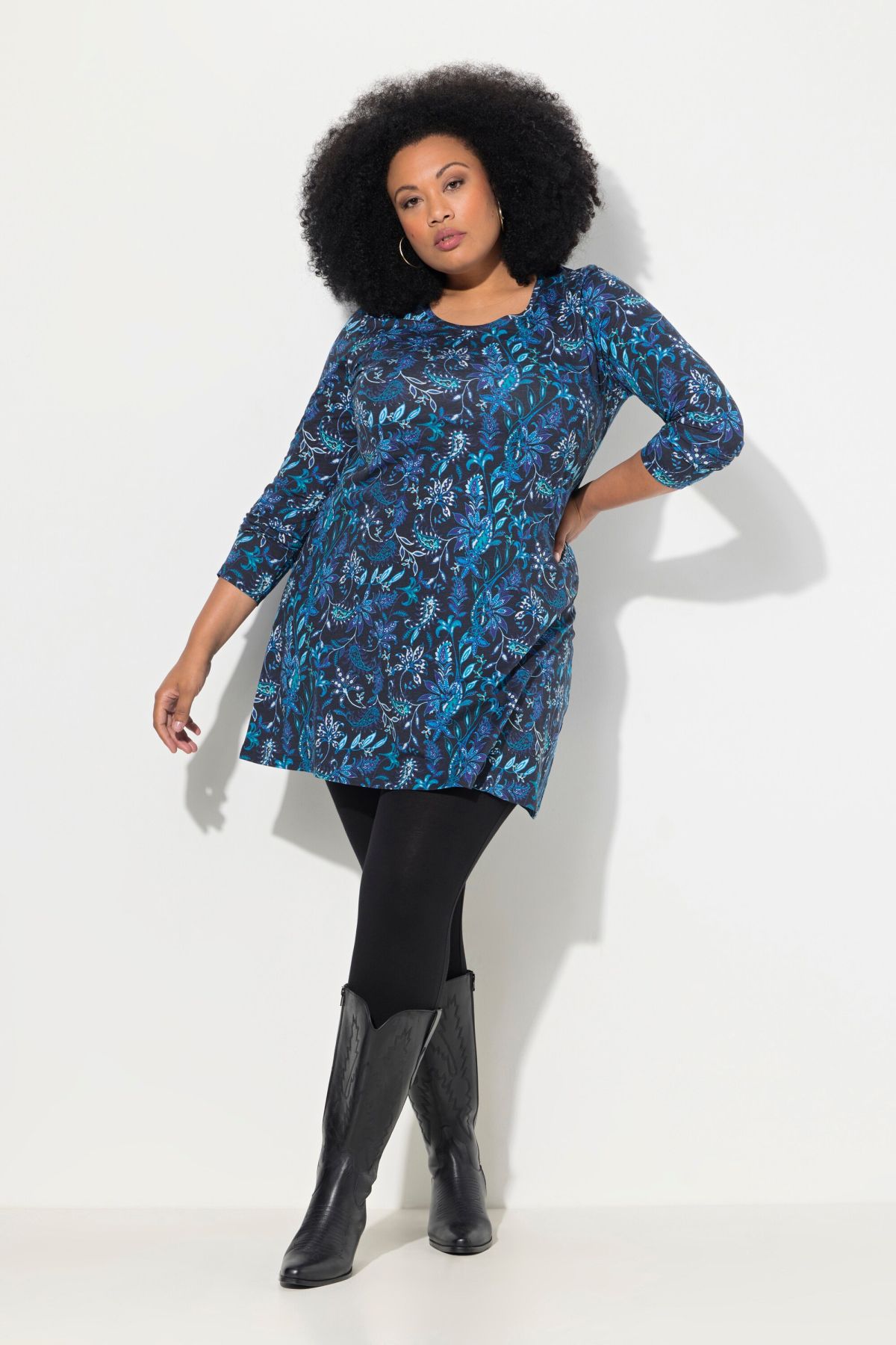 Туника с листов пейзли принт с традиционна визия. С А - линия на силуета и 3/4 ръкави. От мека, памучна материя.