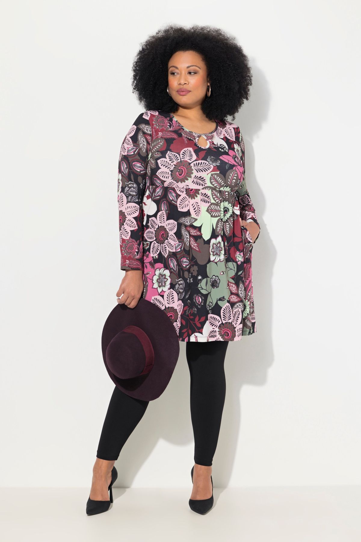 Туника с флорални мотиви. С кръгло деколте с модерна цепка и лентичка. Със стилна визия, дълги ръкави и А - линия на силуета.