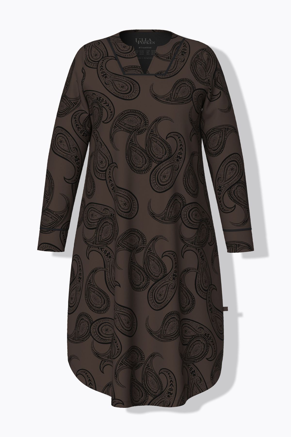 Нощница с пейзли принт в градски стил. Комфортна и мека. С цепка на деколтето и дълги ръкави.