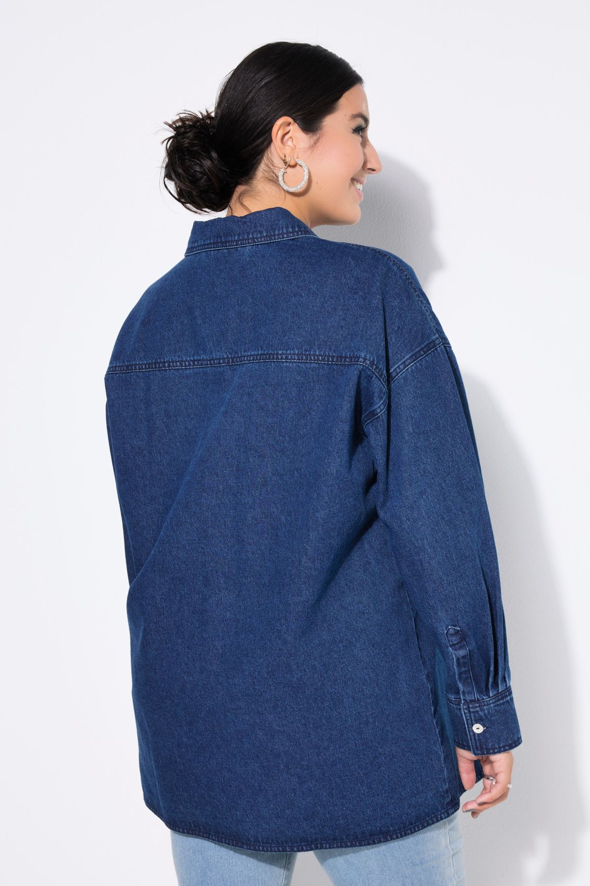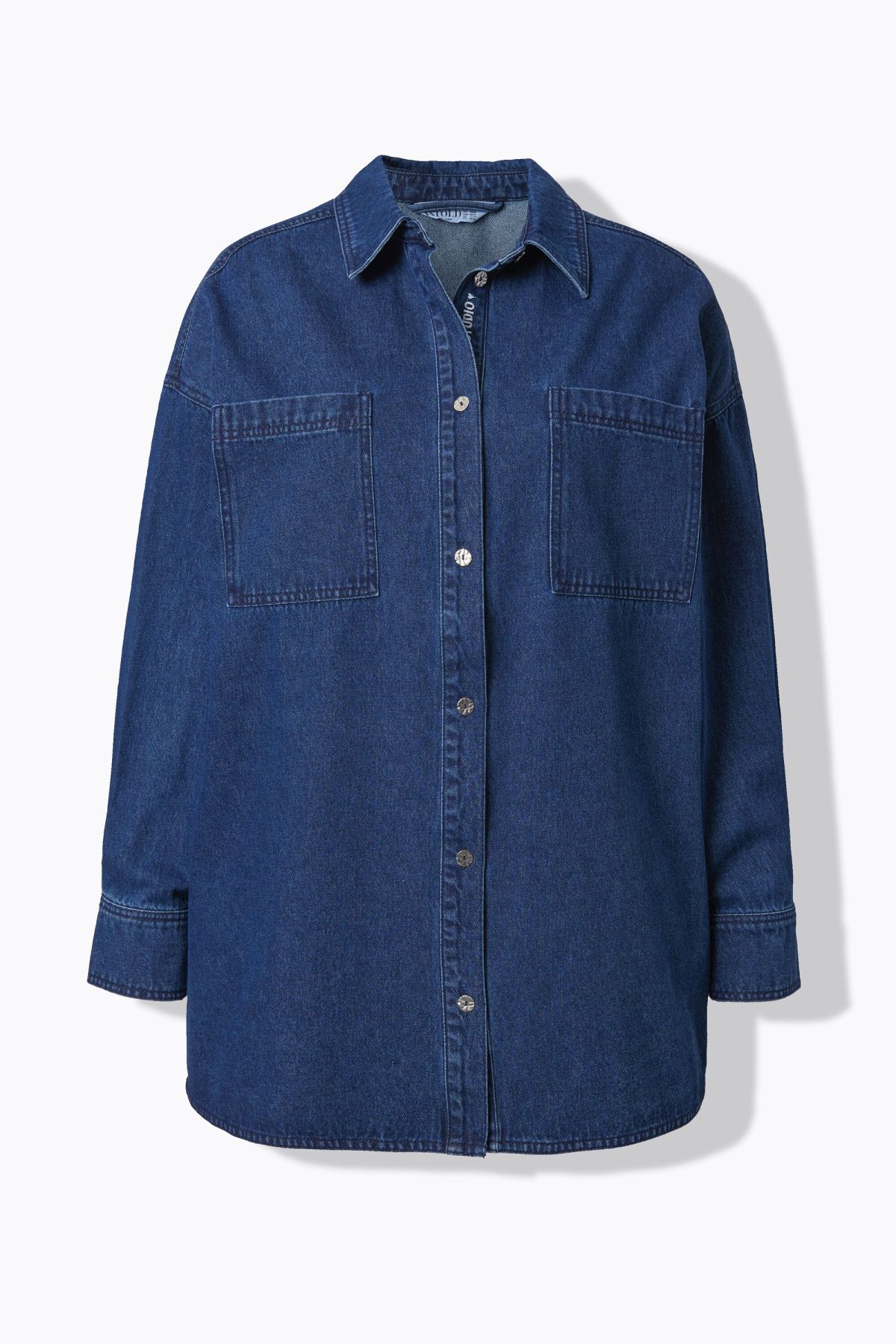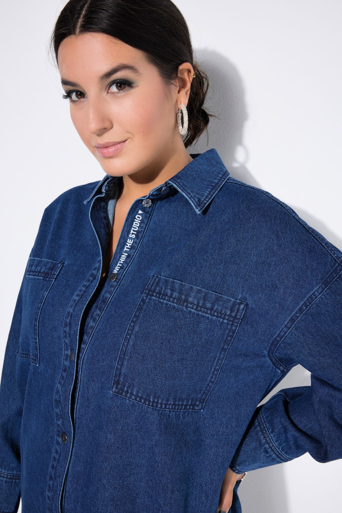 Дънкова риза - лесна за поддържане с бродиран надписи. С копчета отпред, яка, дълги ръкави с маншет с копче, джобове на гърдите.