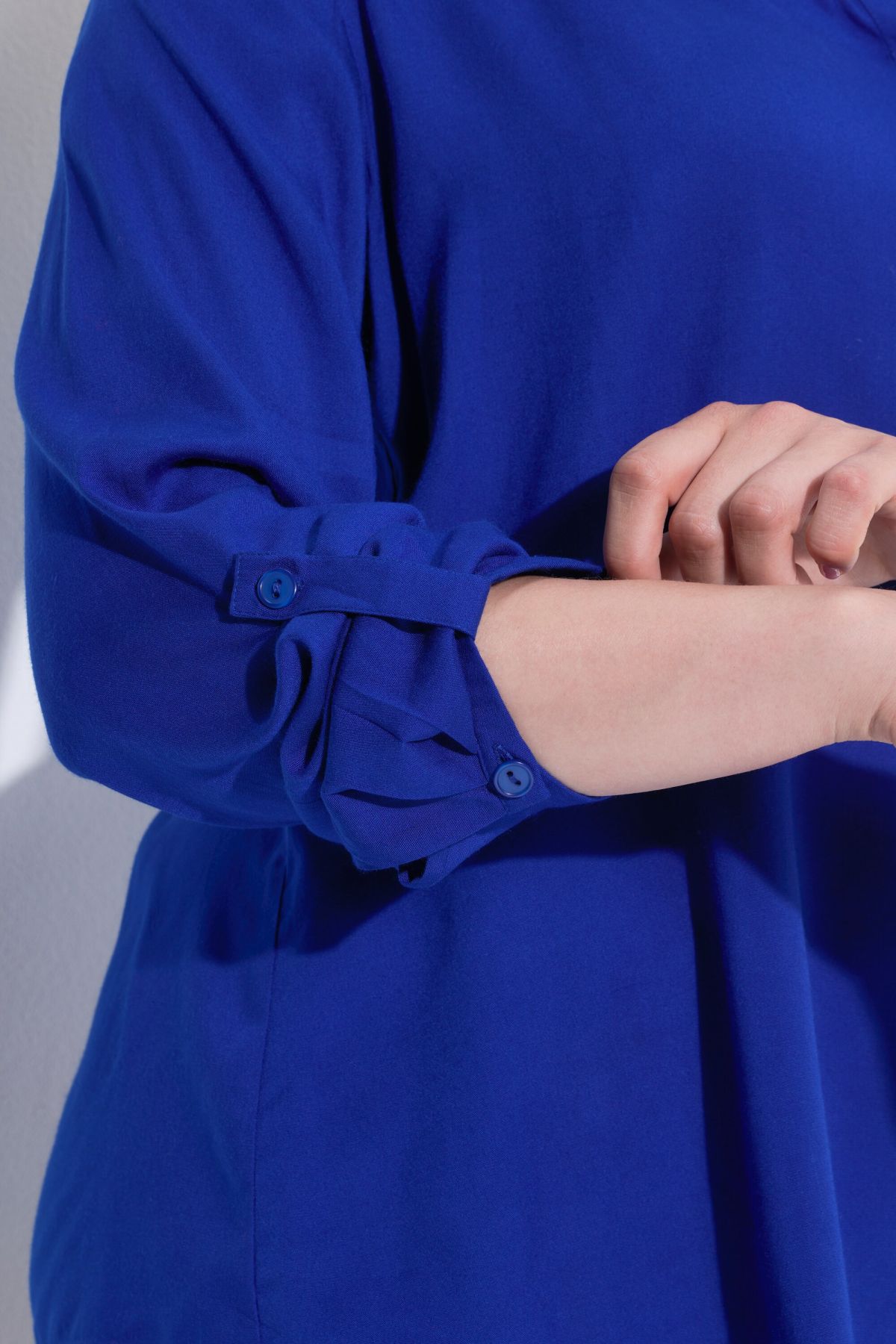 Блуза с V - образно деколте - едноцветна и стилна. С дълги навиващи се ръкави и мека материя. Перфектният избор за ежедневието.