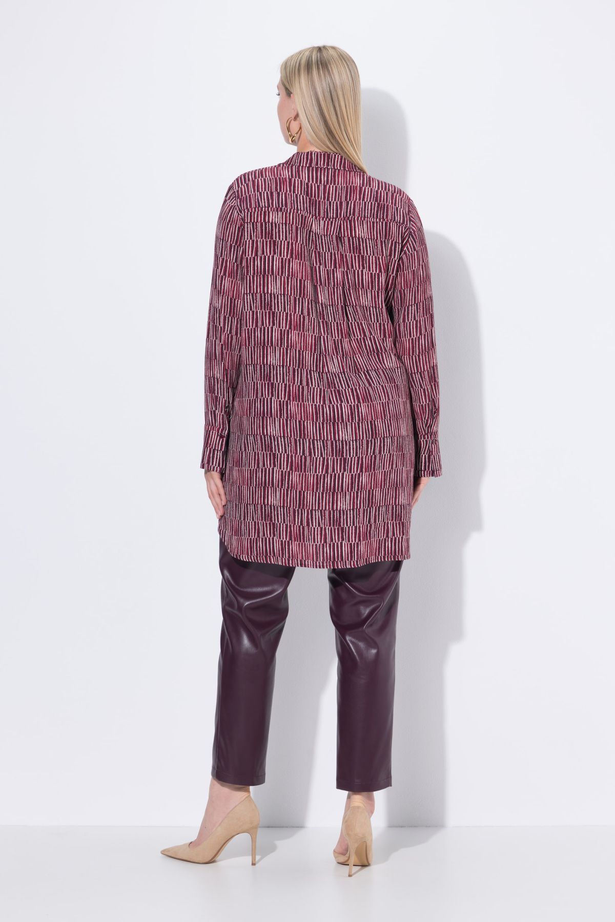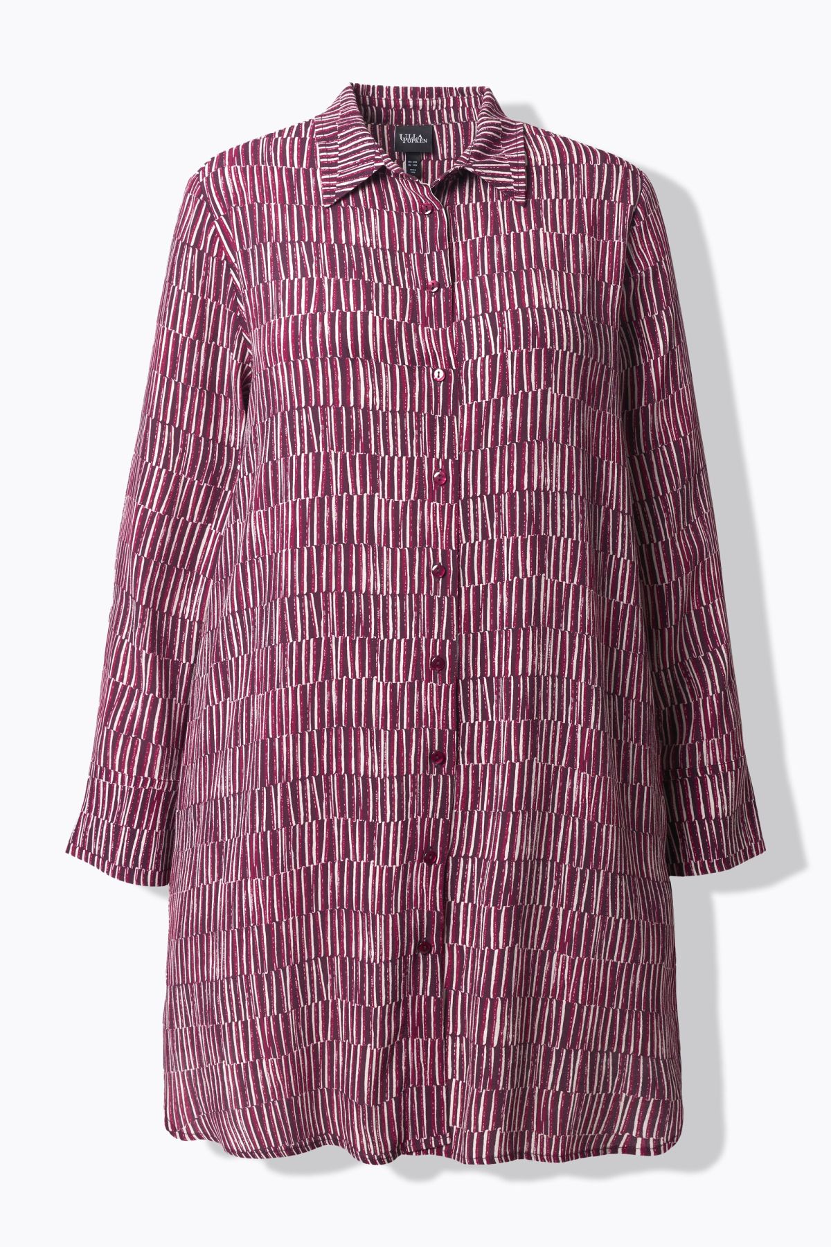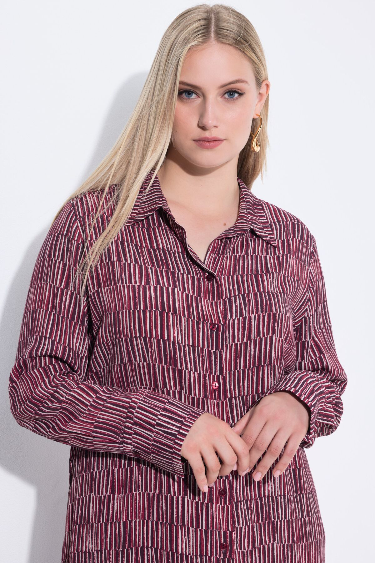 Риза тип туника с раиран принт. С издължен силует. С класически дизайн с яка, копчета отпред и дълги ръкави с маншет с копче.