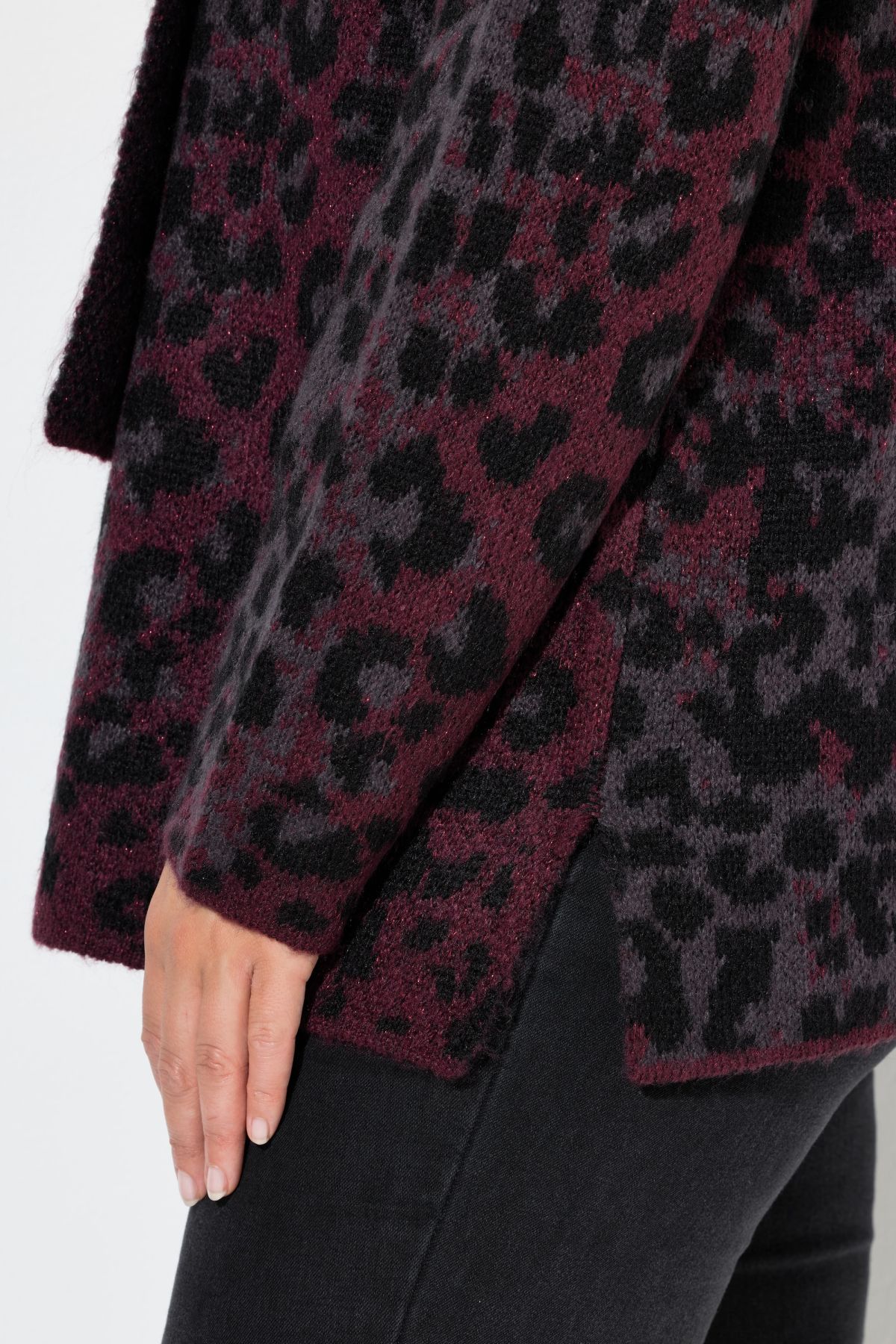 Пуловер с леопардов принт с шал яка. Фина и мека материя. С дълги ръкави и комфортна кройка.