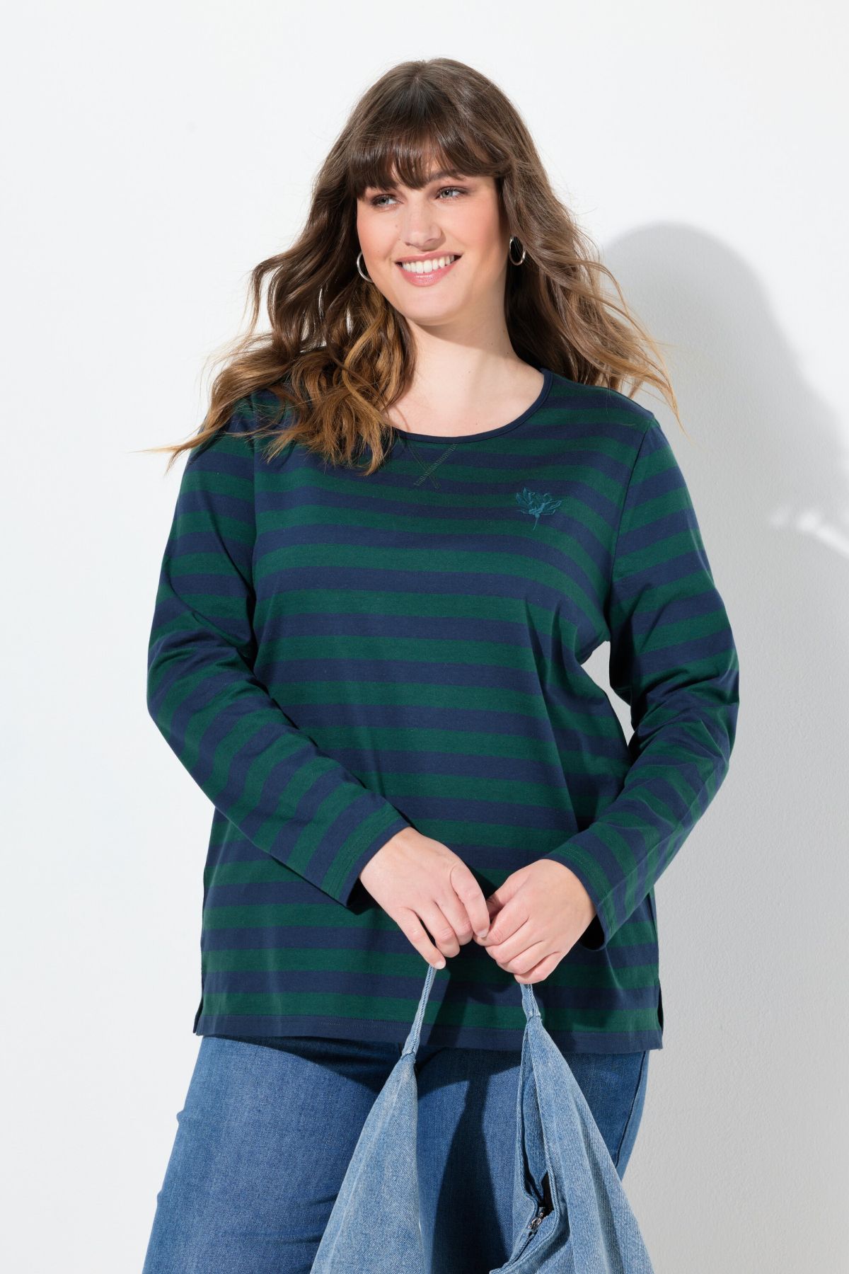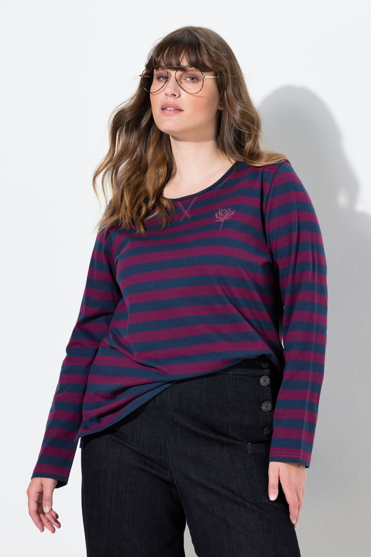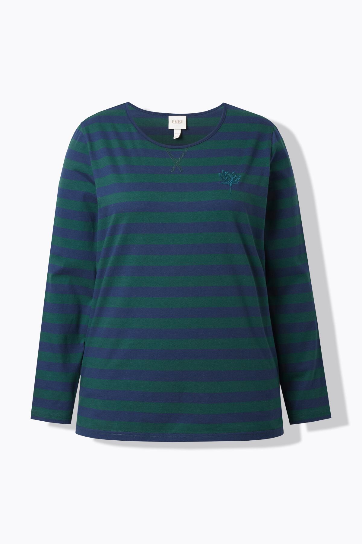 Тениска с принт на райета от мека, памучна материя. С кръгло деколте и дълги ръкави. Стил и комфорт в ежедневието.