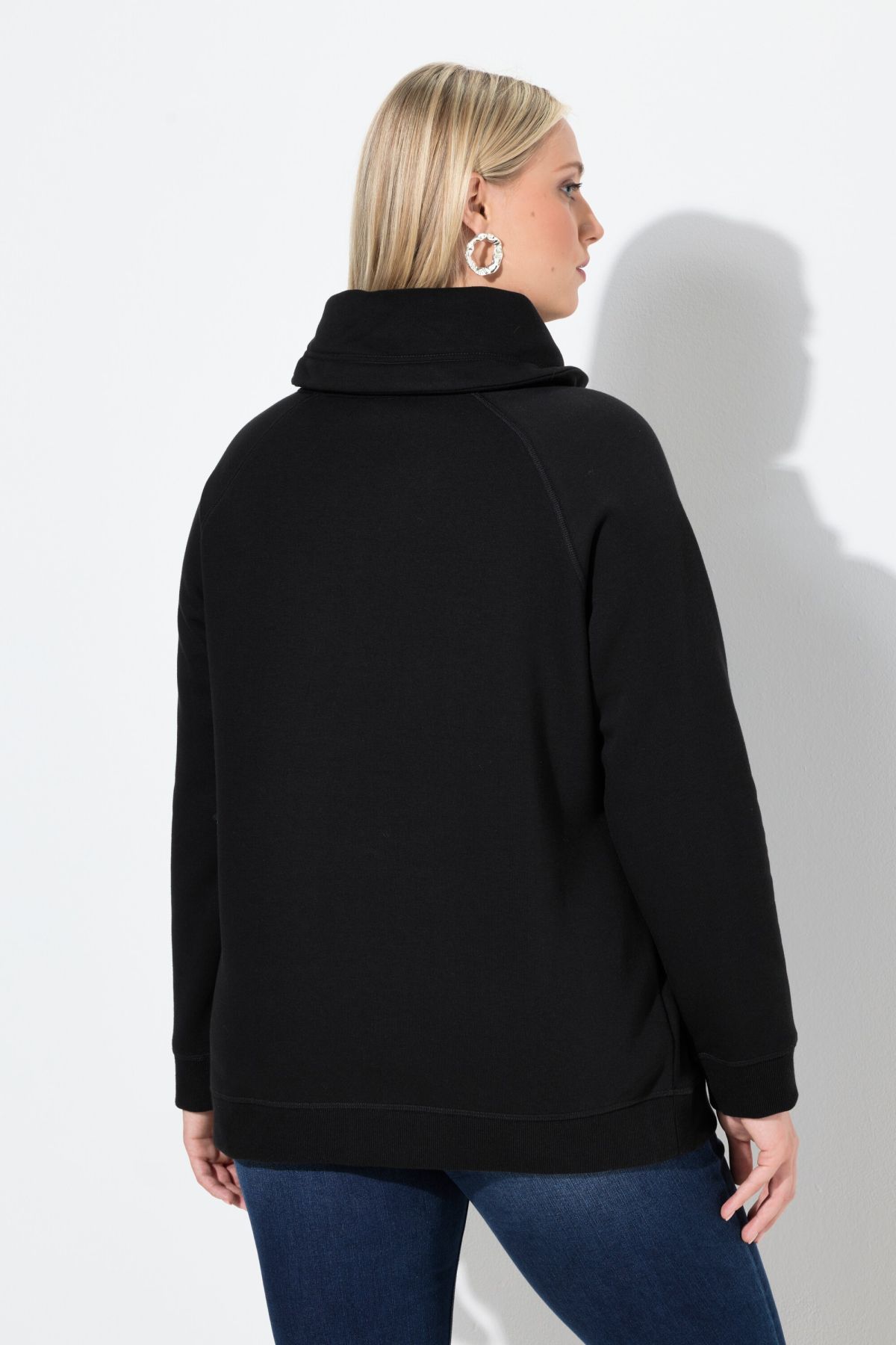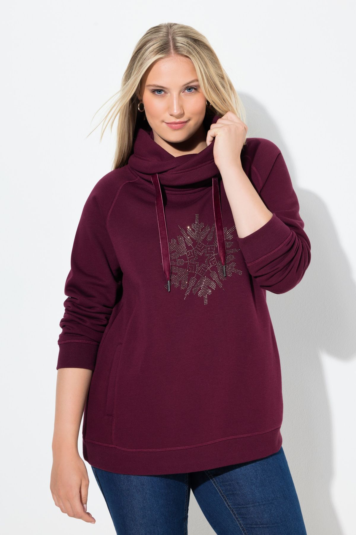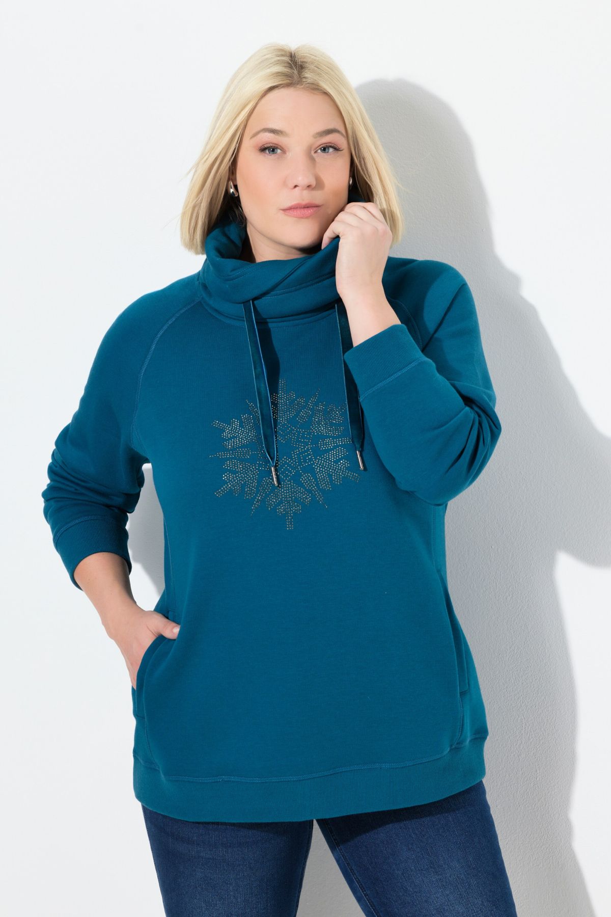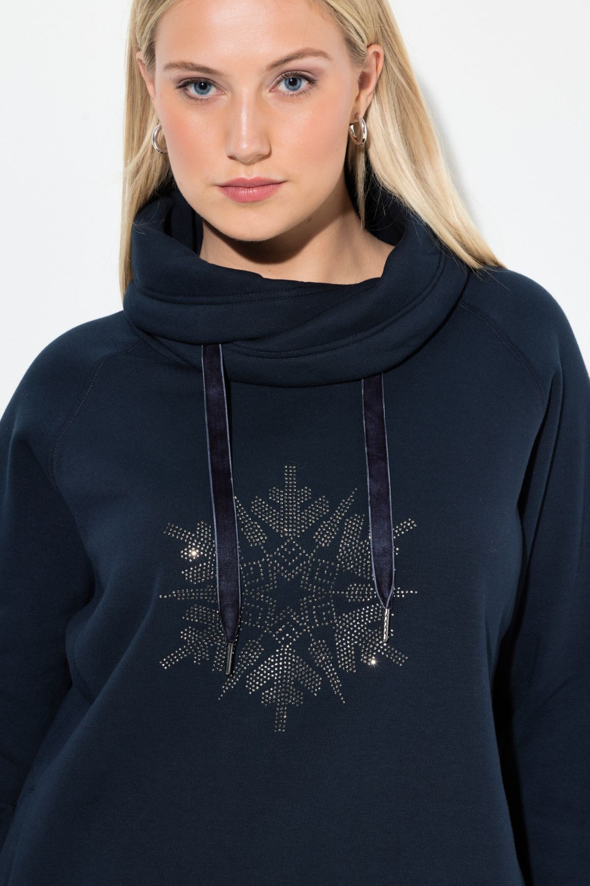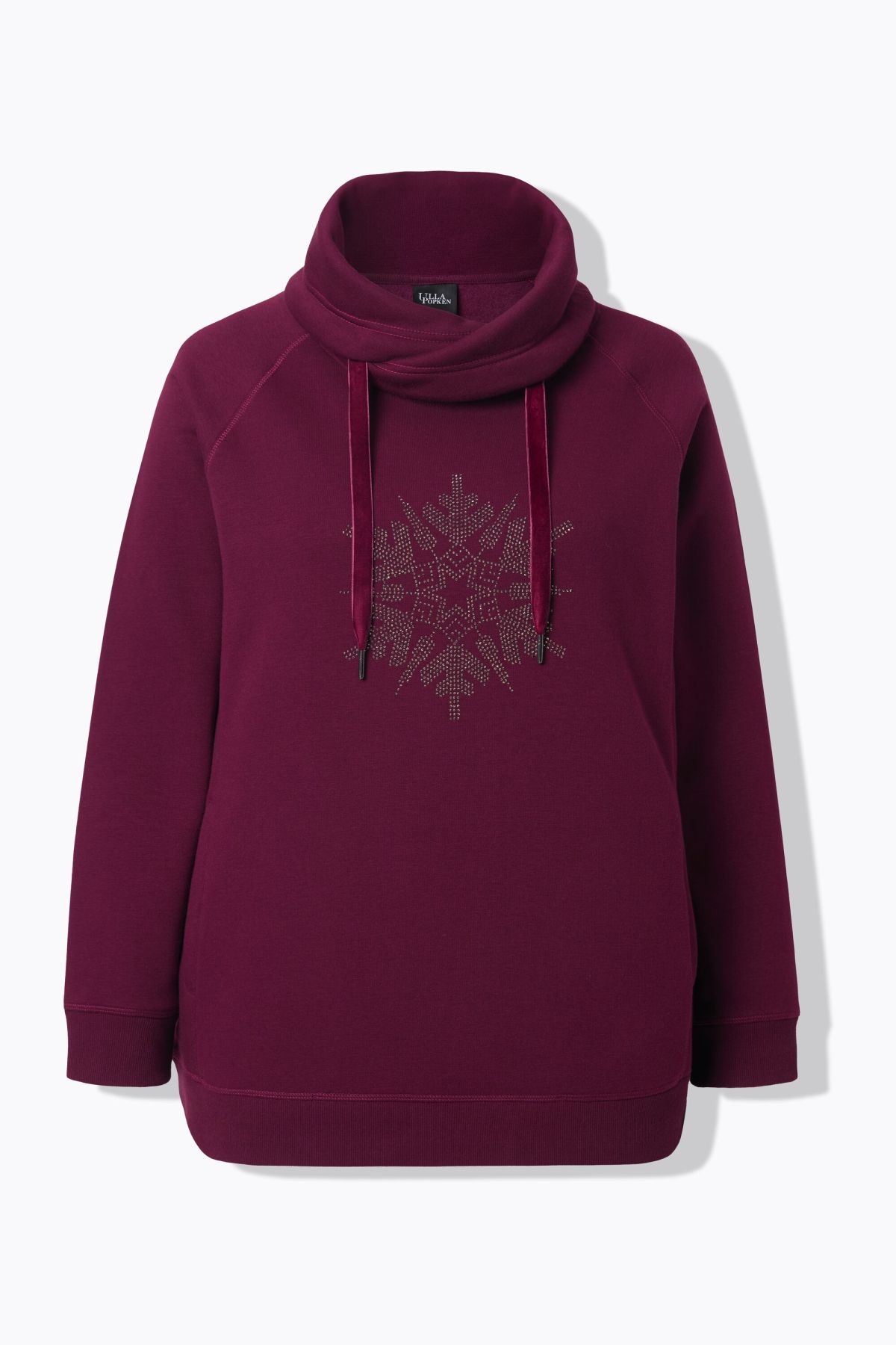 Суитчър със снежинки с бляскави камъчета. С висока поло яка с връзка, дълги ръкави с рипсени маншети и странични джобове.