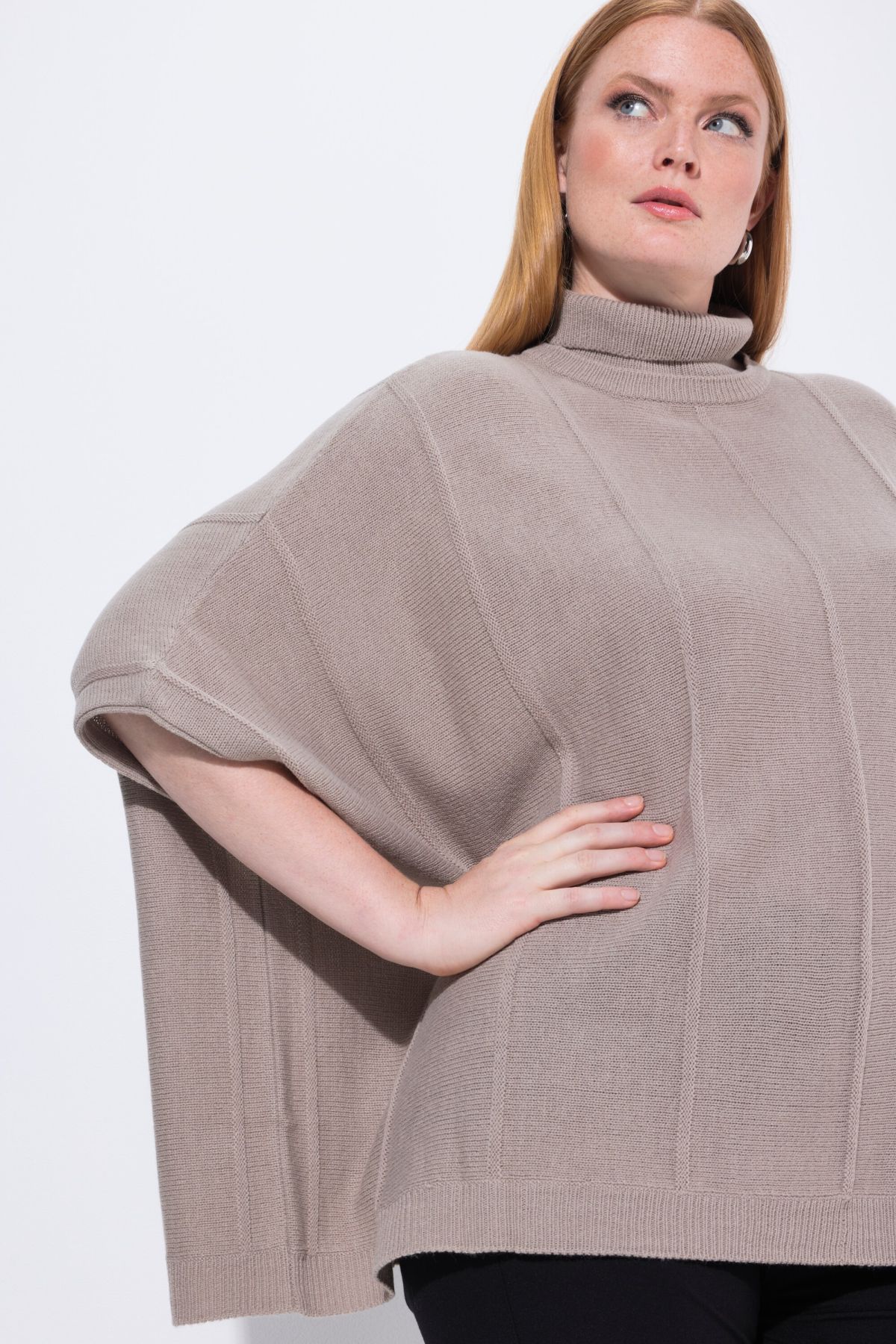 Пончо от мека рипсена плетка. С висока набрана, поло яка, разкроен силует и модерни акценти на материята. Стил и комфорт в ежедневието.