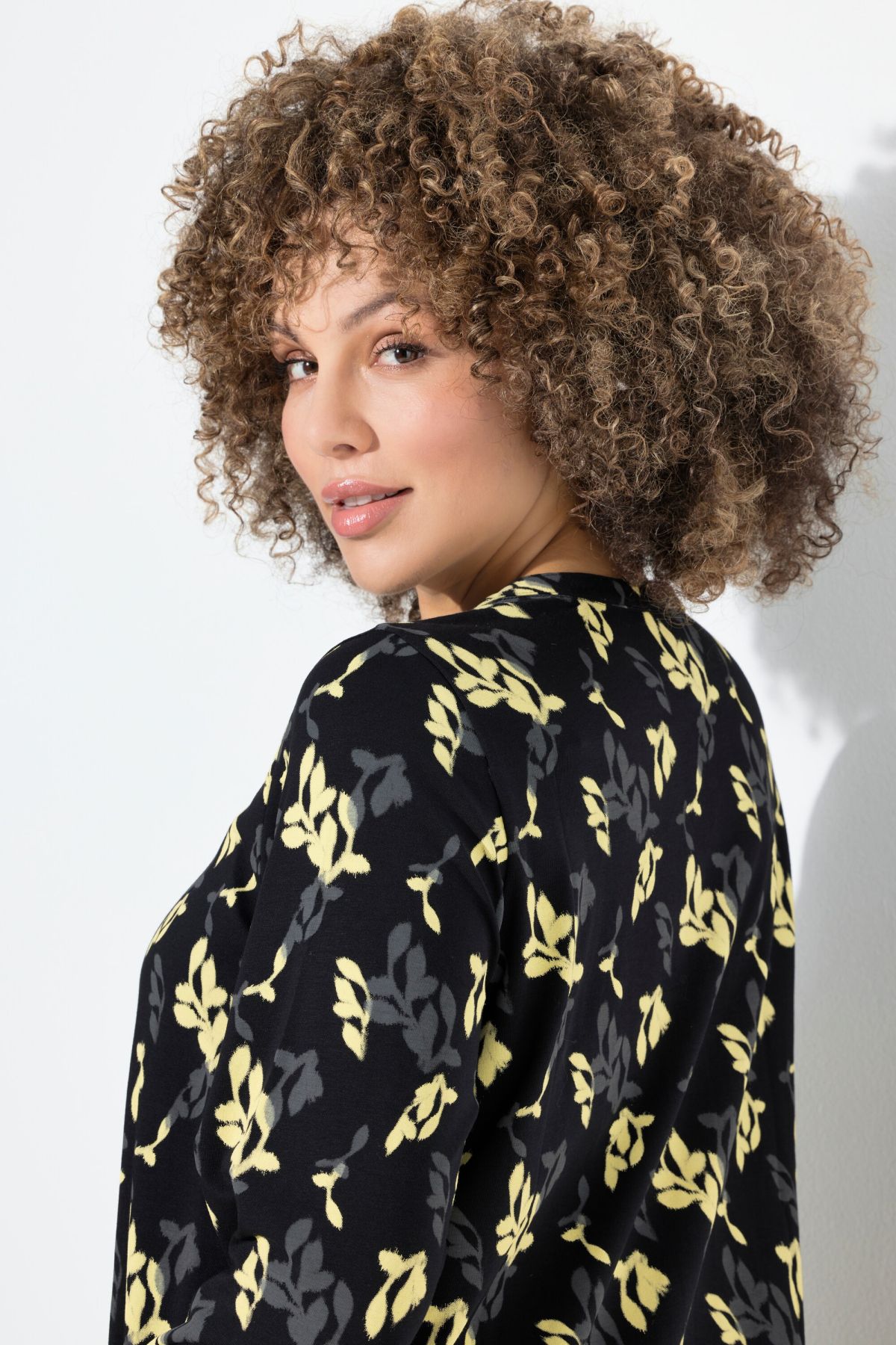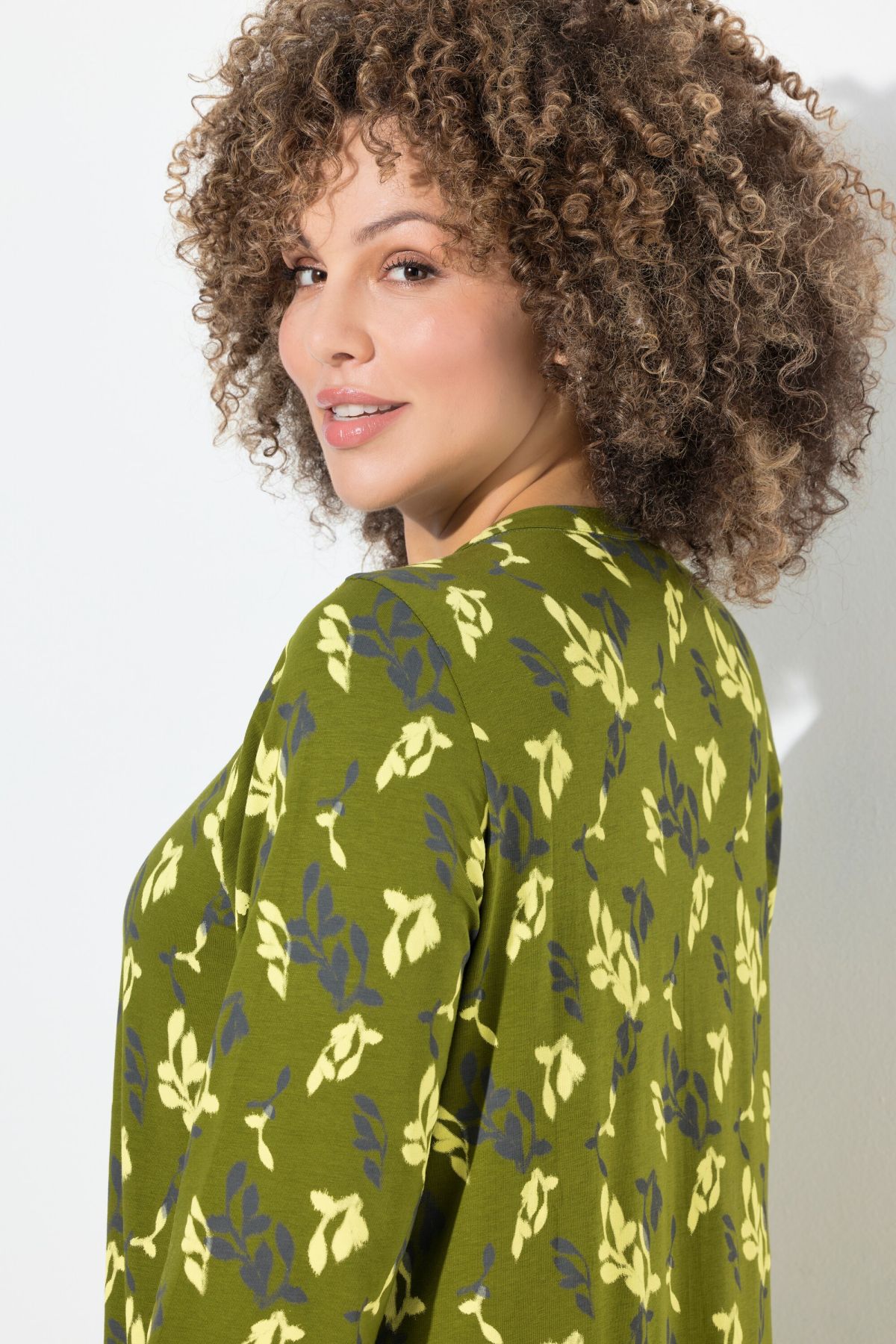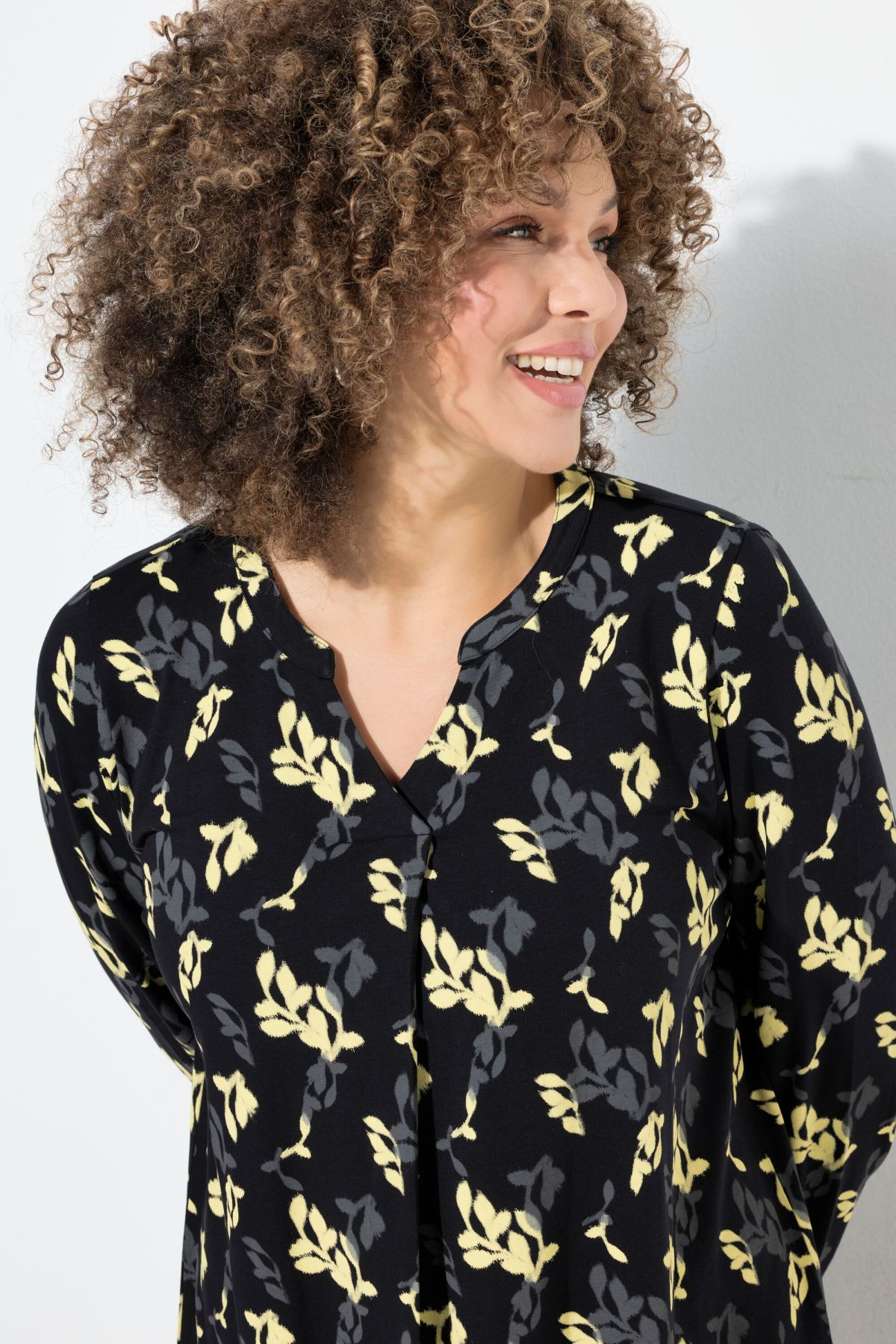 Рокля с флорален принт с драпиран акцент на талията. С кръгло деколте и 3/4 ръкави. От мека, памучна материя, с А - линия на силуета