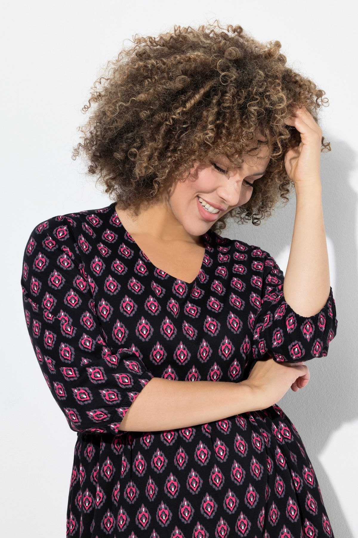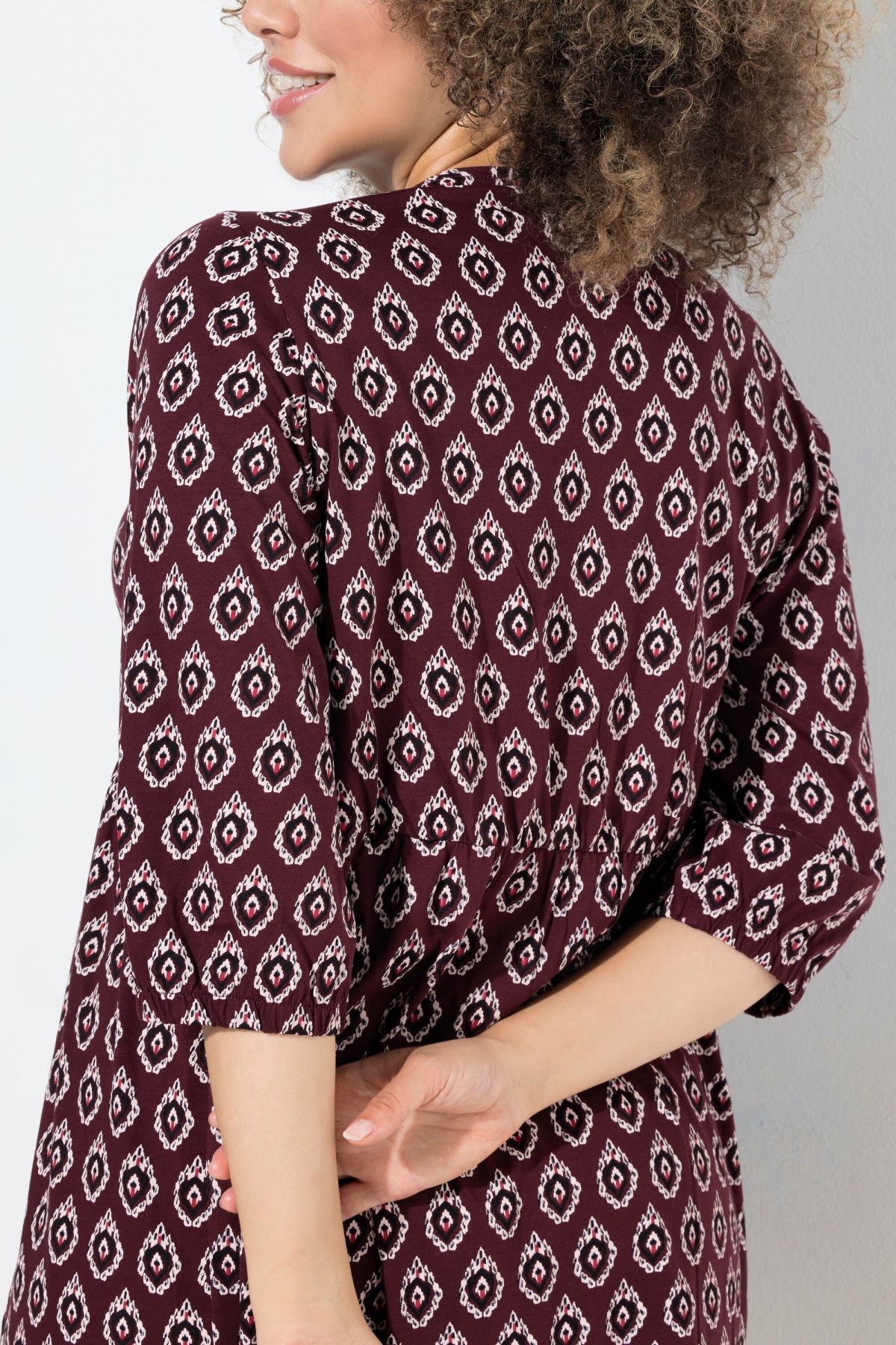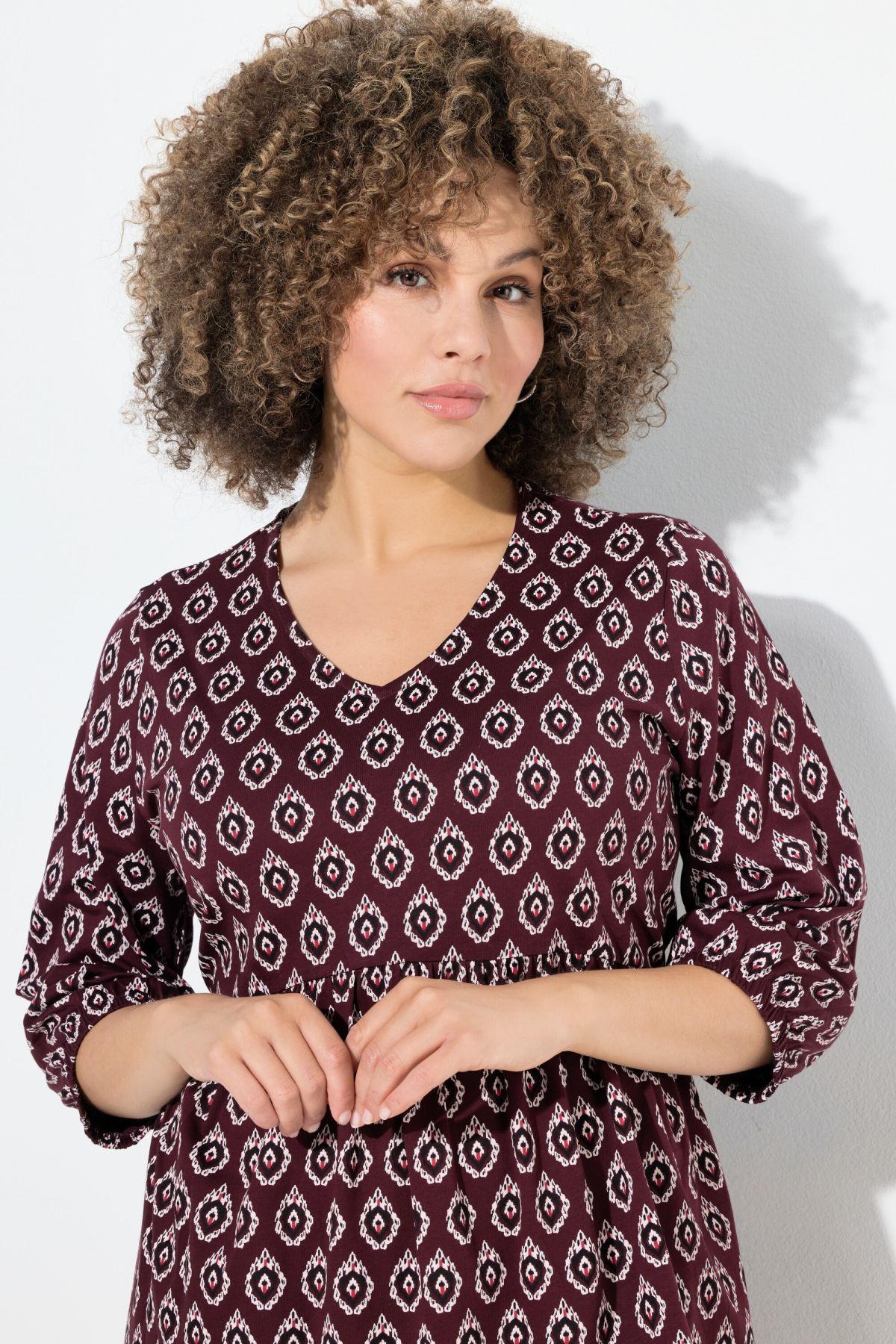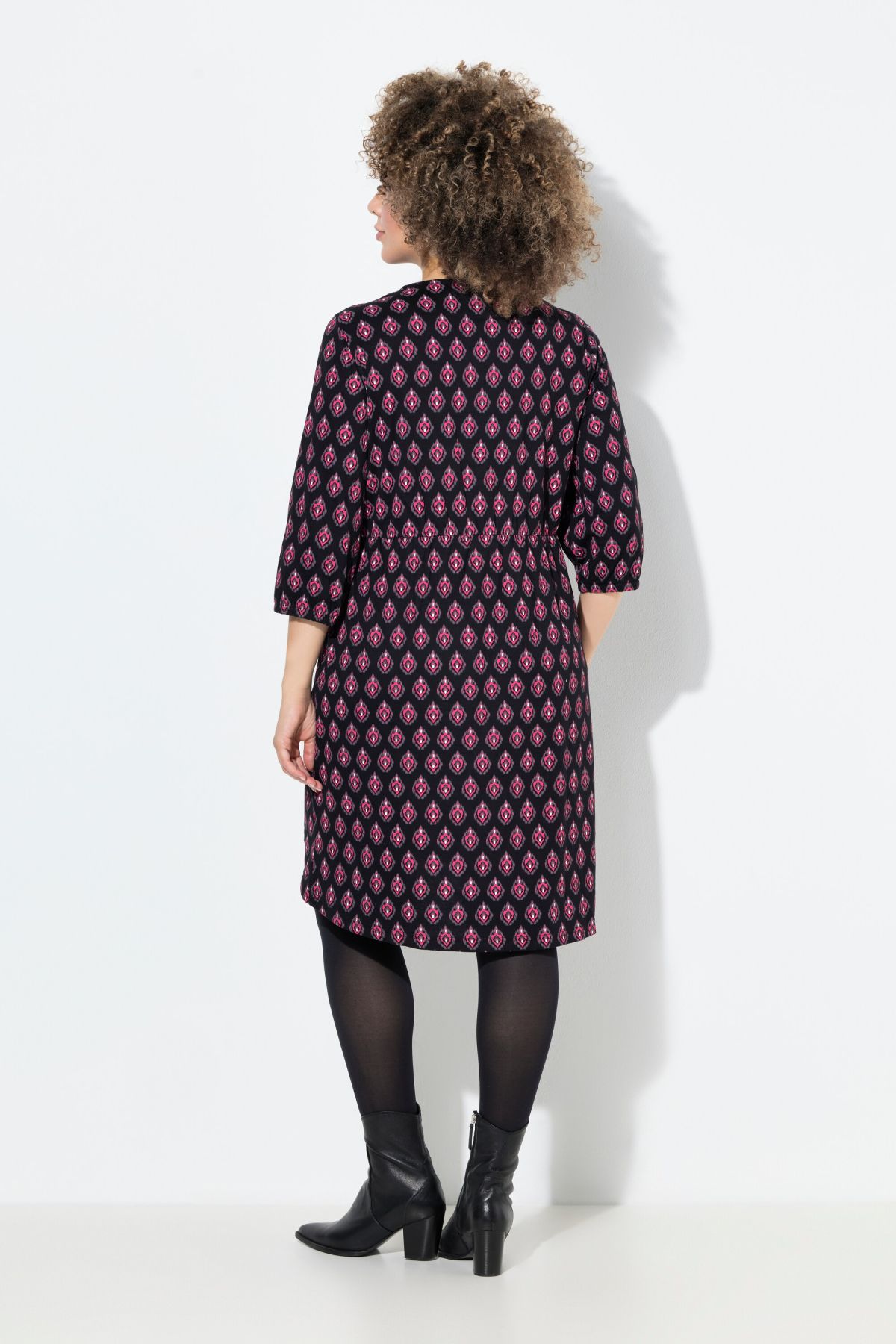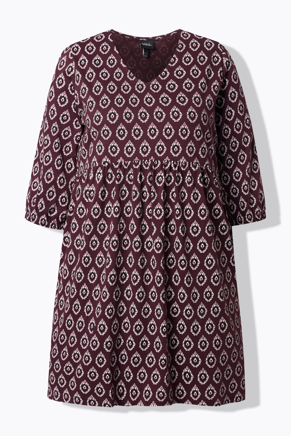 Трикотажна рокля с модерен принт. С комфортна А - линия на силуета. С кръгло деколте, шевов акцент на талията и перфектна дължина.