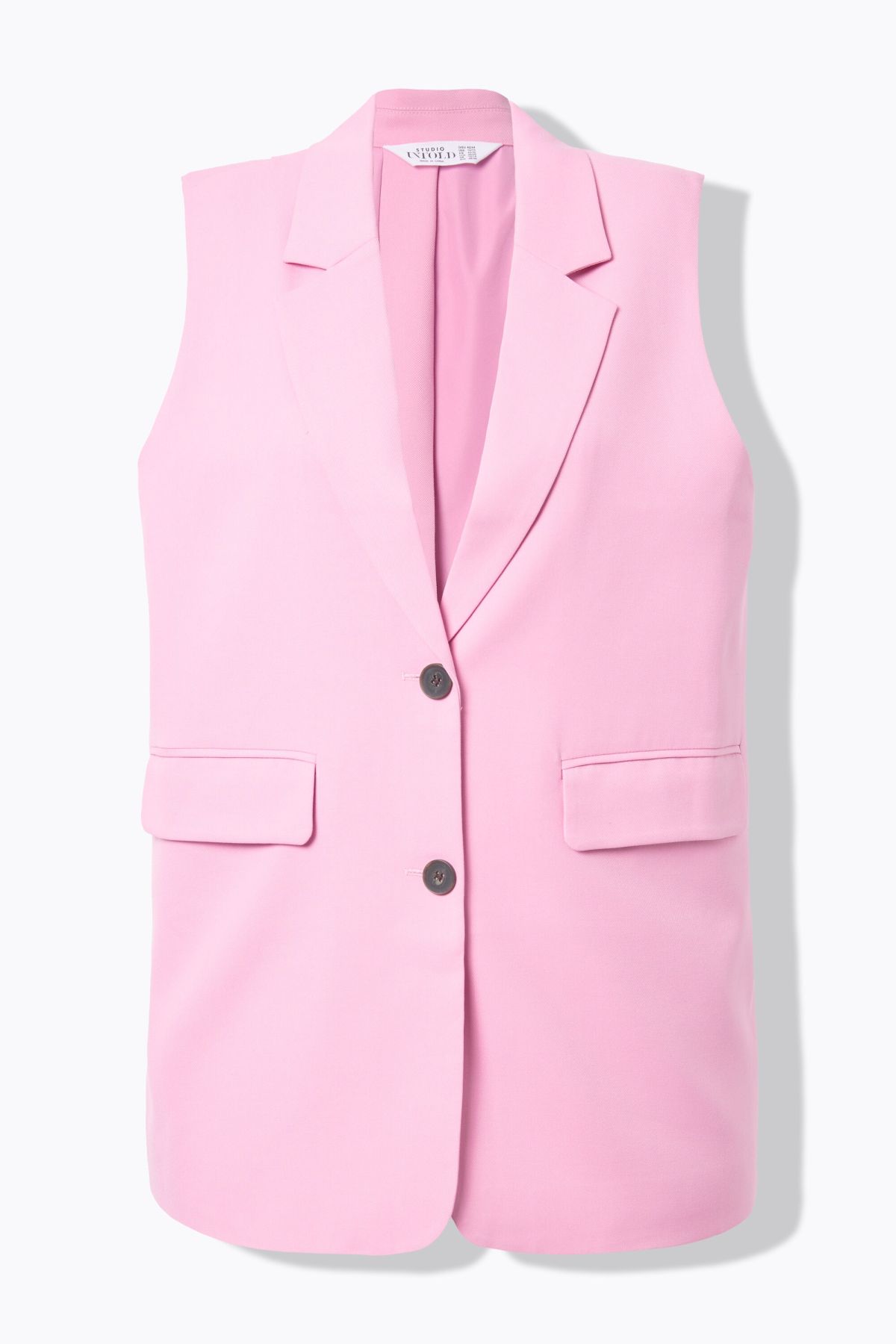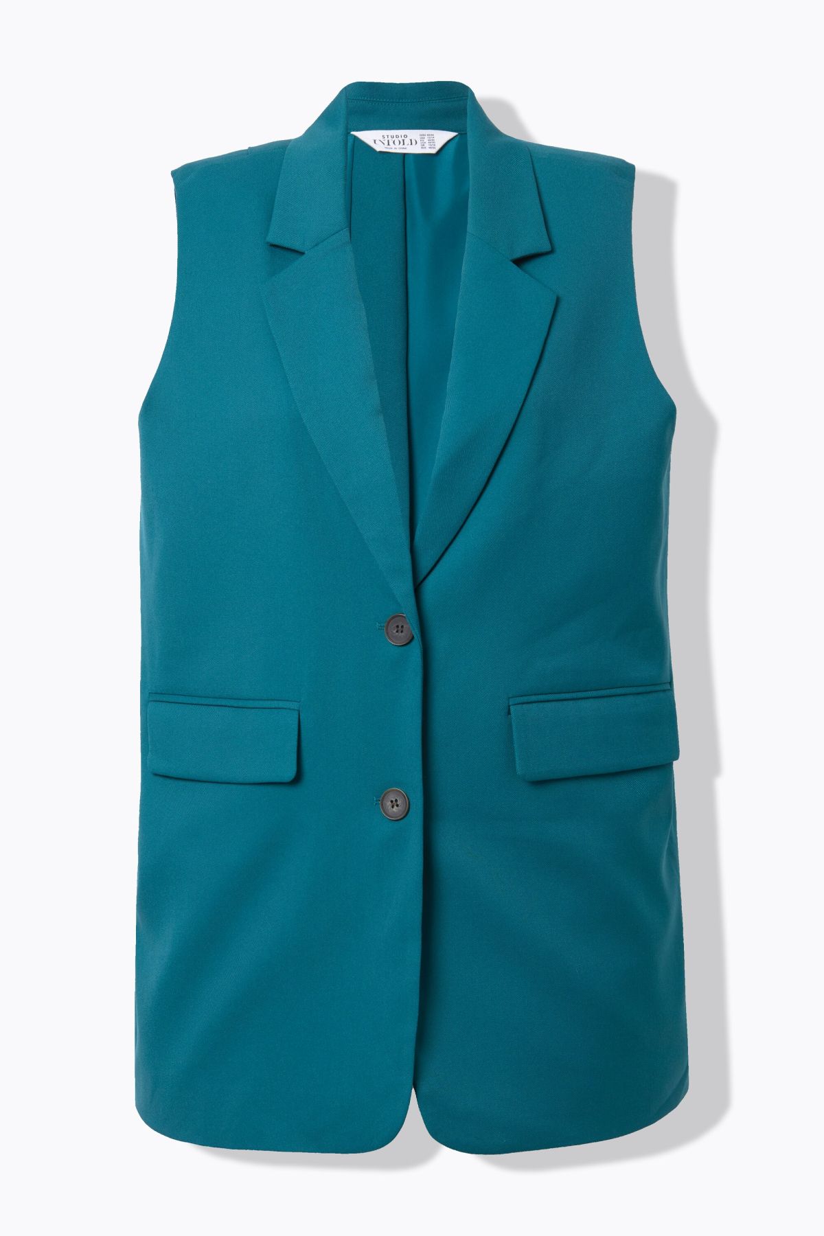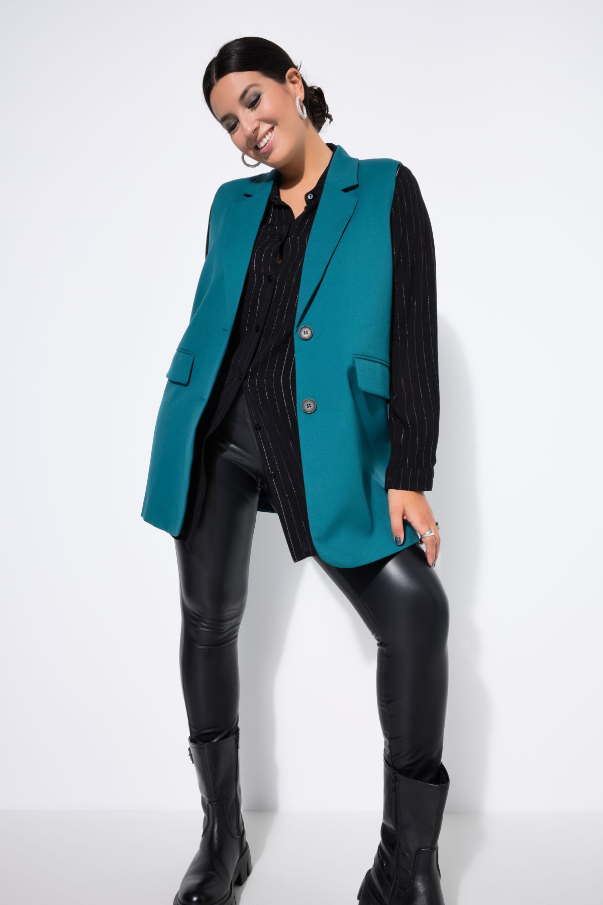 Елек тип блейзър с ревери на яката. С разкроена кройка и модерно усещане. С копчета отпред и странични джобове с капак.