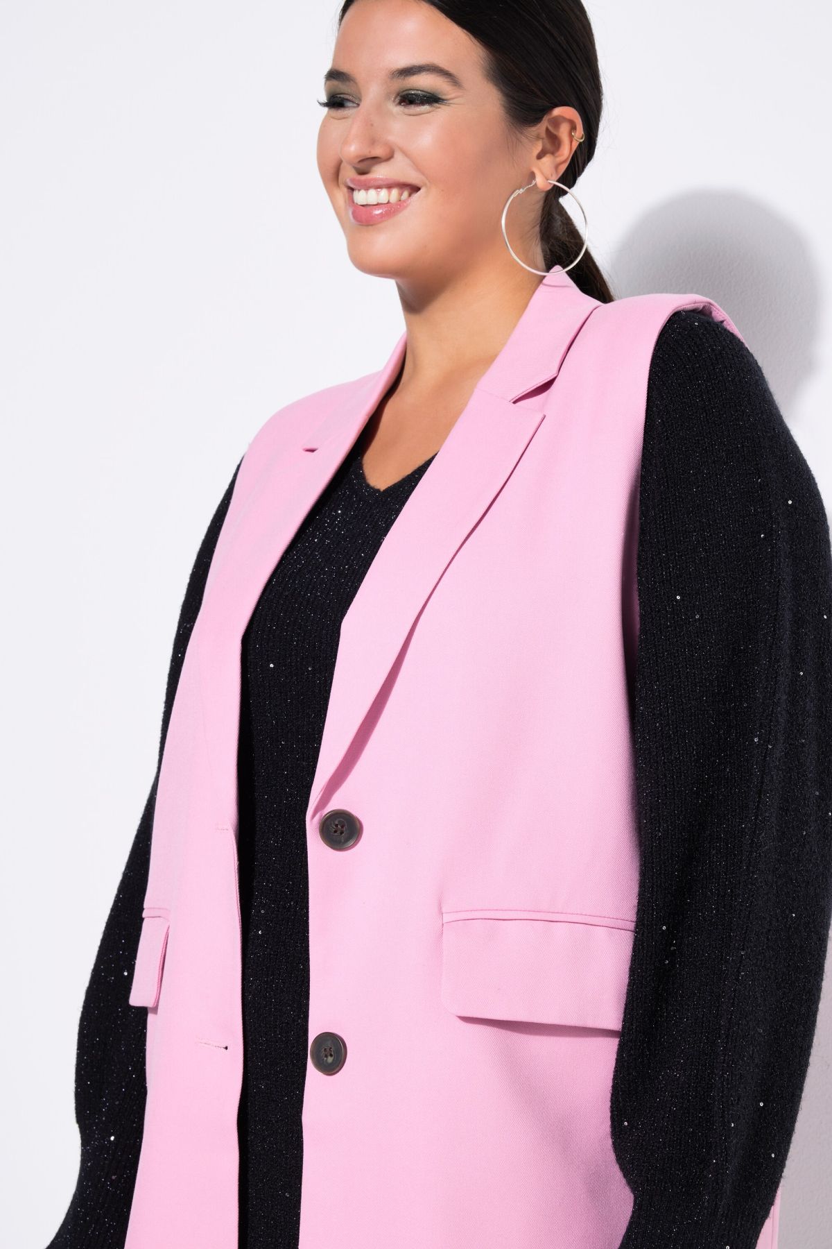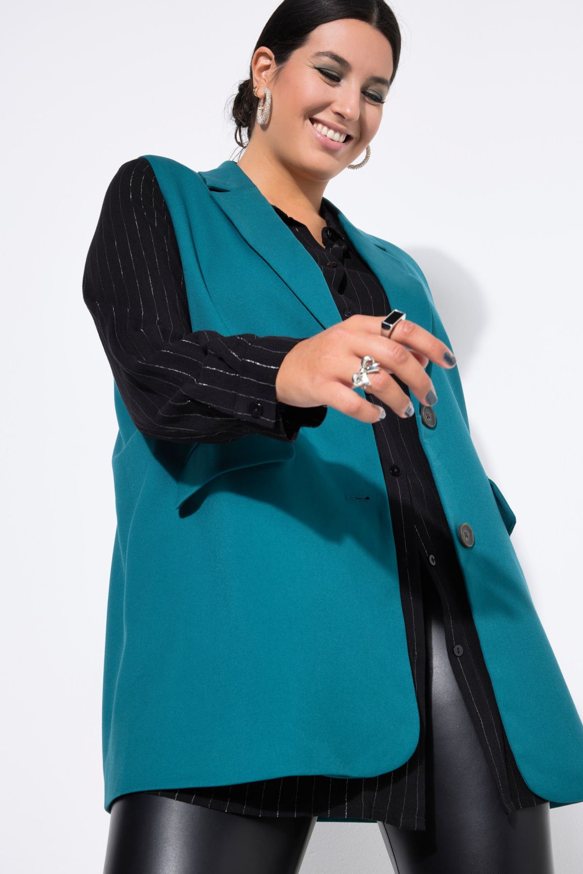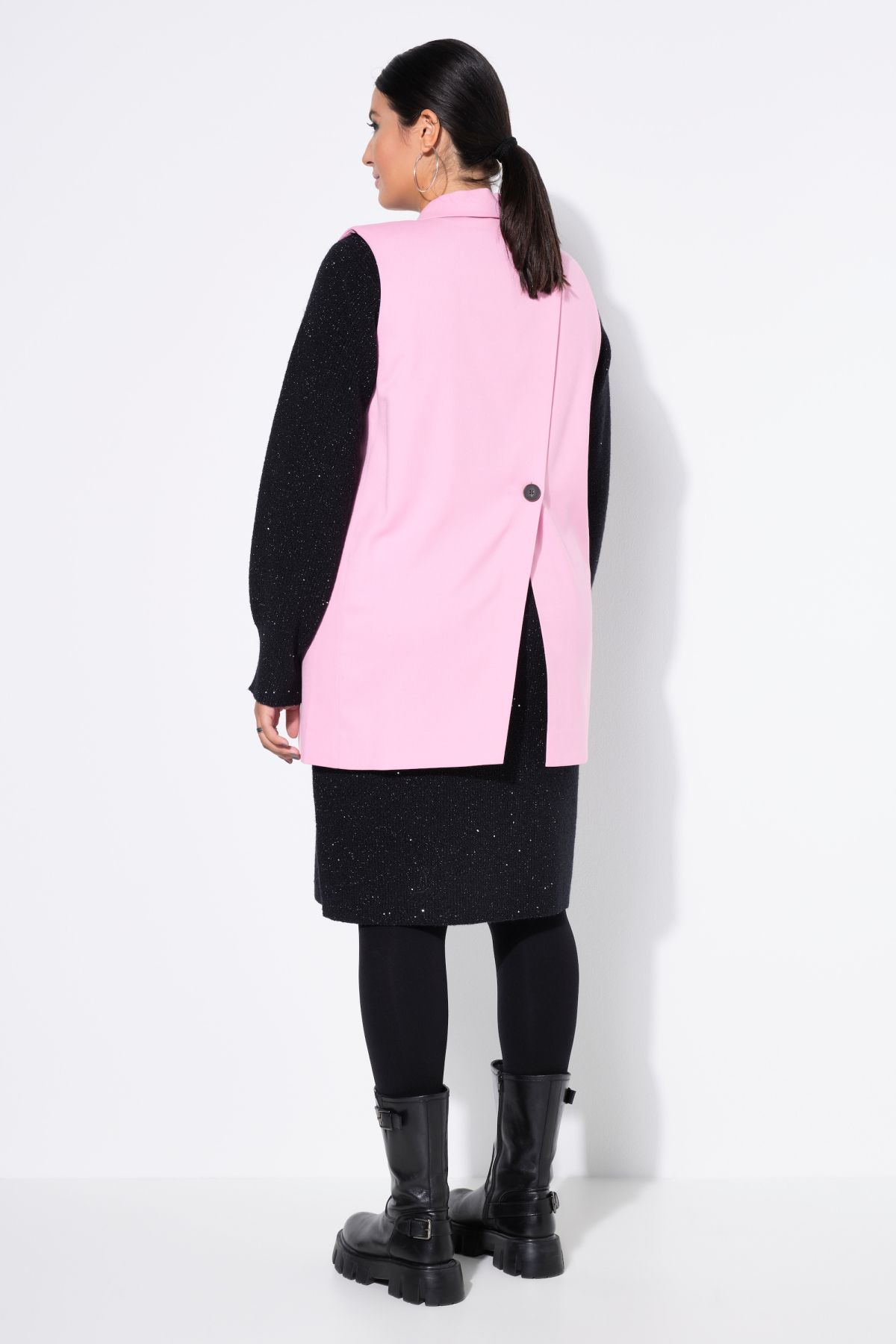 Елек тип блейзър с ревери на яката. С разкроена кройка и модерно усещане. С копчета отпред и странични джобове с капак.
