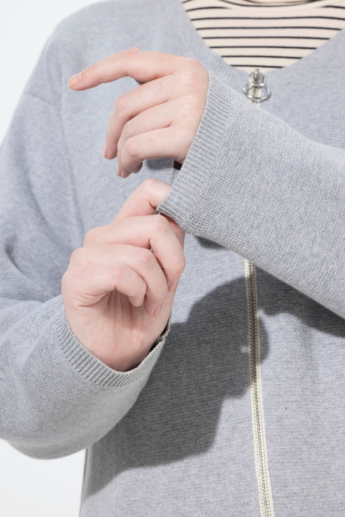 Мека плетена жилетка от памучна материя. С дълги ръкави и контрастни акценти. С кръгло деколте. Стил и комфорт в ежедневието.