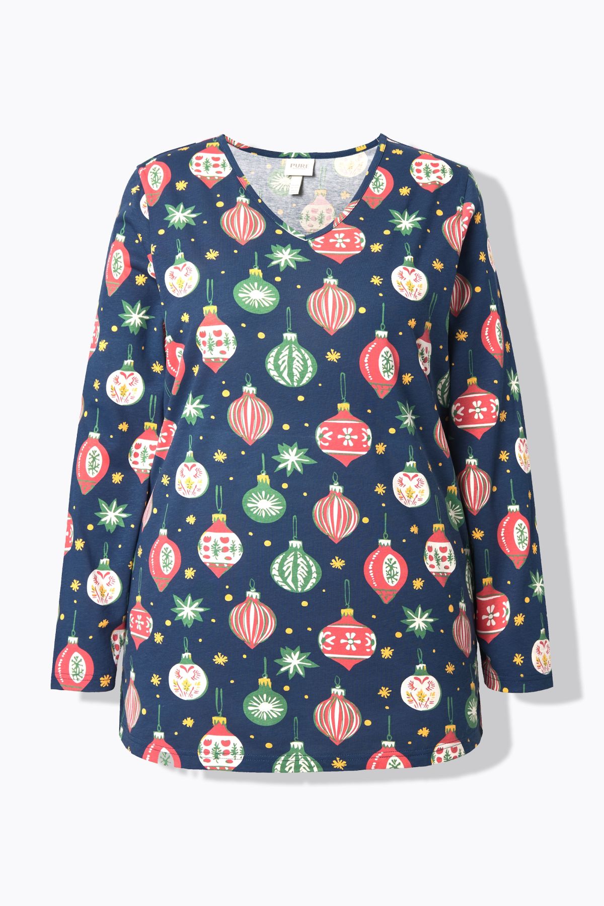 Горнище на пижама с коледен принт. С V - образно деколте, дълги ръкави. От мека, памучна материя.