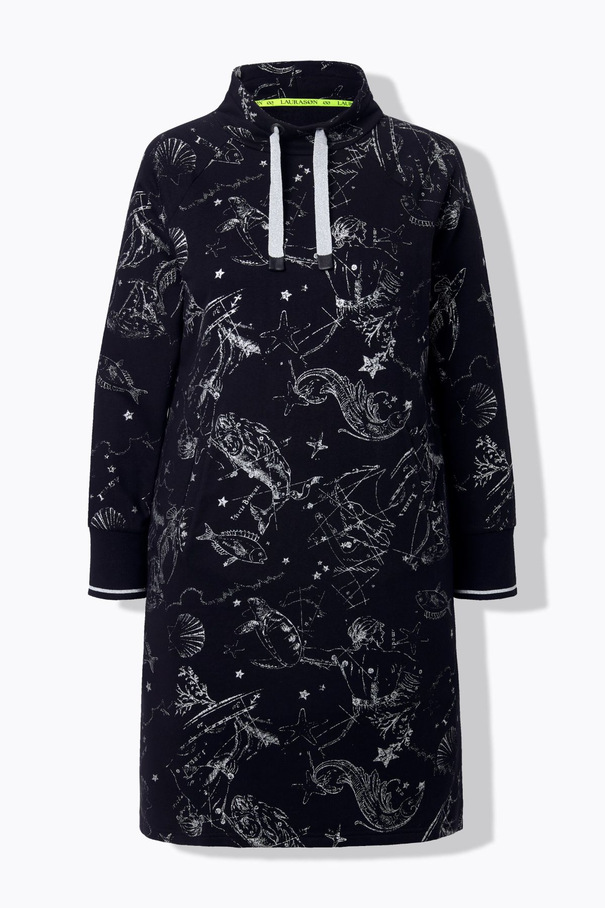 Рокля с морски принт - перфектна за лятно настроение през зимата. С качулка с контрастна връзка, дълги ръкави с еластичен маншет и странични шевови джобове.