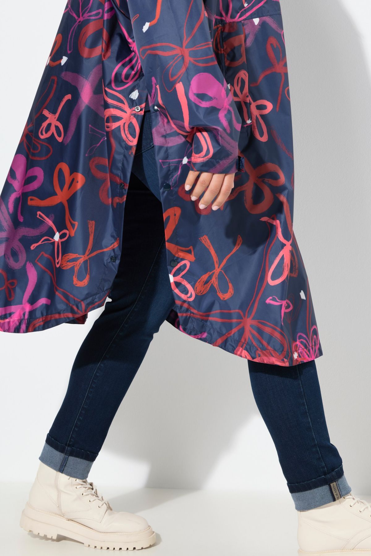 Дъждобран с принт на Laurason. Унисекс модел с качулка, водонепромокаем (5000 mm воден стълб), ветроустойчив и дишащ (5000 g/m²/24h). С паднали рамене, дълги ръкави с велкро лепенки, 2 странични джоба и заоблен подгъв.