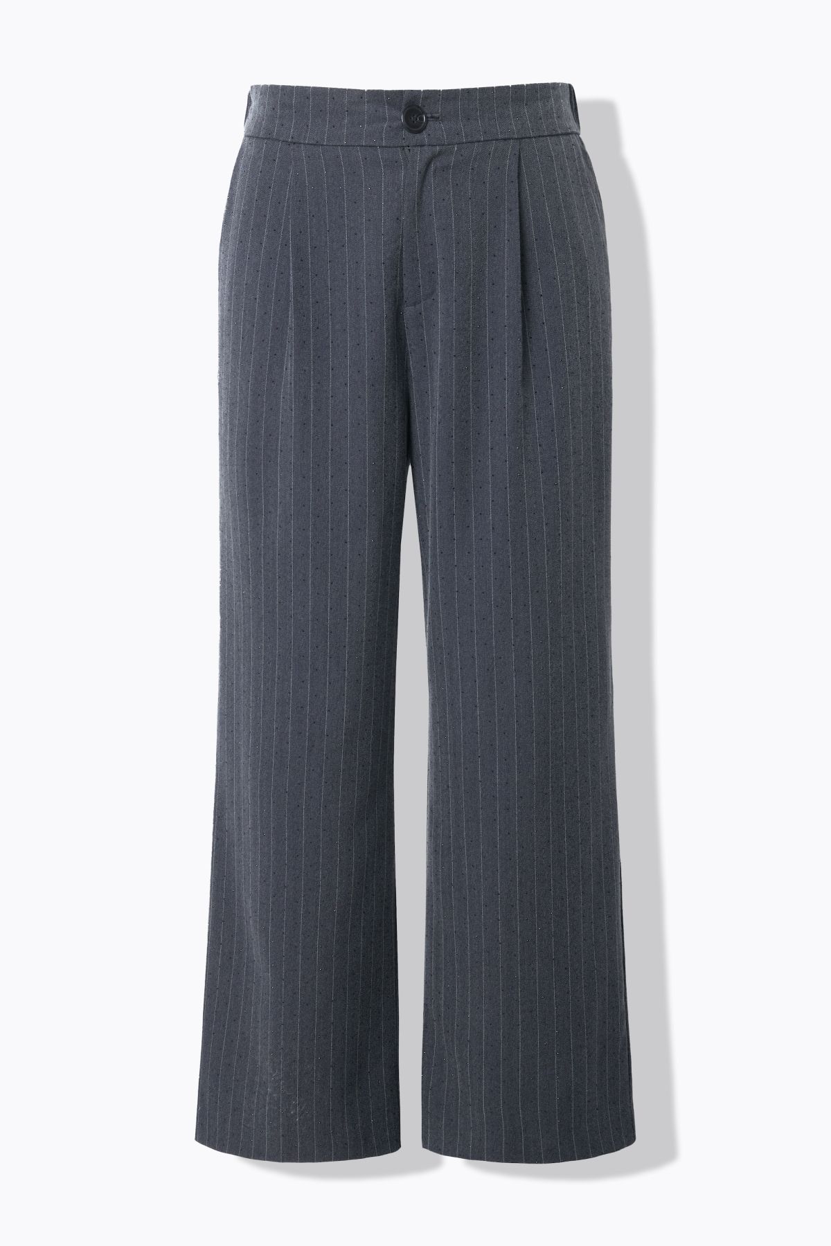 Панталон бляскав с райета. С комфортна фиксирана талия и странични джобове. С модерни прави крачоли.