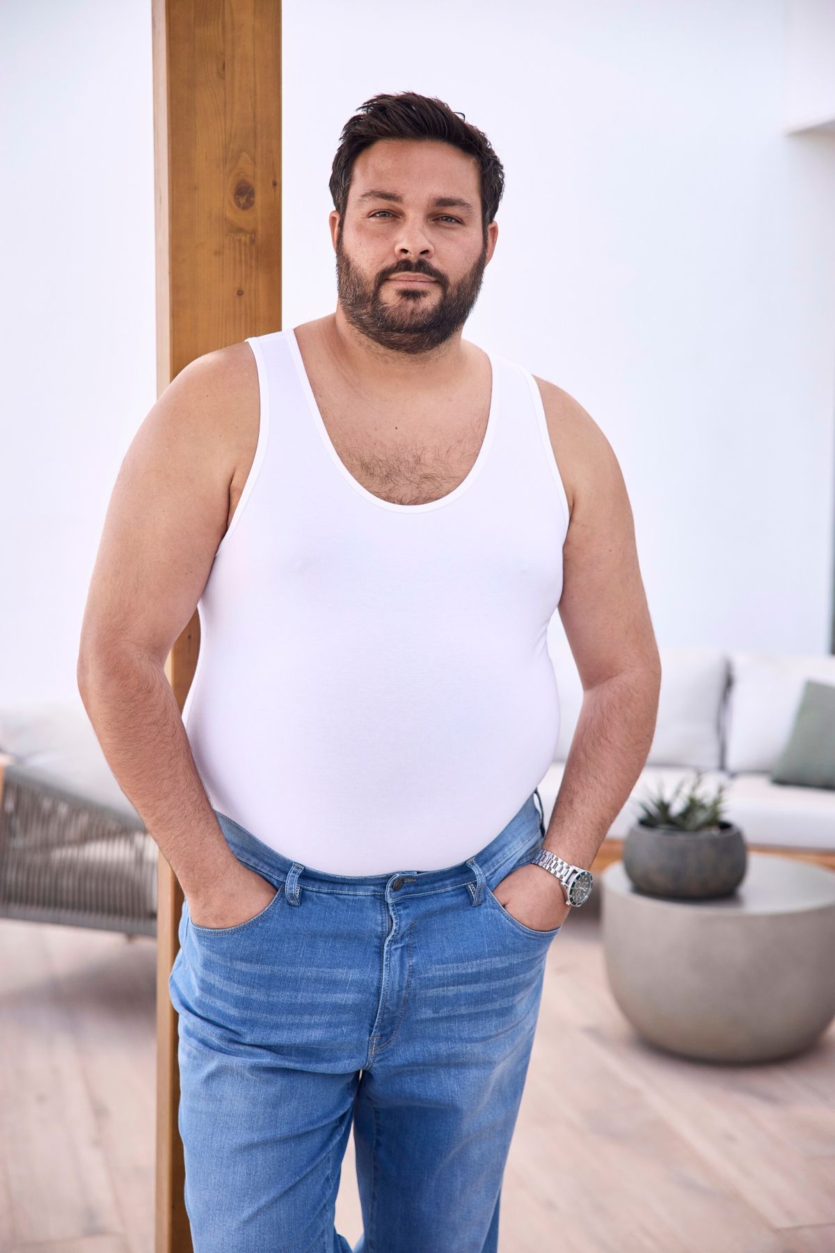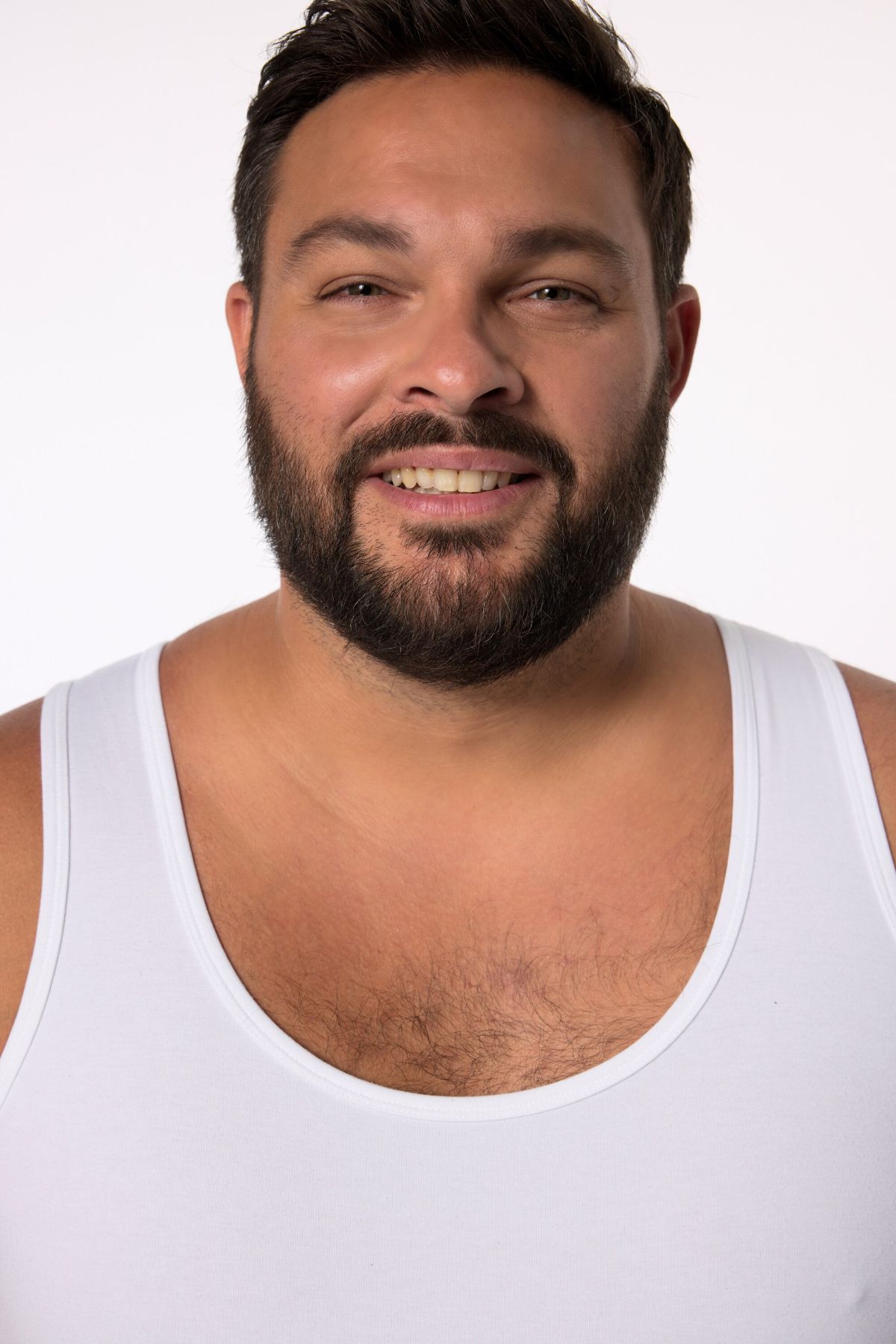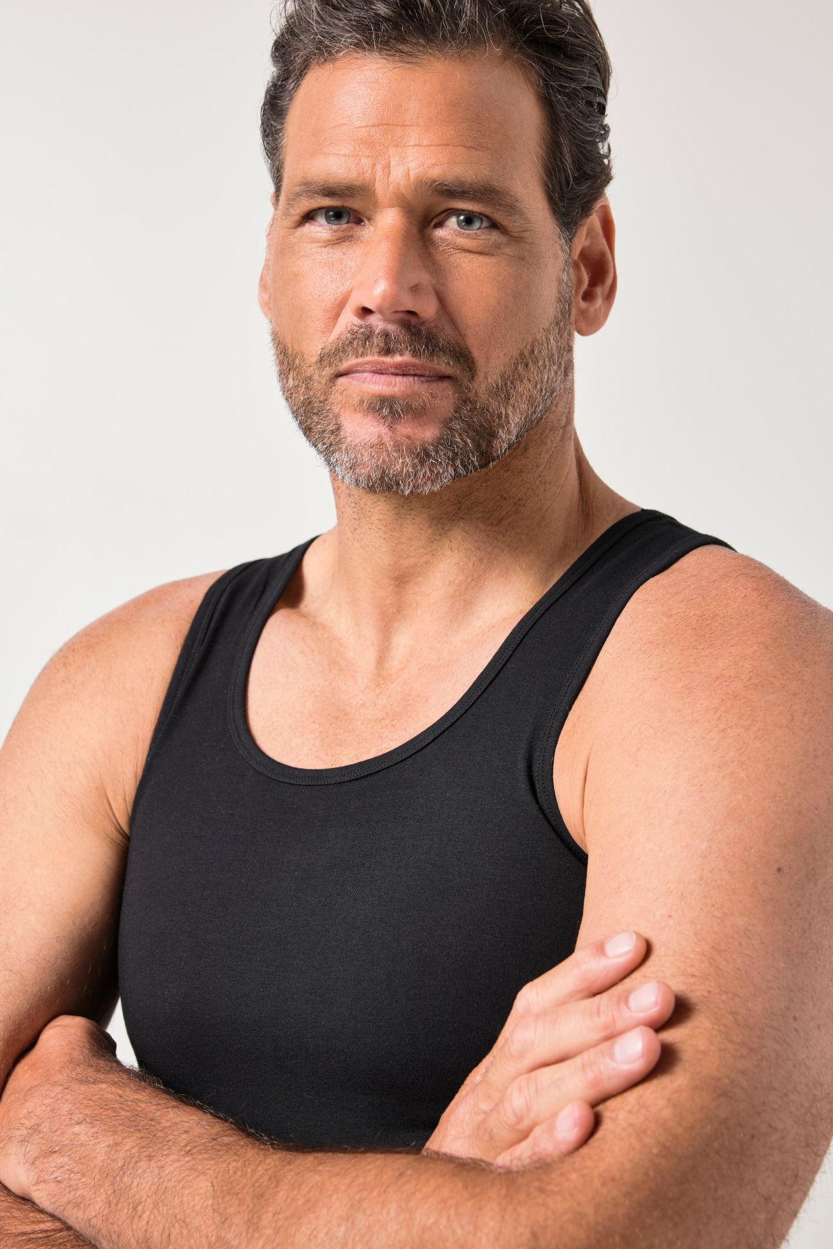 Потник с тесен силует от мека, памучна материя. С кръгло деколте и широки, комфортни презрамки.