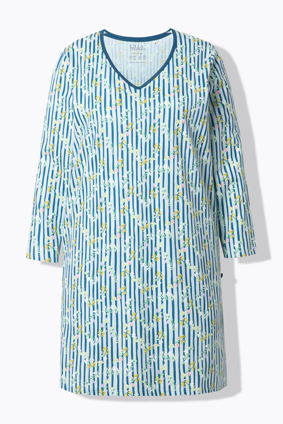 1 x едноцветен с кръгло деколте и флорален мотив, 1 x с флорален мотив и деколте във формата на сърце, удобна кройка със странични цепки, дълги ръкави, дишащ памук - идеален за през нощта, дължина приблизително 100-105 см.
