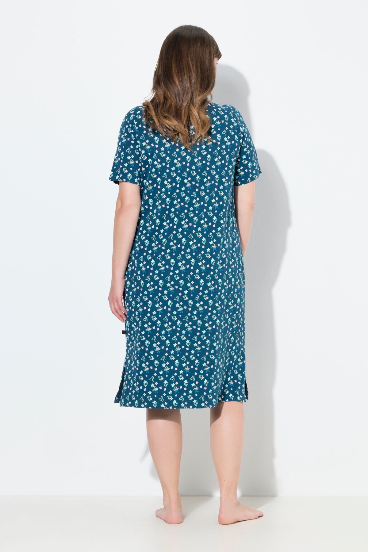 Декоративен флорален мотив, кръгло деколте, удобна кройка със странични цепки, полуръкави, дишащ памук - идеален за през нощта, дължина с регулиране на размера приблизително 110-115 см.