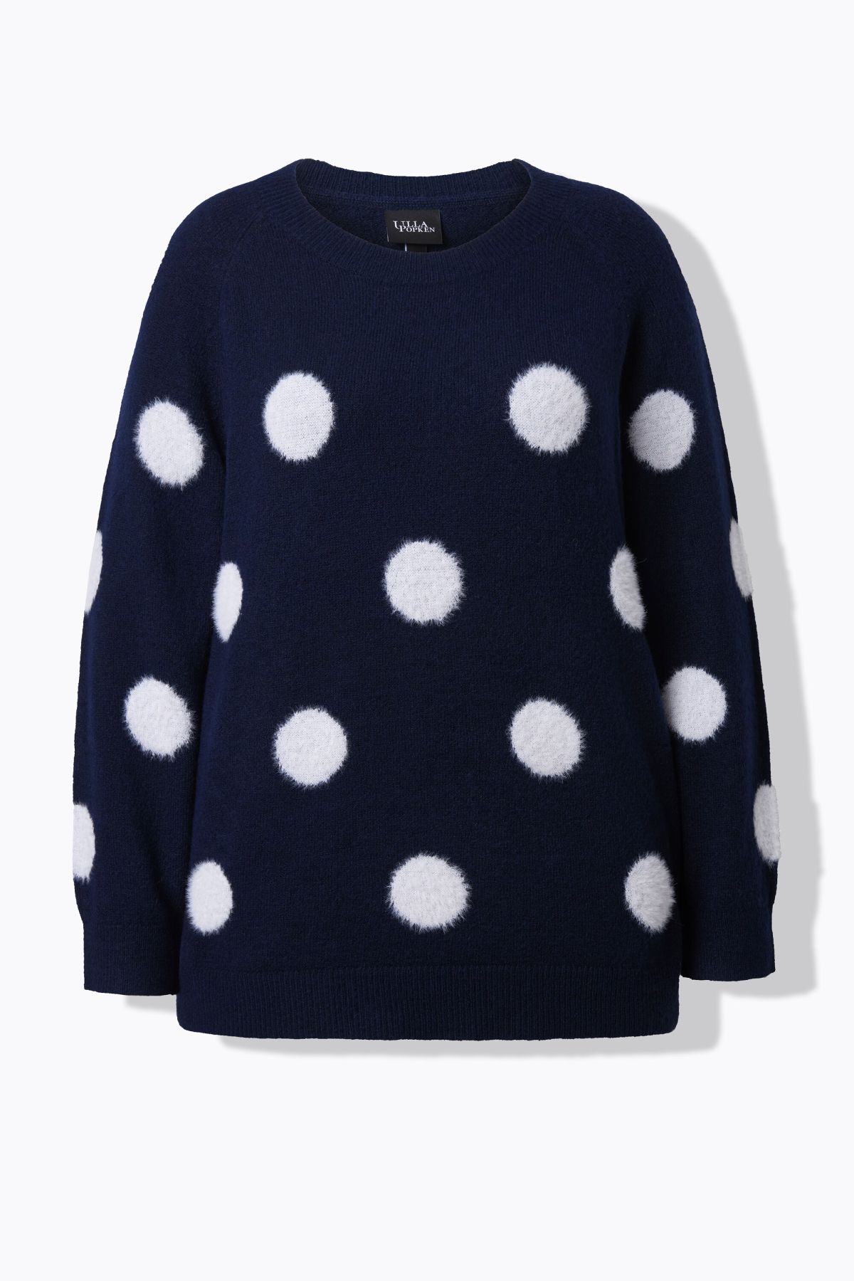 Пуловер с принт на точки с кръгло деколте и мека, пухкава материя. С дълги ръкави. Стилен и комфортен за ежедневието.