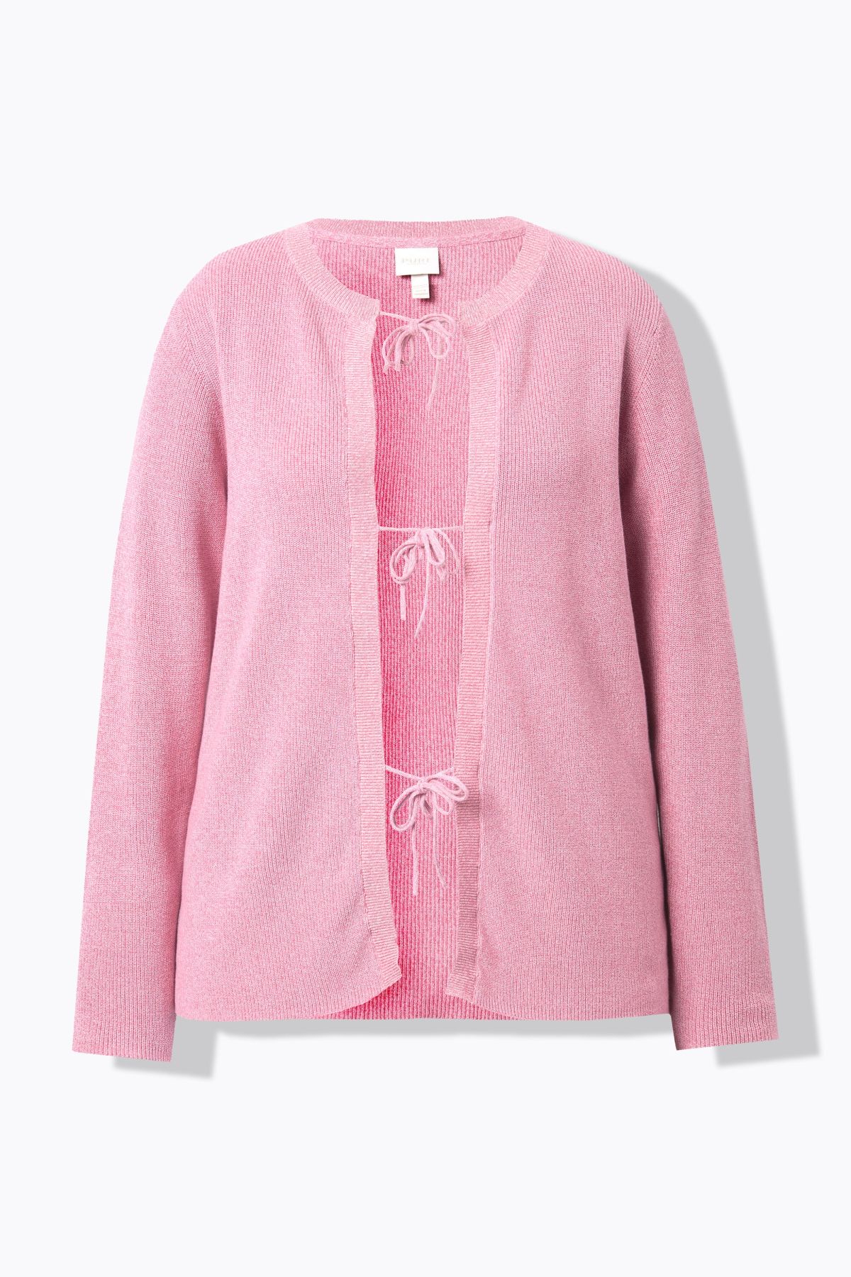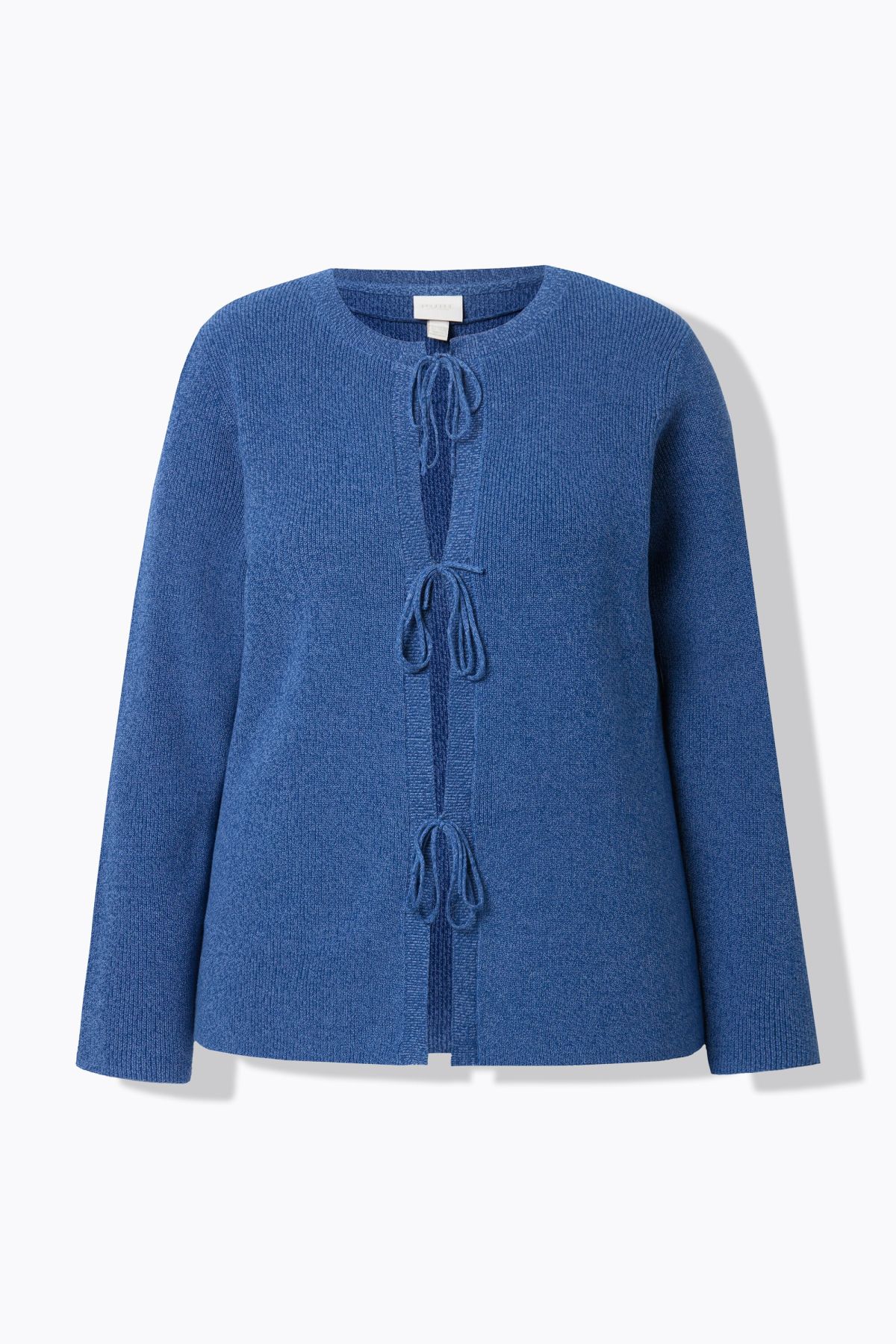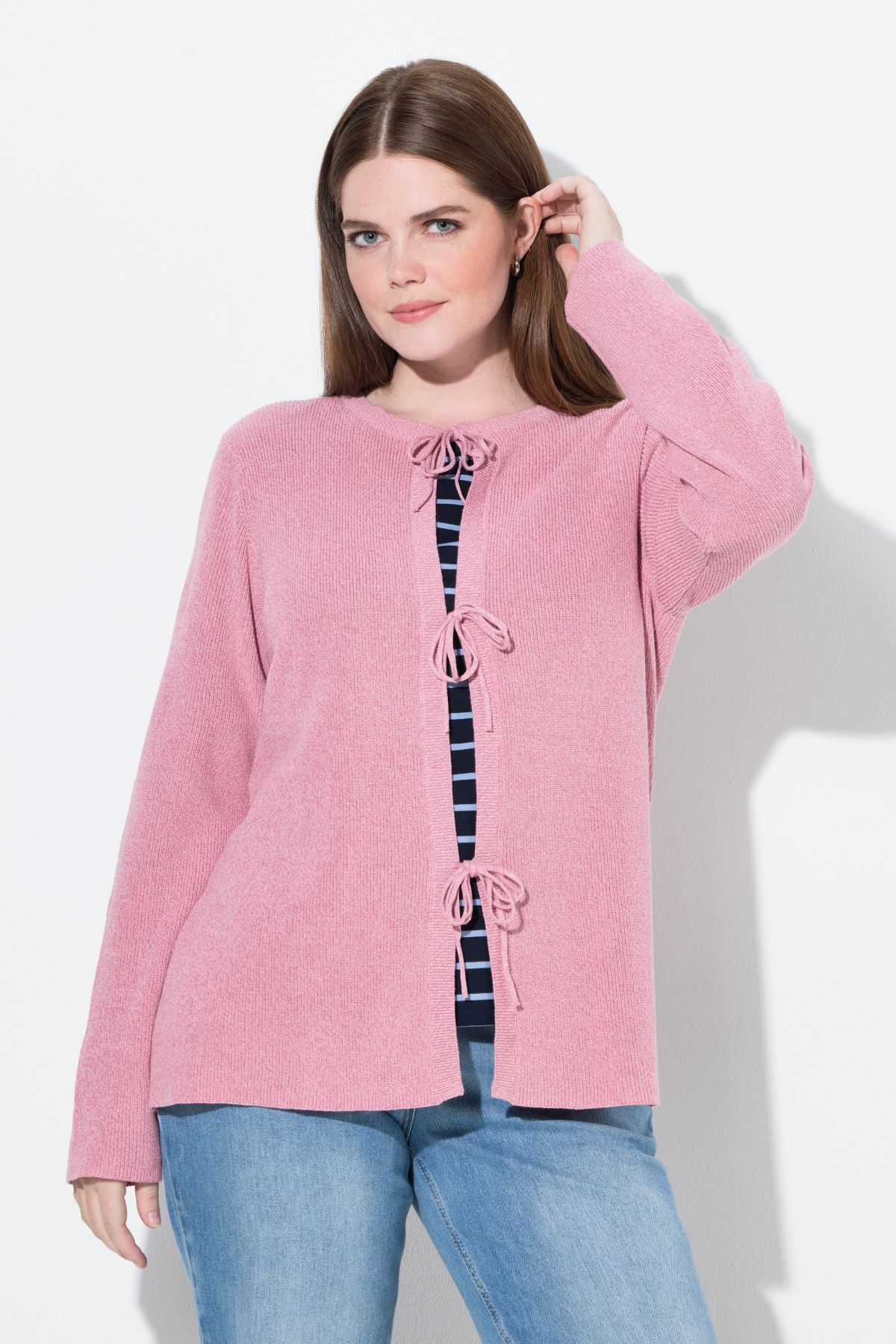 Плетена жилетка от мека, памучна материя. С деликатни връзки отпред и кръгло деколте. С дълги ръкави и стилен силует.