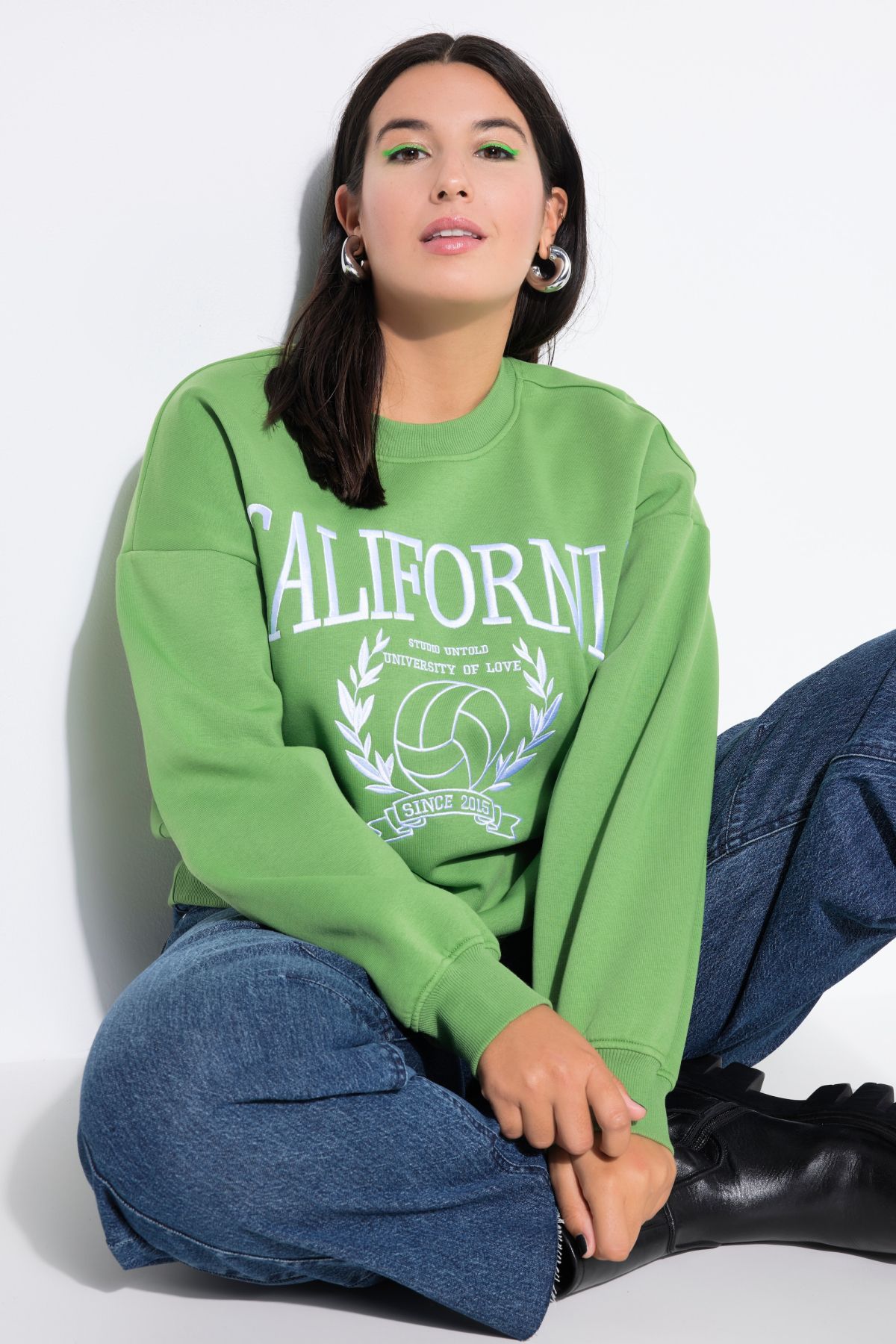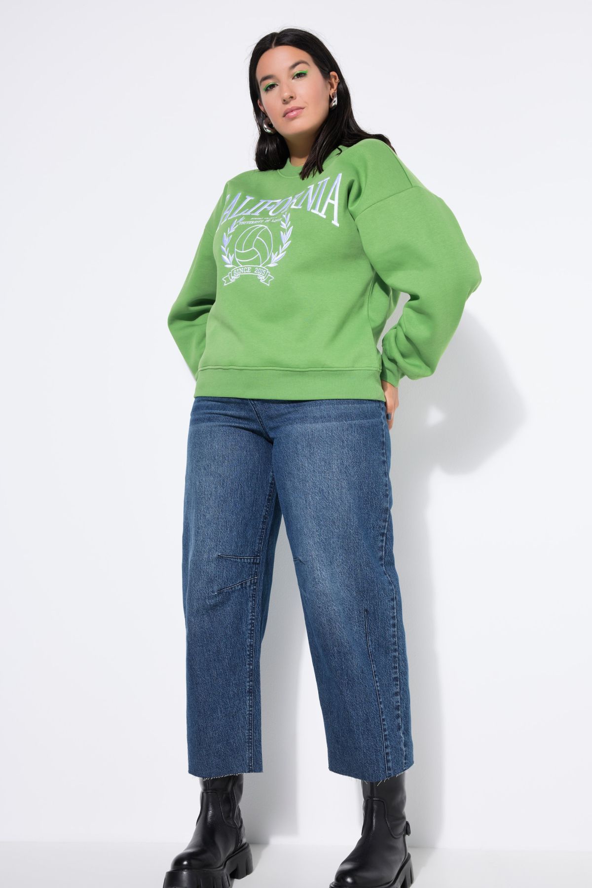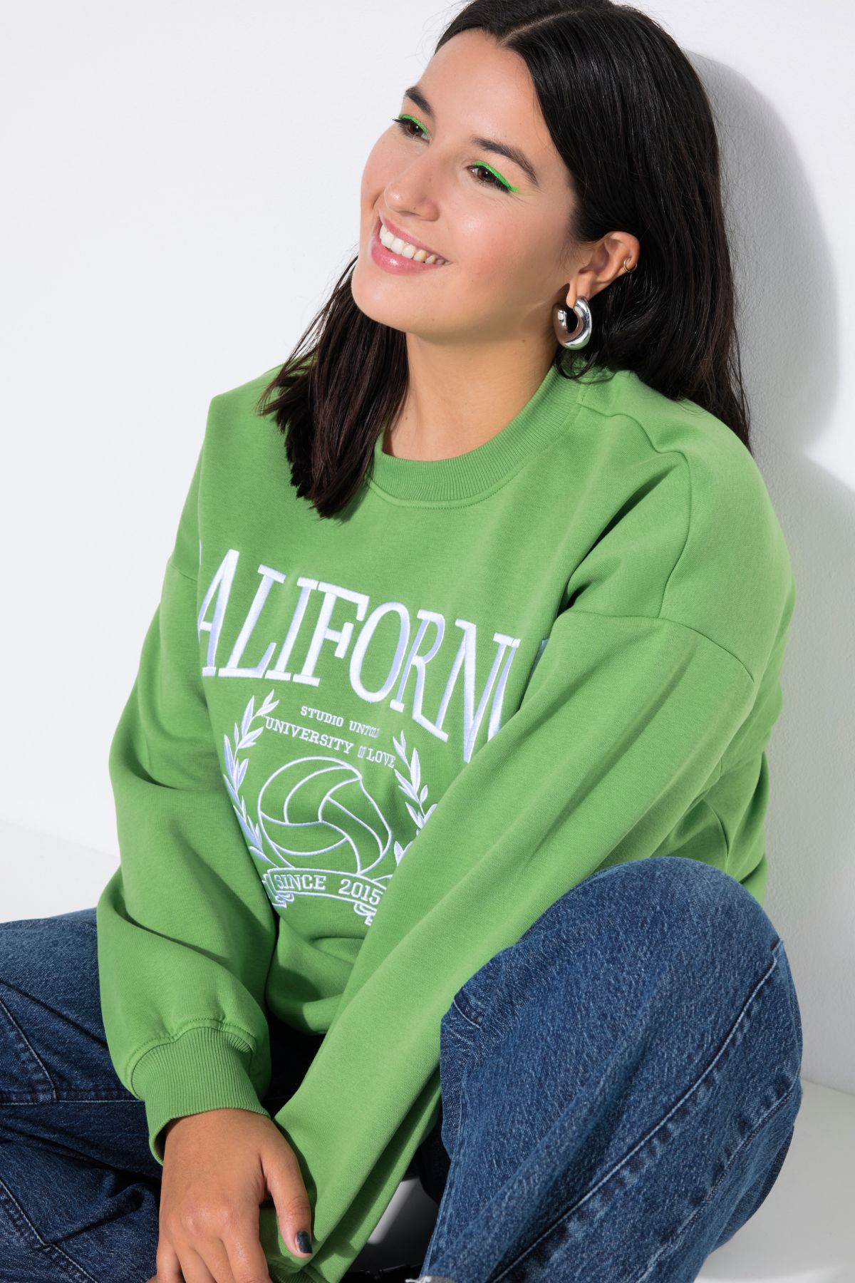 Суитчър в колежански стил с надпис отпред. С кръгло деколте и дълги ръкави с рипсени маншети. От мека материя, комфортна за ежедневието.