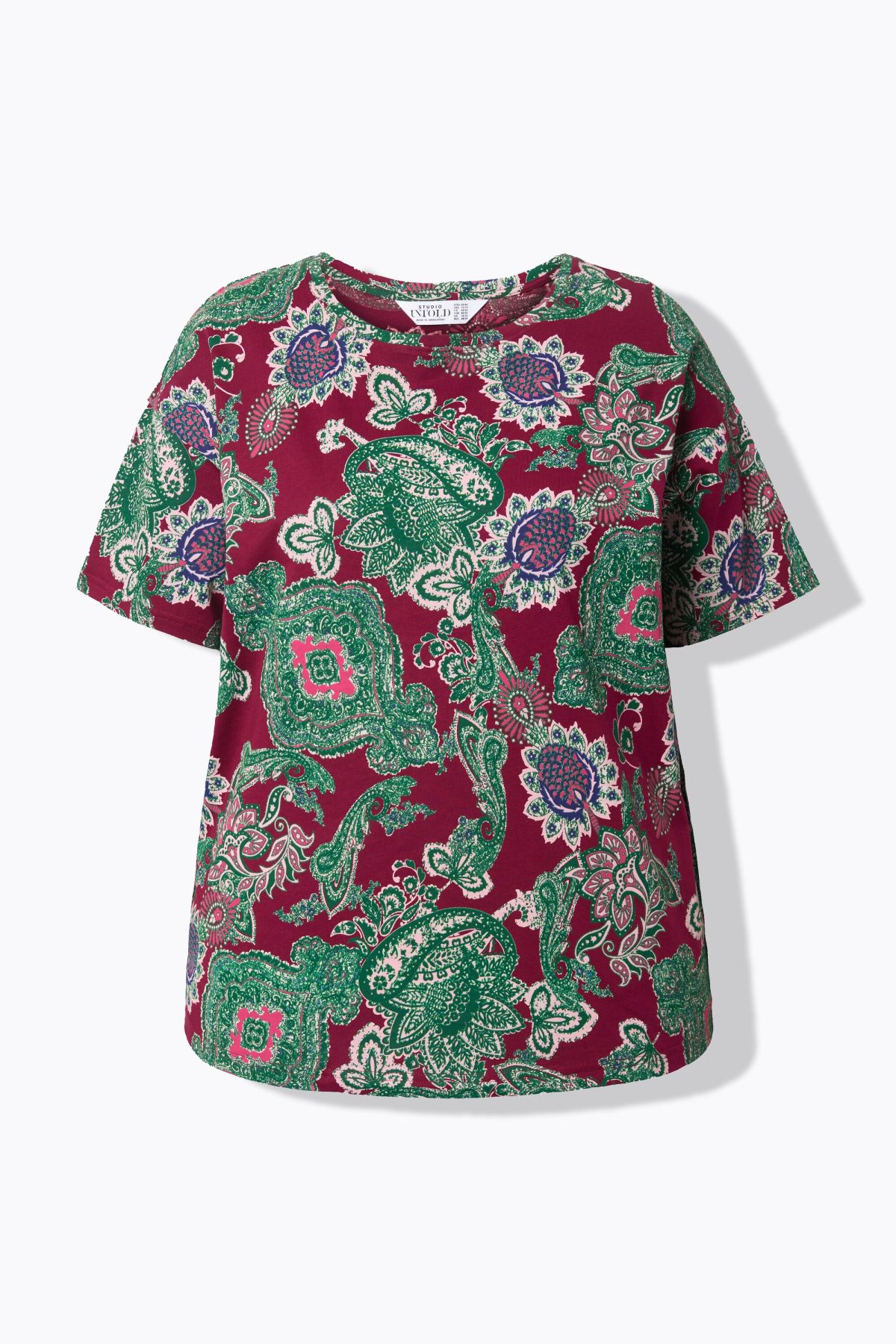 Тениска с модерен пейзли принт. С кръгло деколте и къси ръкави. От мека, памучна материя.