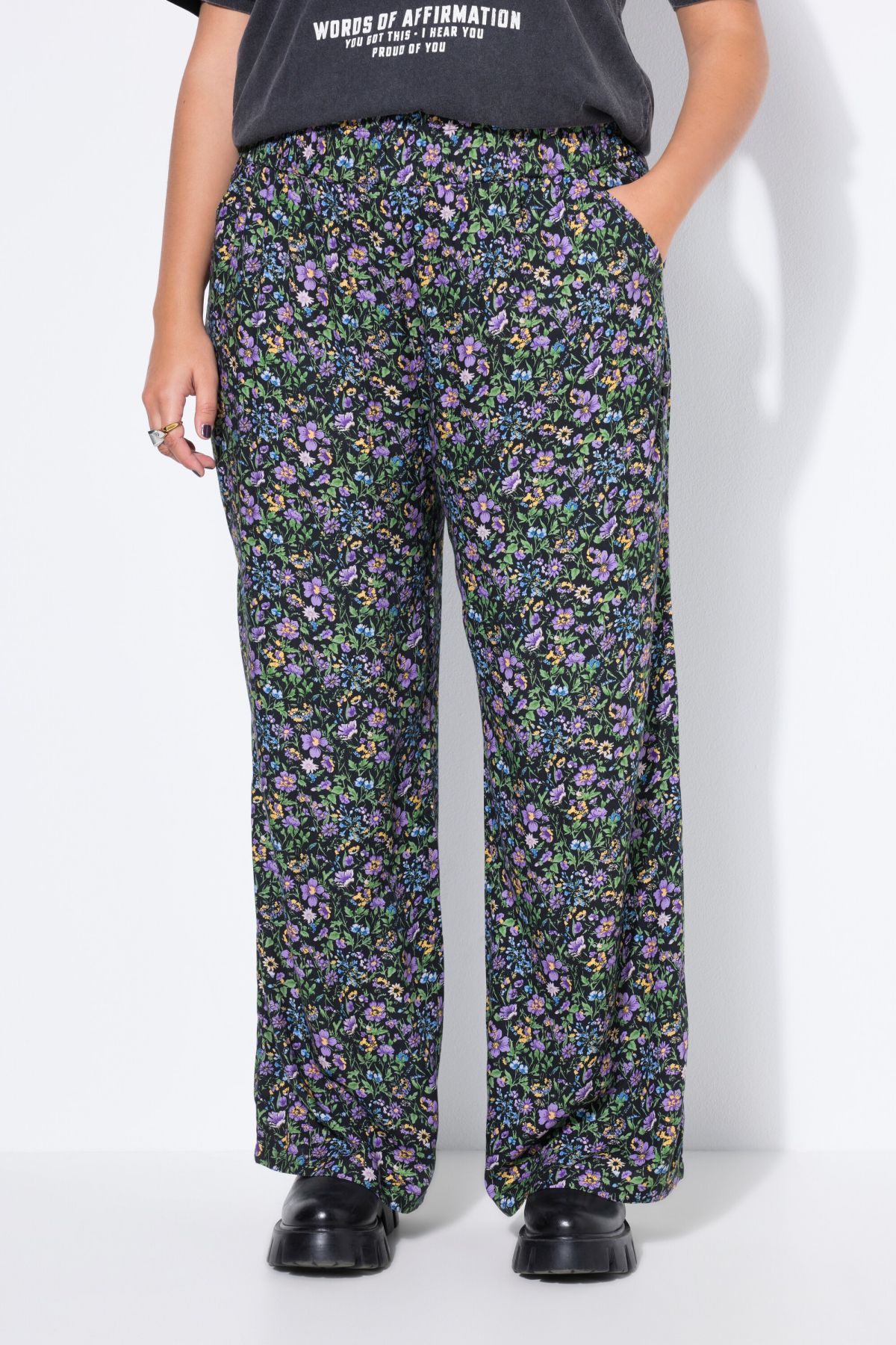 Панталон Palazzo с принт на цветя. С широки крачоли и висока тали. Със странични шевови джобове.