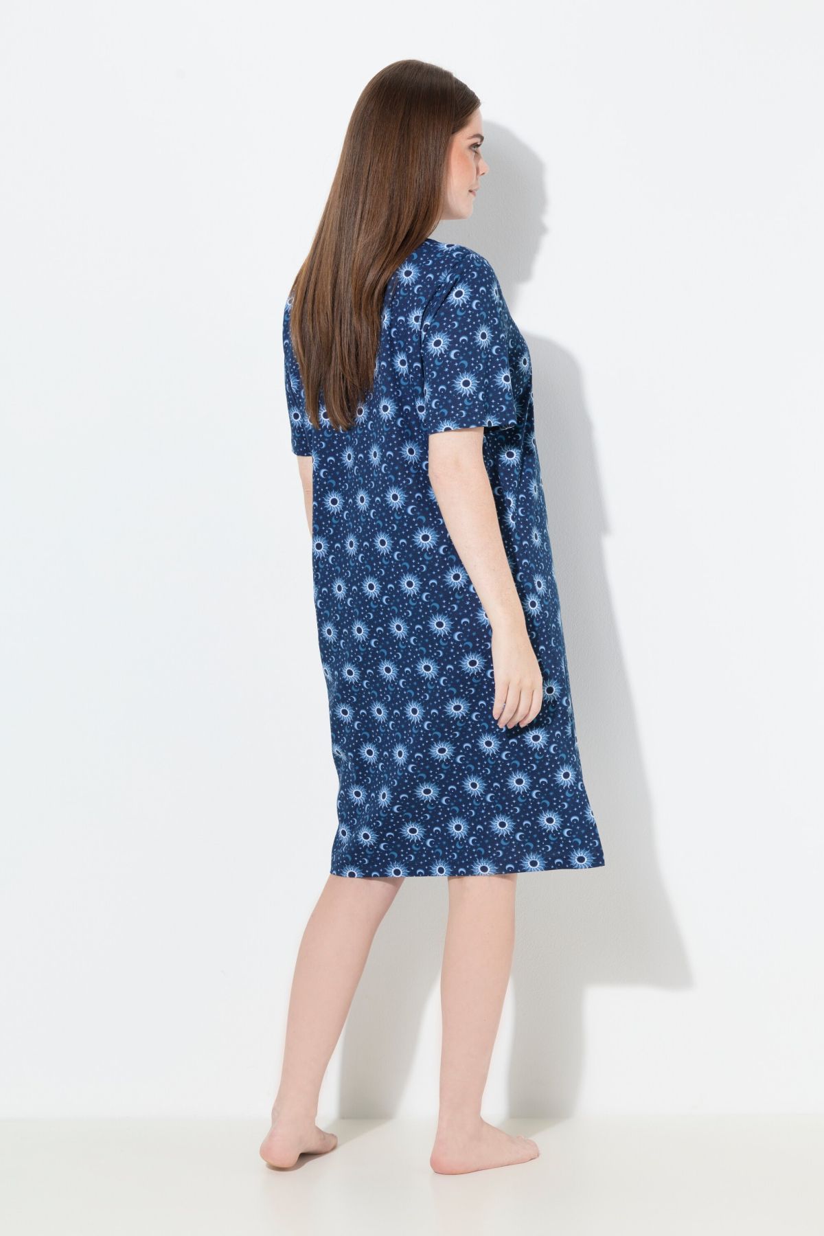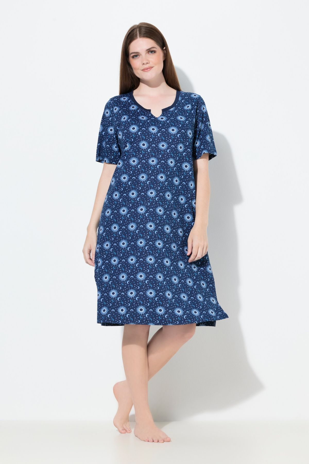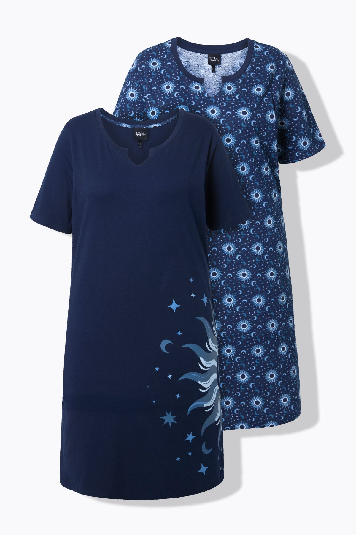 Комплект от 2 броя нощници - едната изцяло с астрономически принт, а другата с акцент. И двете с кръгло деколте с цепка, къси ръкави и странични цепки на подгъва. От мека, памучна материя.