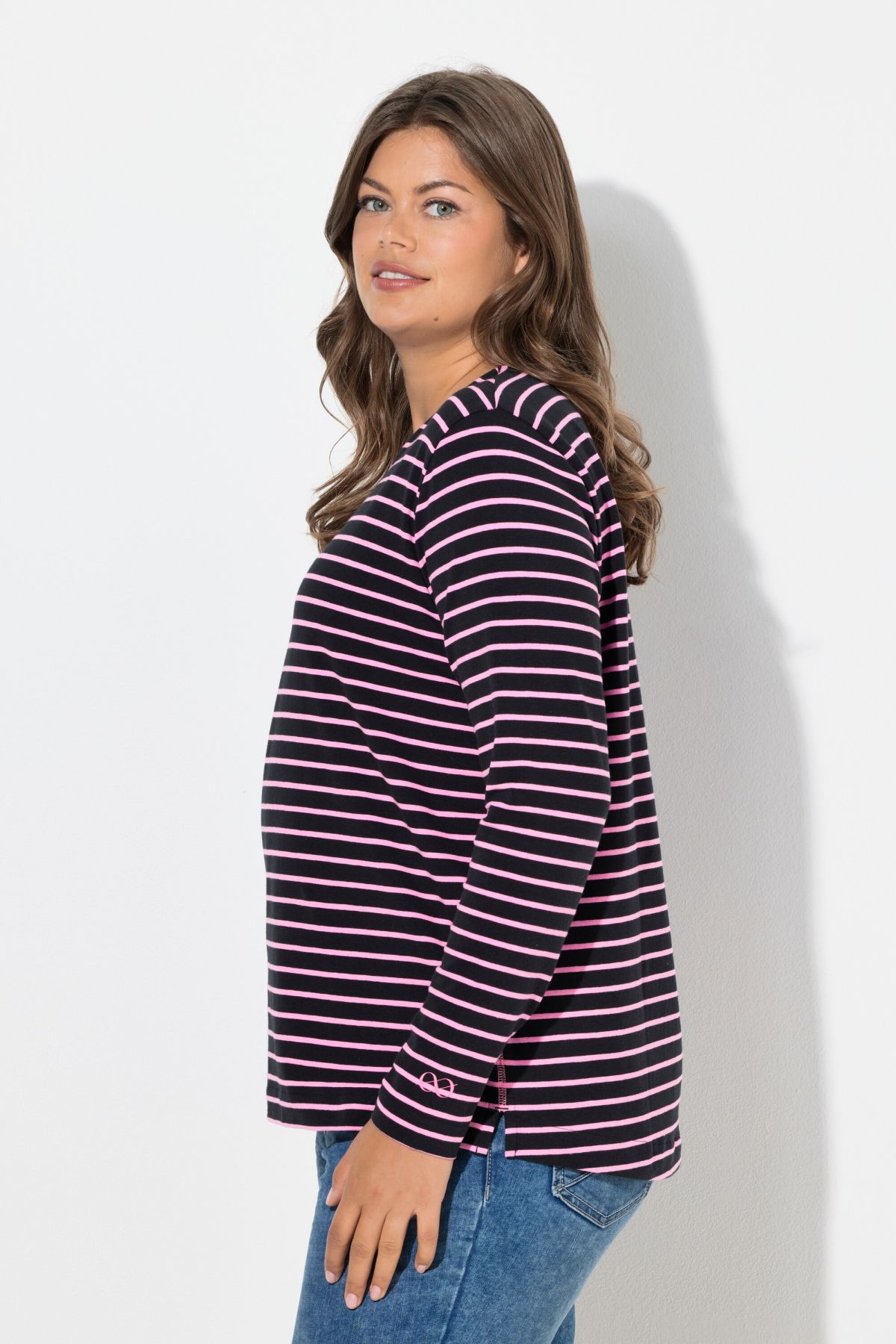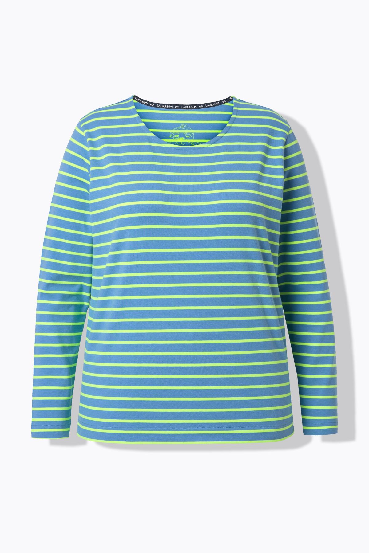 Раирана блуза с кръгло деколте по врата. С комфортни дълги ръкави. От мека, памучна материя. Перфектна за носене в свободното време и в ежедневието.