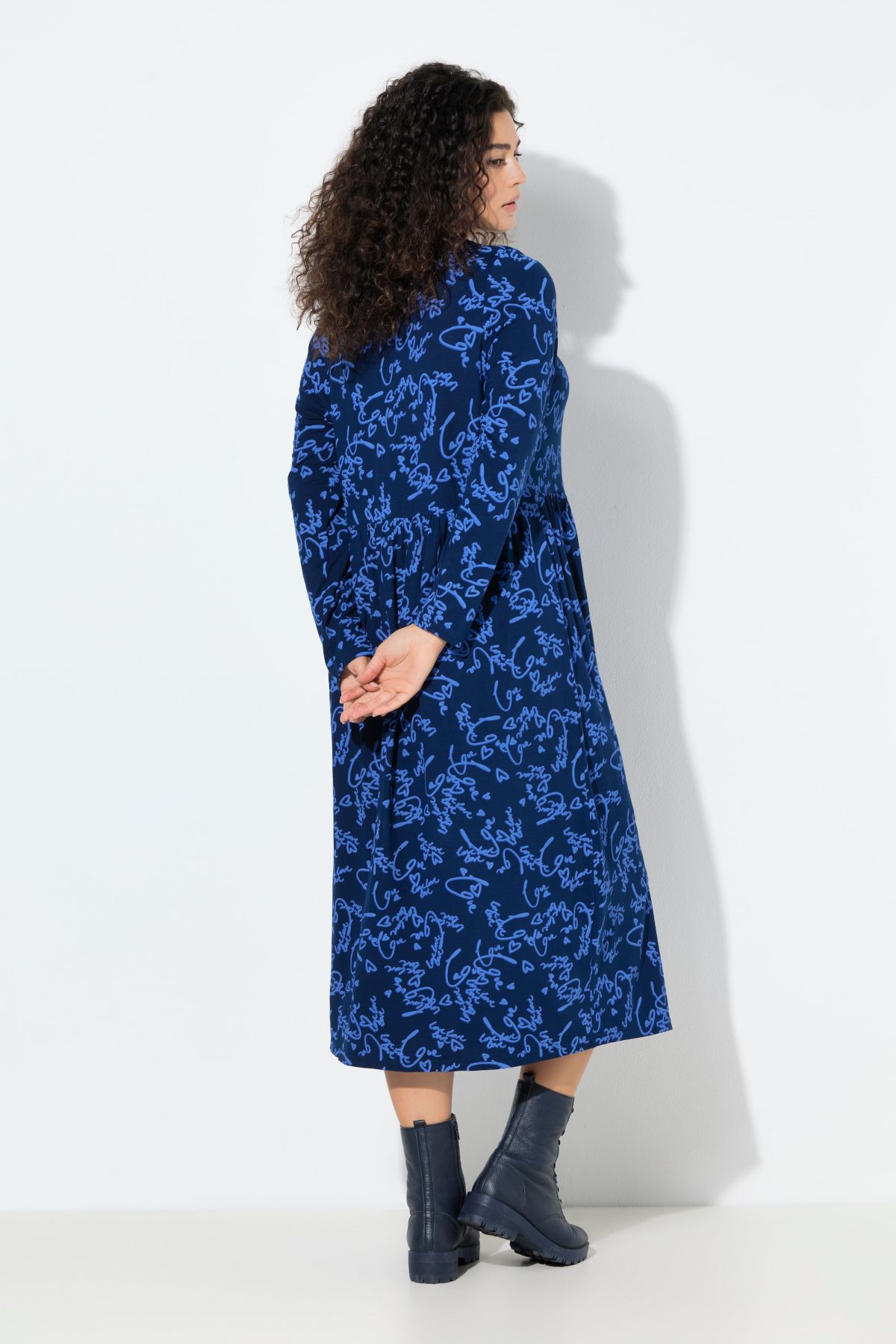Рокля с принт на надписи - игрив и романтичен стил с ръкописни детайли. С кръгло деколте с цип до талията с еластичен акцент. С дълги ръкави и странични джобове.