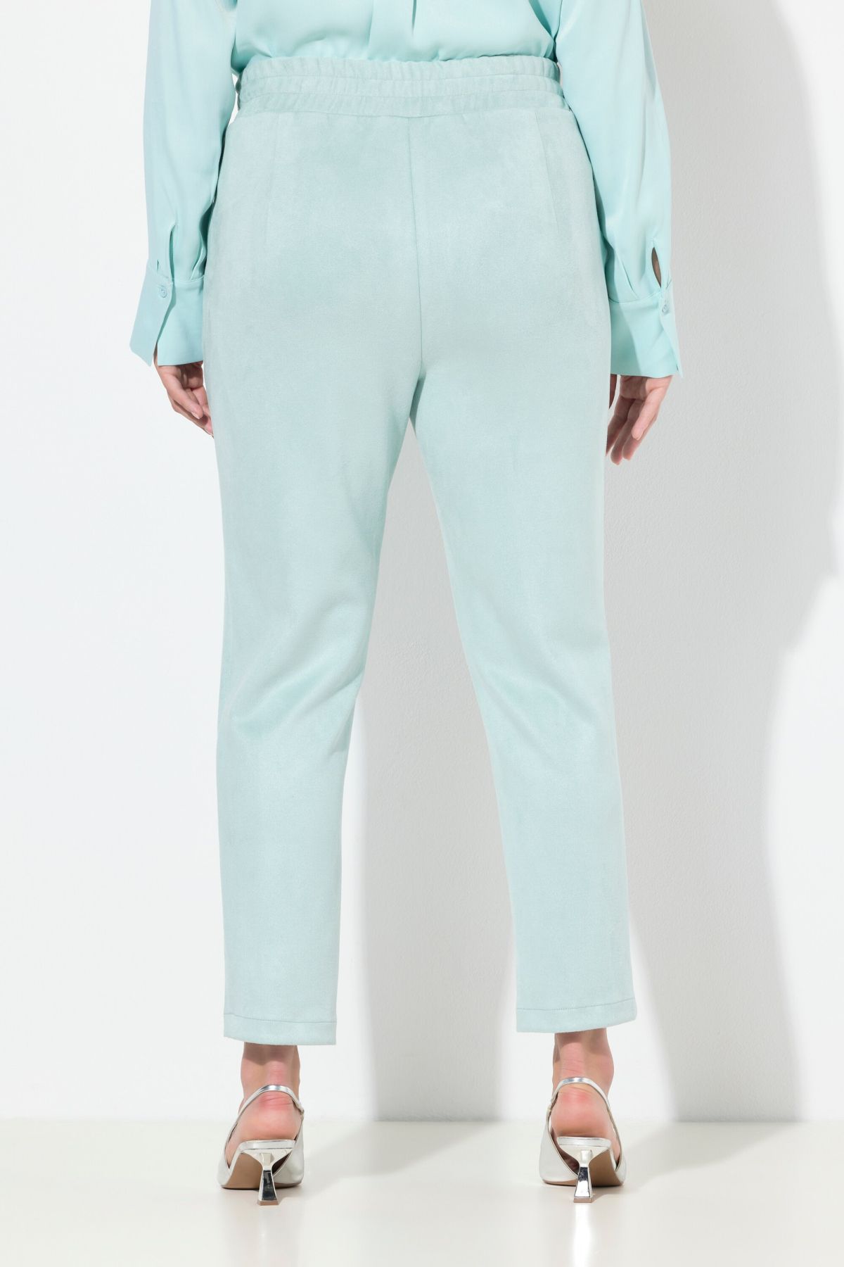 Панталон с велурена визия с прави крачоли и шевов акцент отпред. С еластична талия с връзки. Стилен и комфортен както за повод, така и за ежедневието.