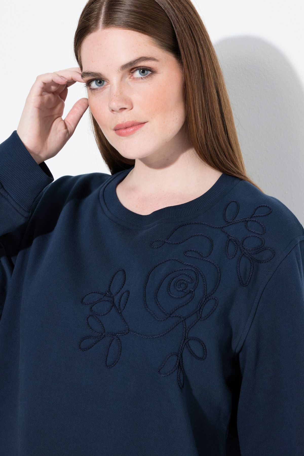 Суитчър с бродирани рози от мека, памучна материя. С кръгло деколте и дълги ръкави. Перфектен за комбинация с панталон или клин