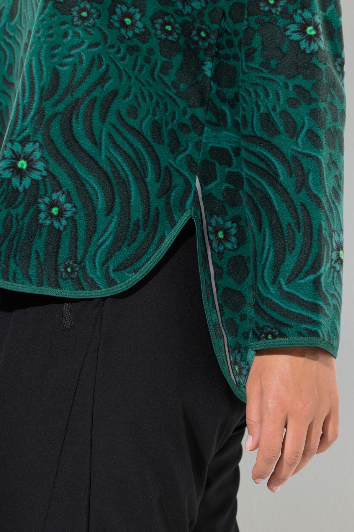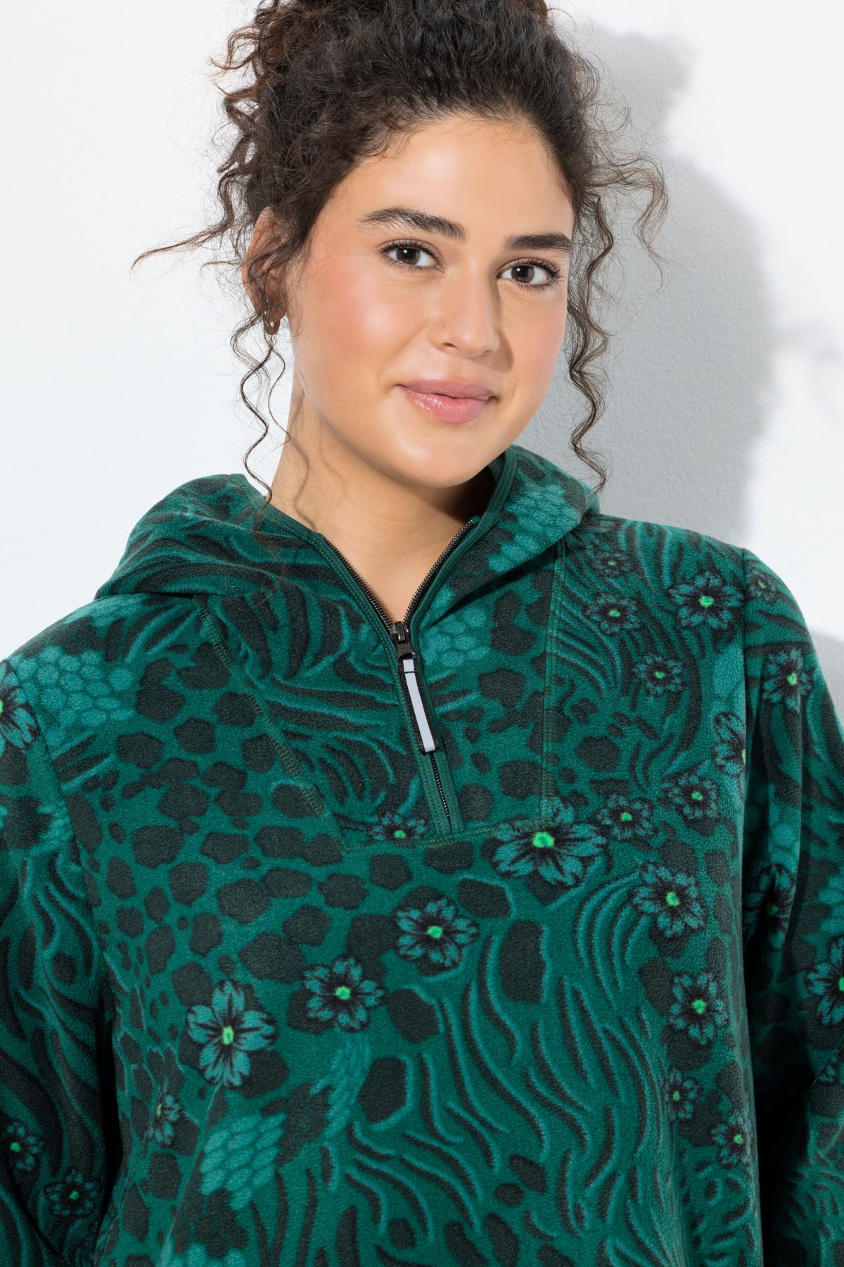 Суитчър с животински флорален принт. От мека, поларена материя с качулка с връзка и дълги ръкави. Със заоблени странични цепки.