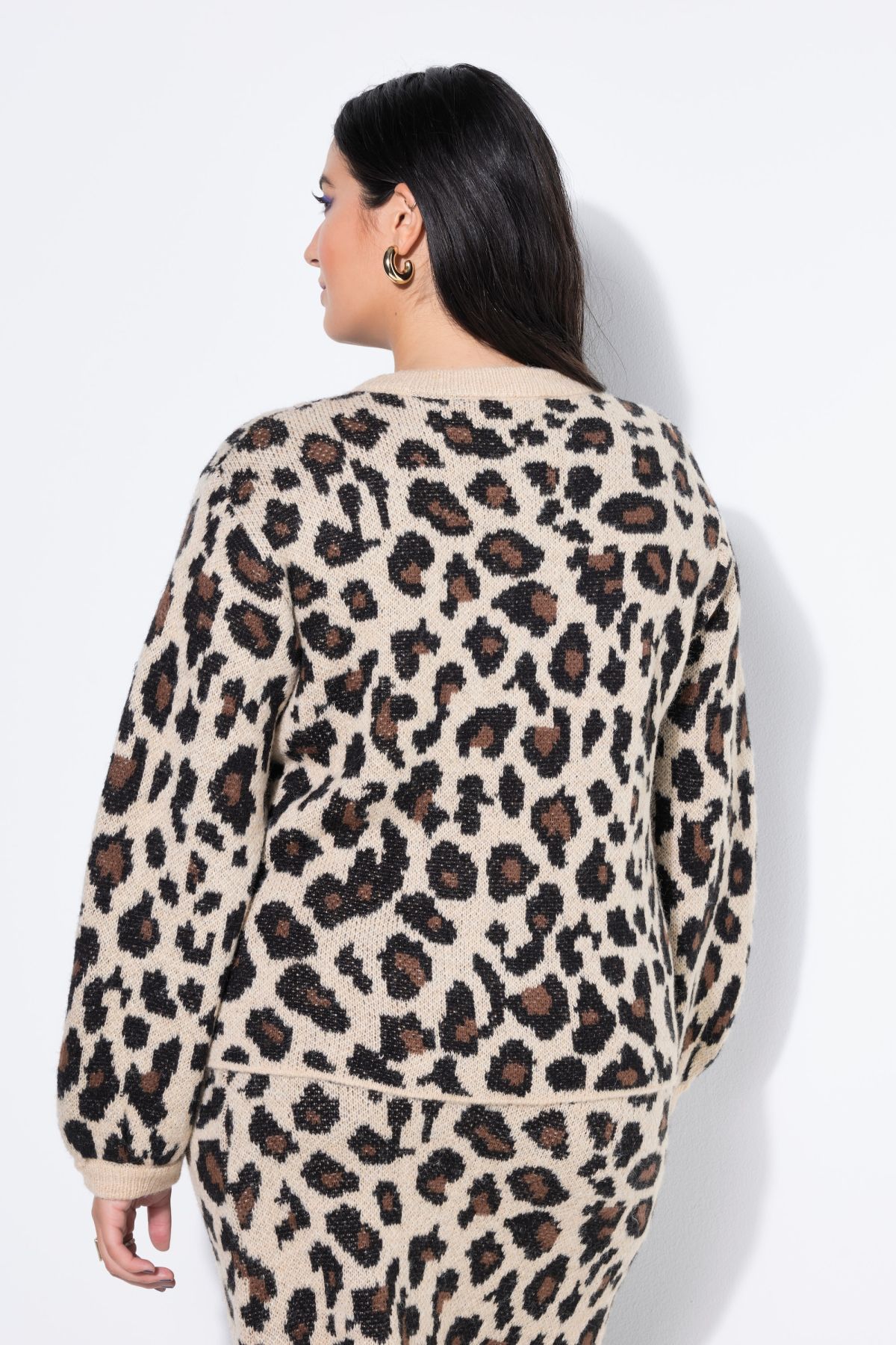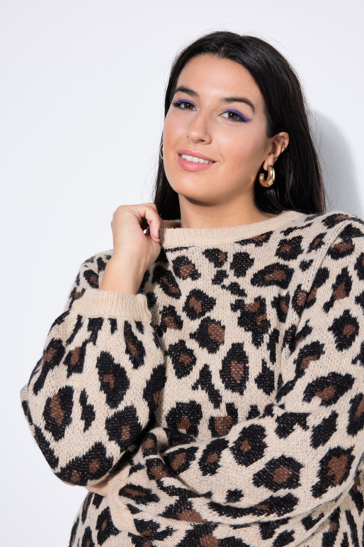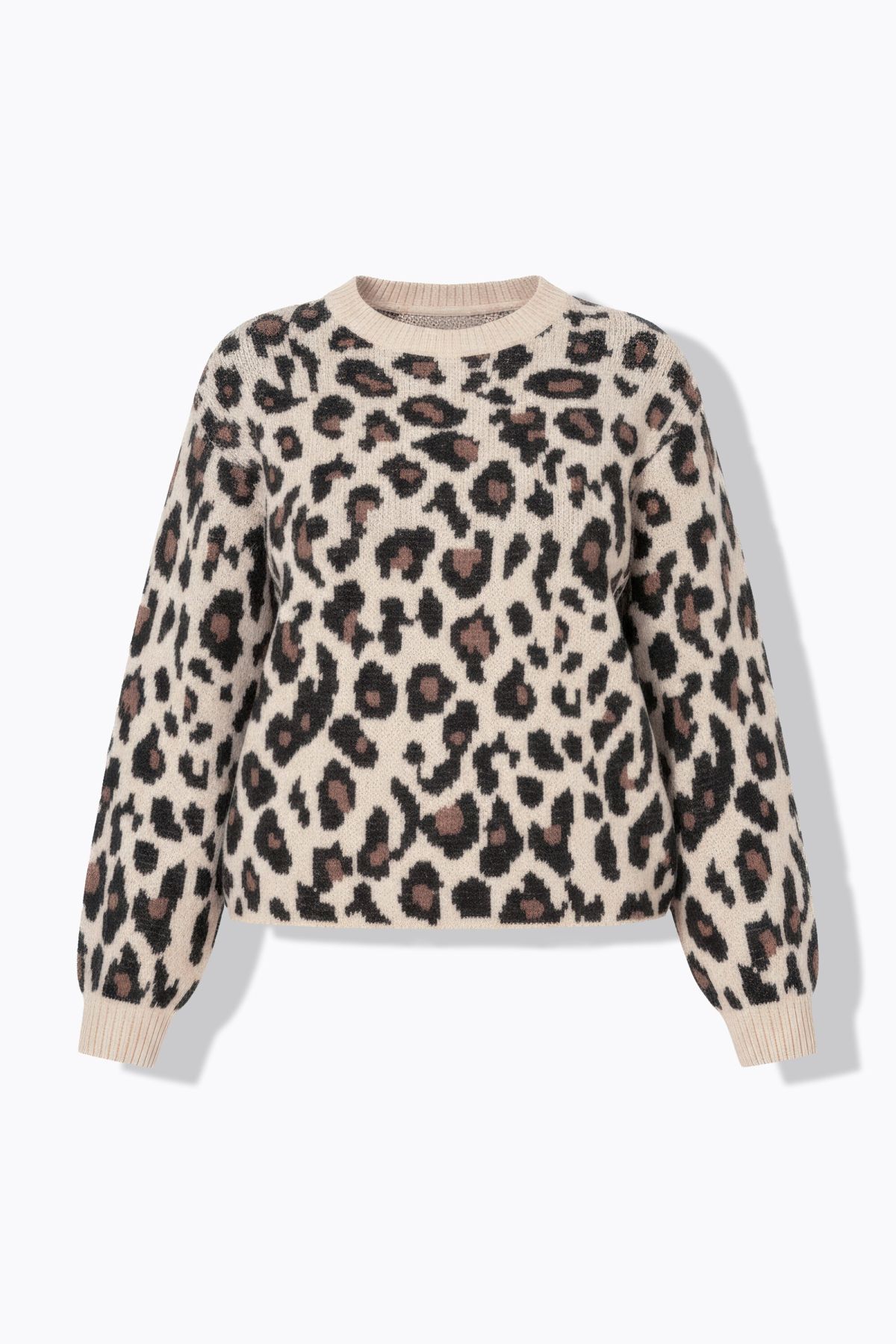 Пуловер с леопардов принт и ръкави тип балон. С кръгло деколте и комфортна кройка. От мека, фина плетка