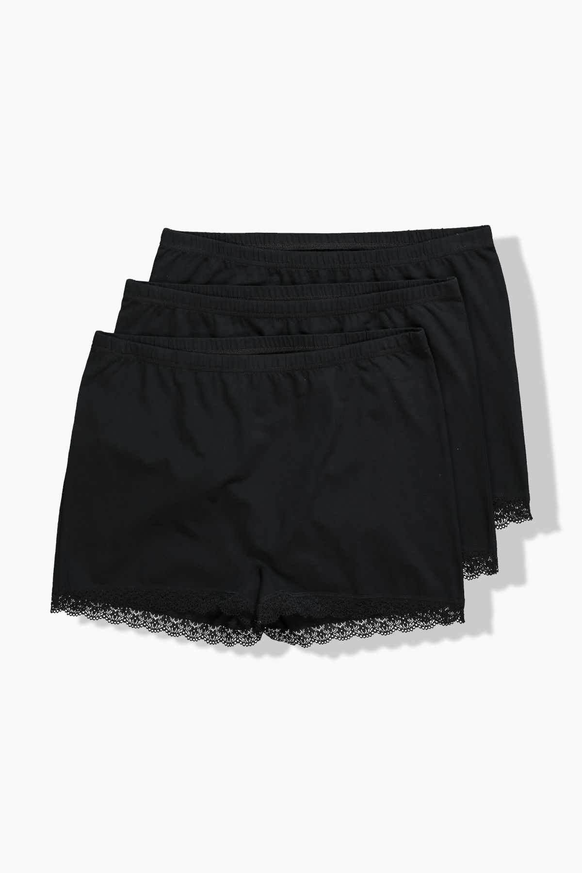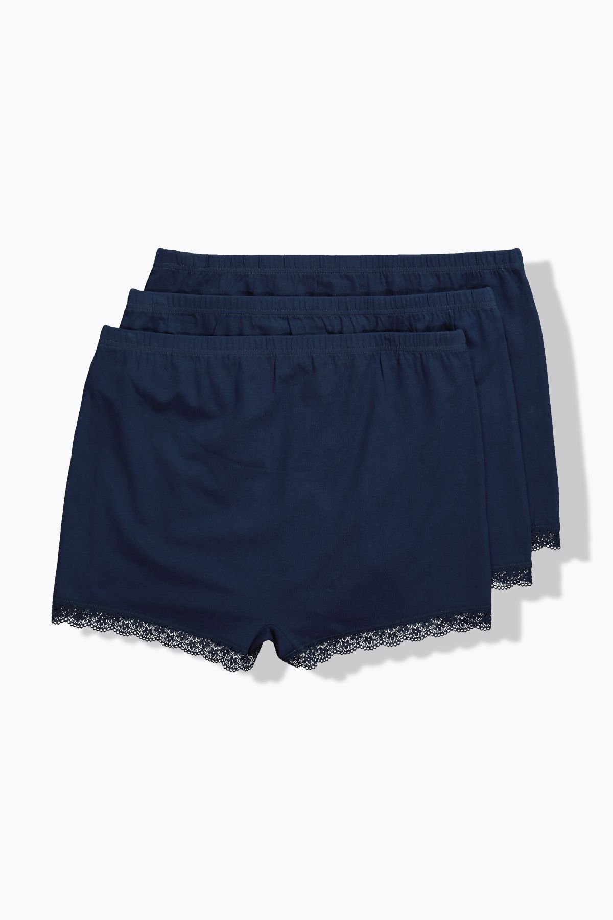 Комплект от 3 броя боксерки с деликатни дантелени акценти. С женствено усещане и дантела на крачолите. С еластична талия.