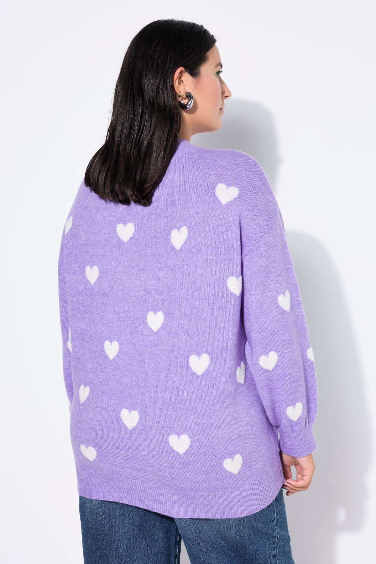 Пуловер с овърсайз силует. С кръгло деколте по врата и дълги ръкави с рипсени маншети. От мека, комфортна за ежедневието материя.