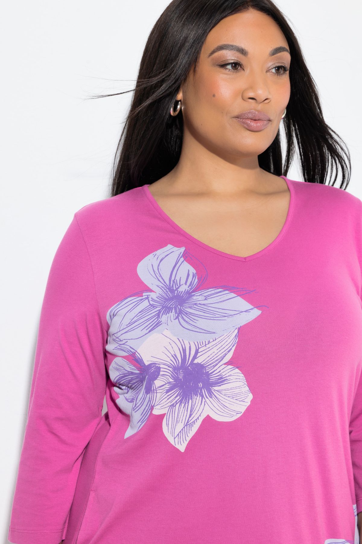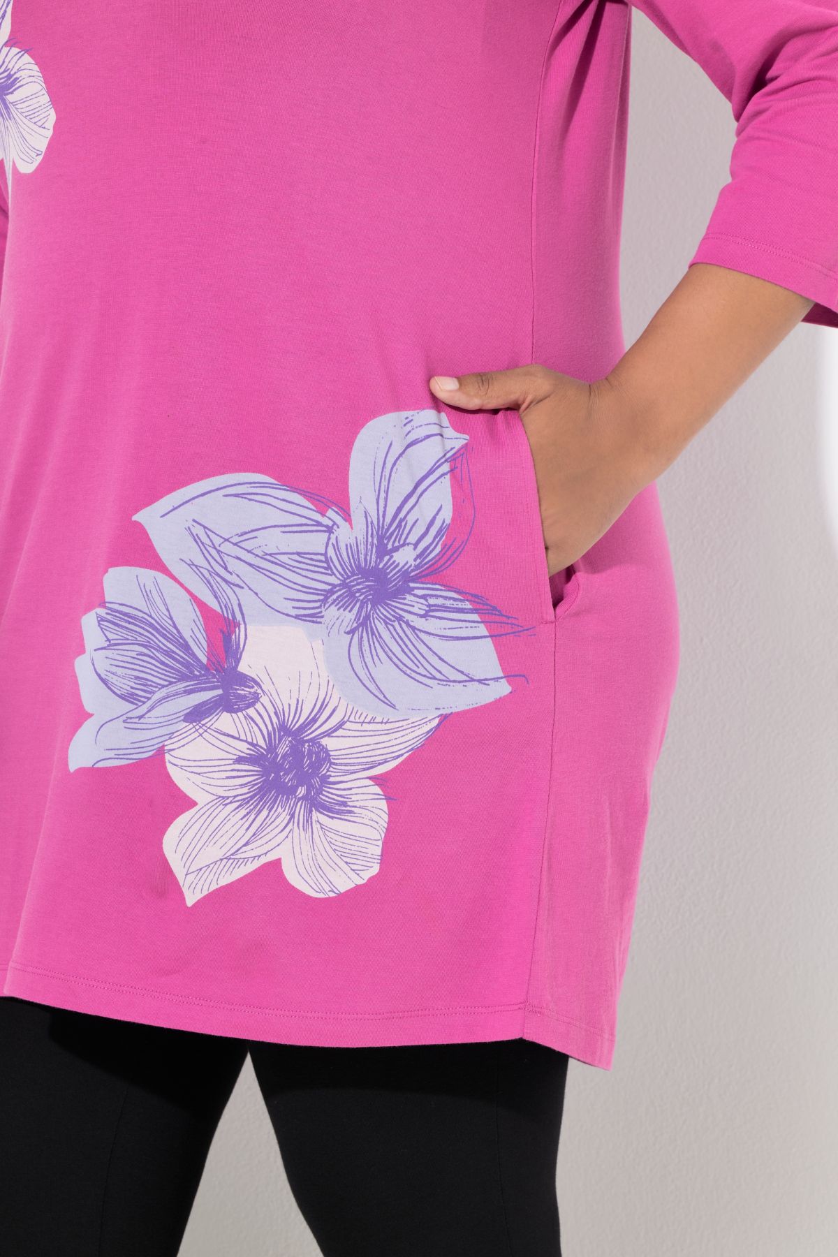 Дълга блуза тип туника с принтове на цветя. А-силует с 3/4 ръкав и V-образно деколте. От мека памучна материя.