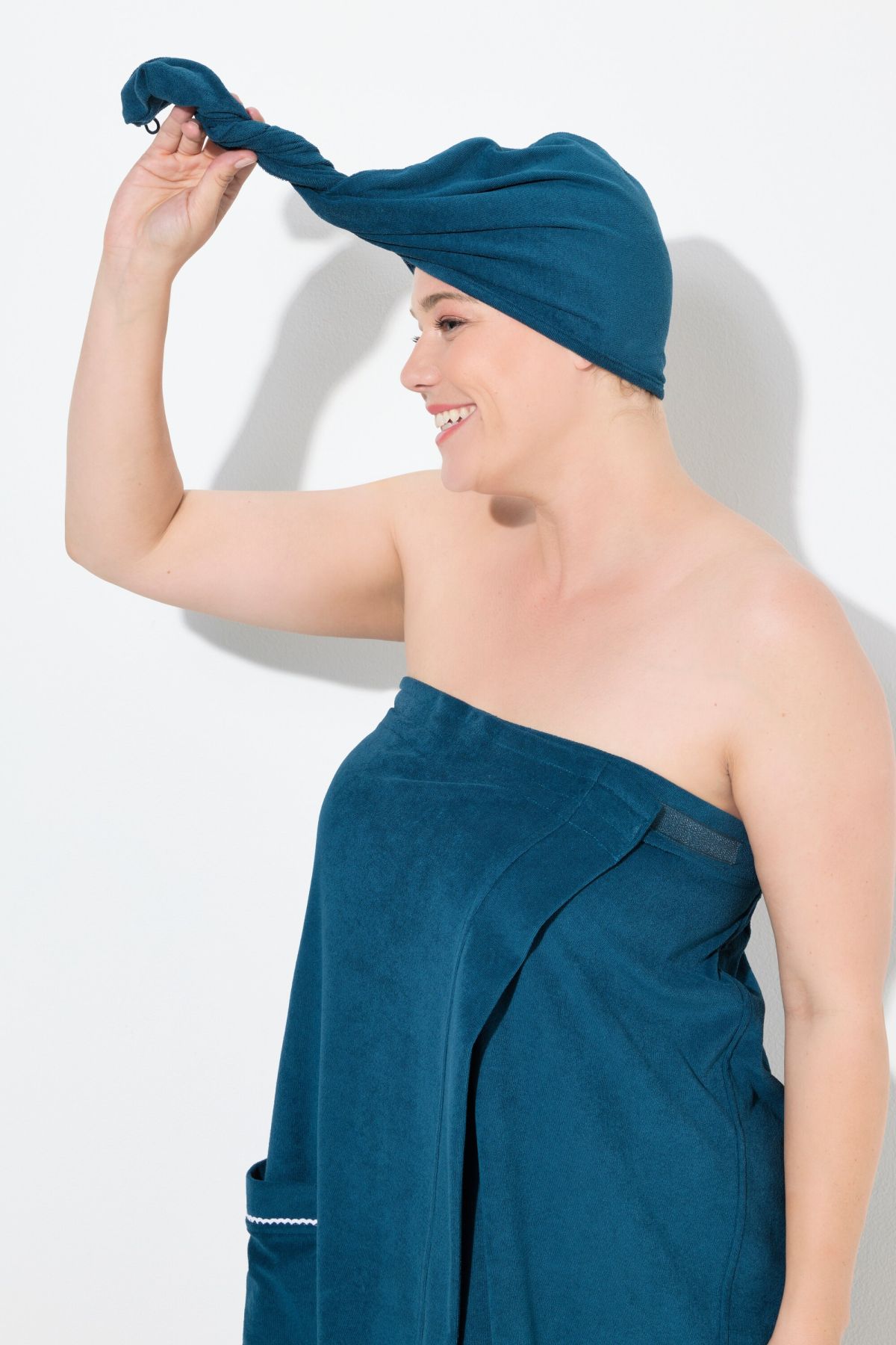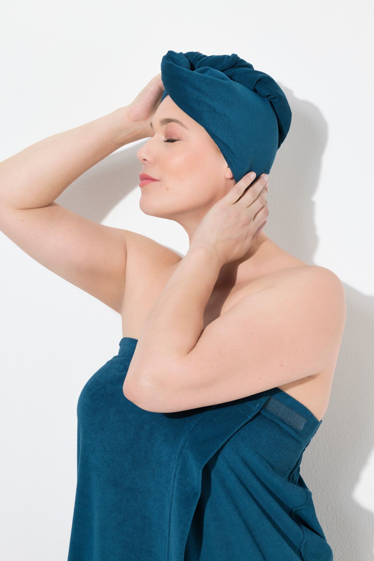Кърпа за глава тип тюрбан от мека, памучна материя. Перфектно изсушава косата.