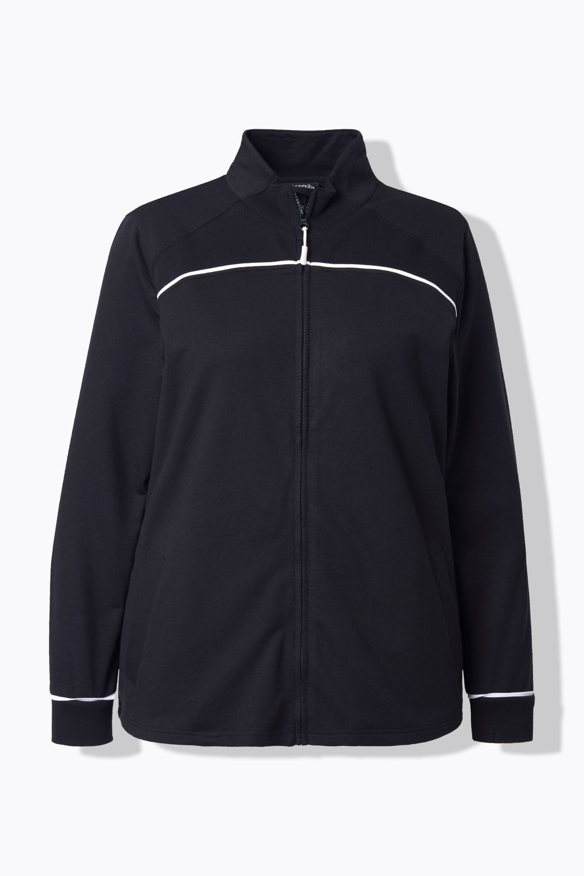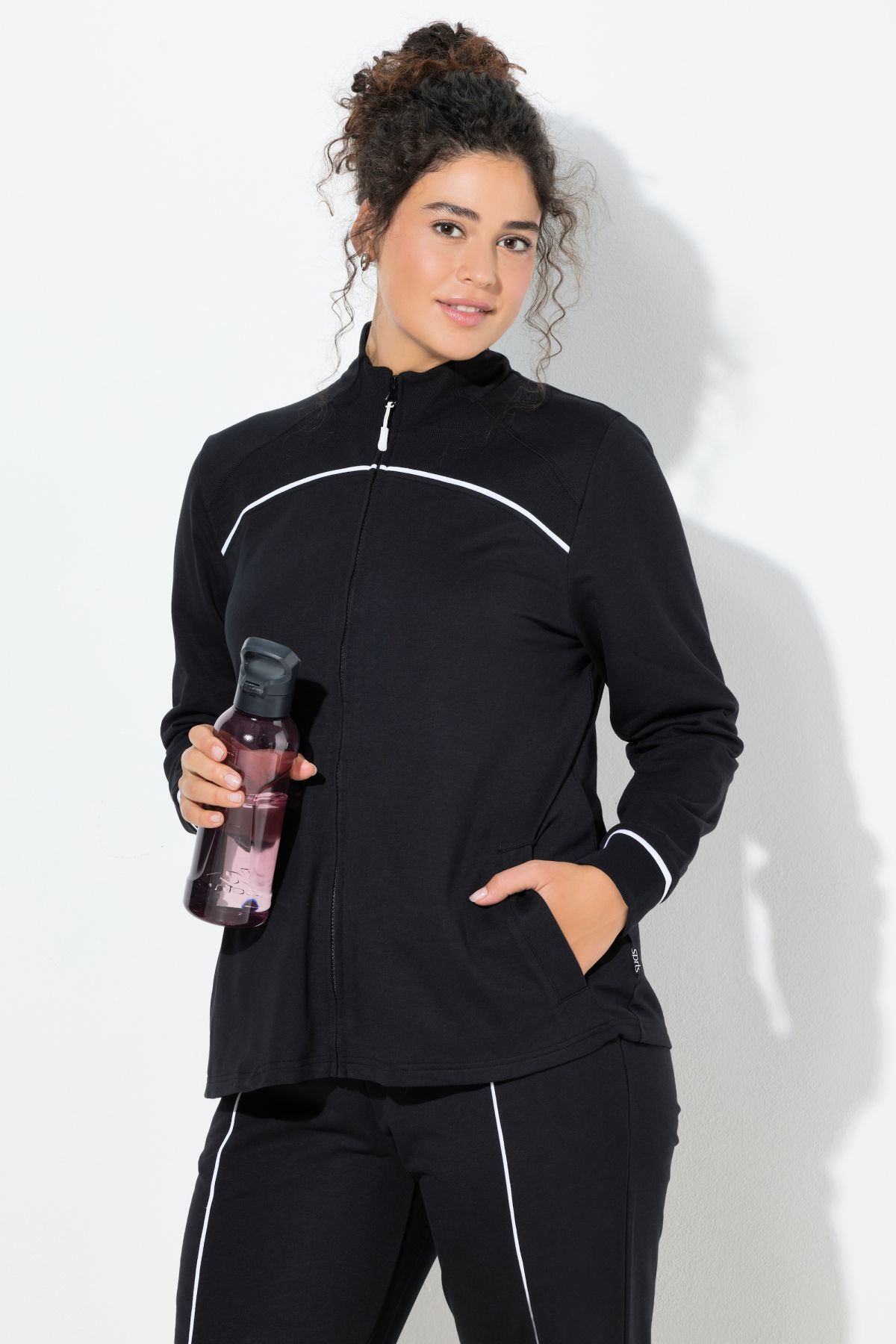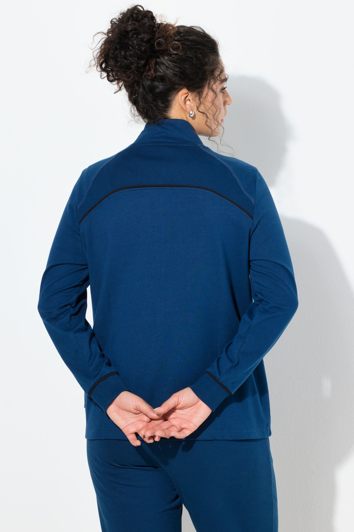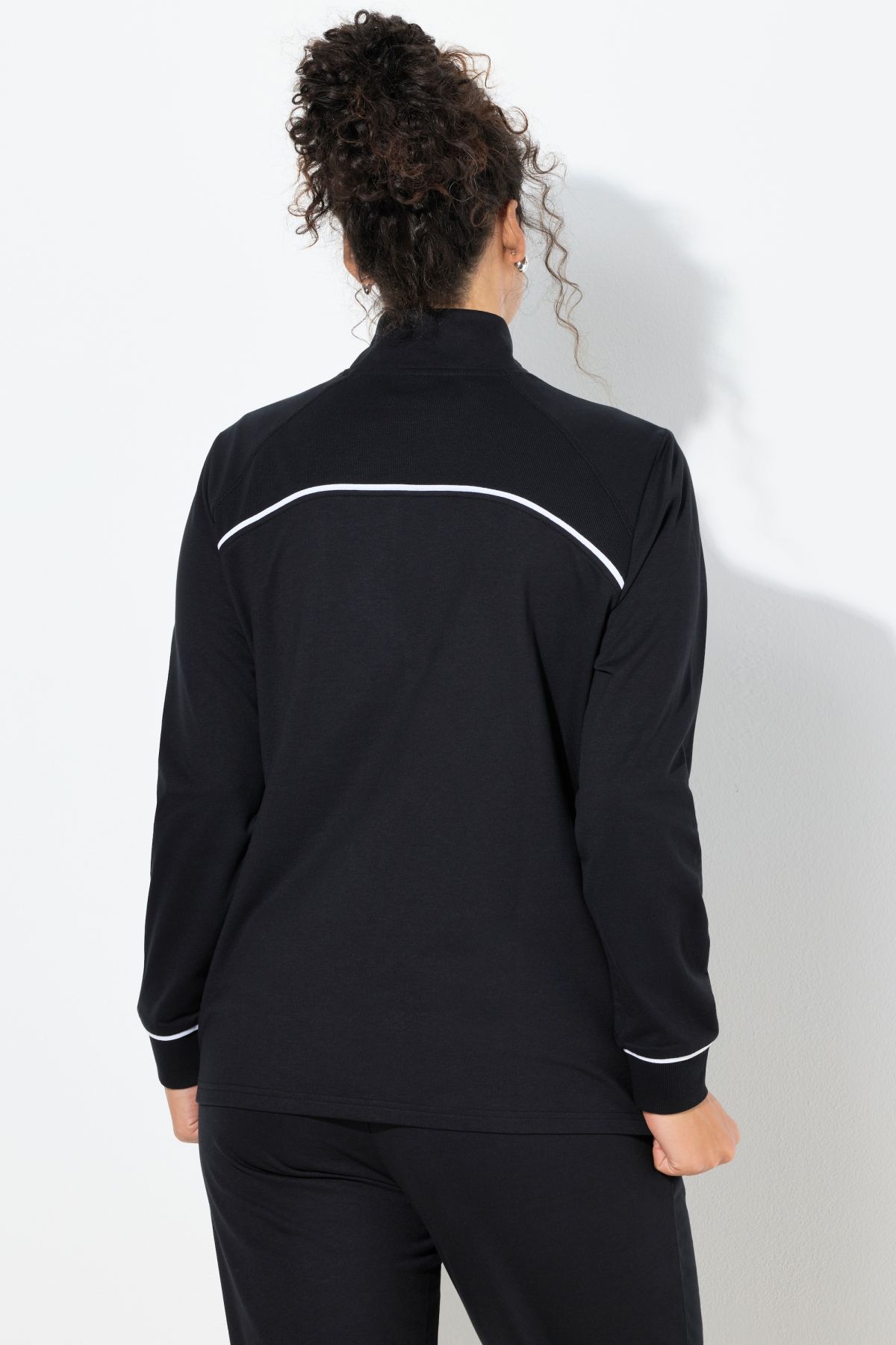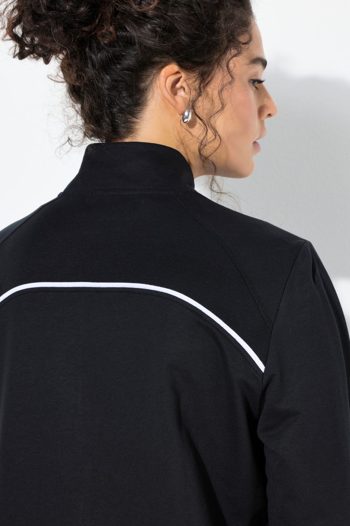 Мек суитшърт с оребрени вложки, изправена яка, спортна, удобна кройка с цип, дълги ръкави с оребрени маншети, OEKO-TEX, дължина, регулирана по размер, приблизително 68-76 см.