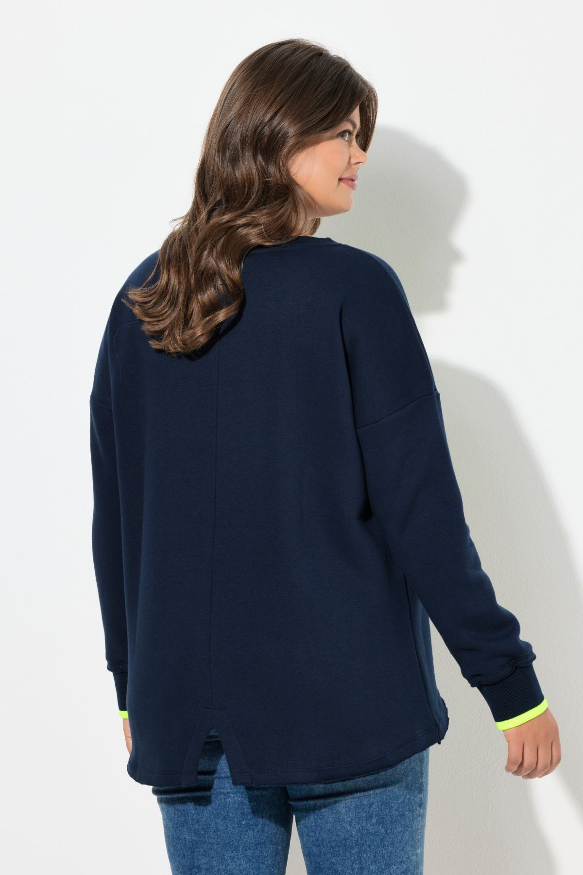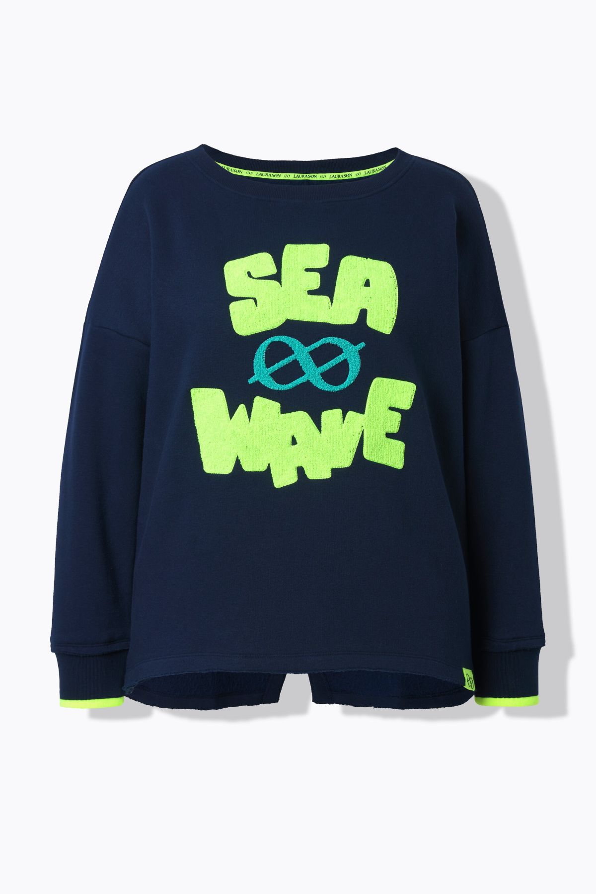 Суитчър с морски принт и надписи. С широко кръгло деколте и дълги ръкави. От мека, комфортна материя