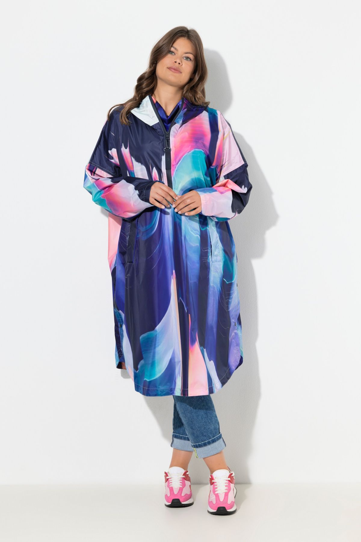 Дъждобран с принт на Laurason. Унисекс модел с качулка, водонепромокаем (5000 mm воден стълб), ветроустойчив и дишащ (5000 g/m²/24h). С паднали рамене, дълги ръкави с велкро лепенки, 2 странични джоба.