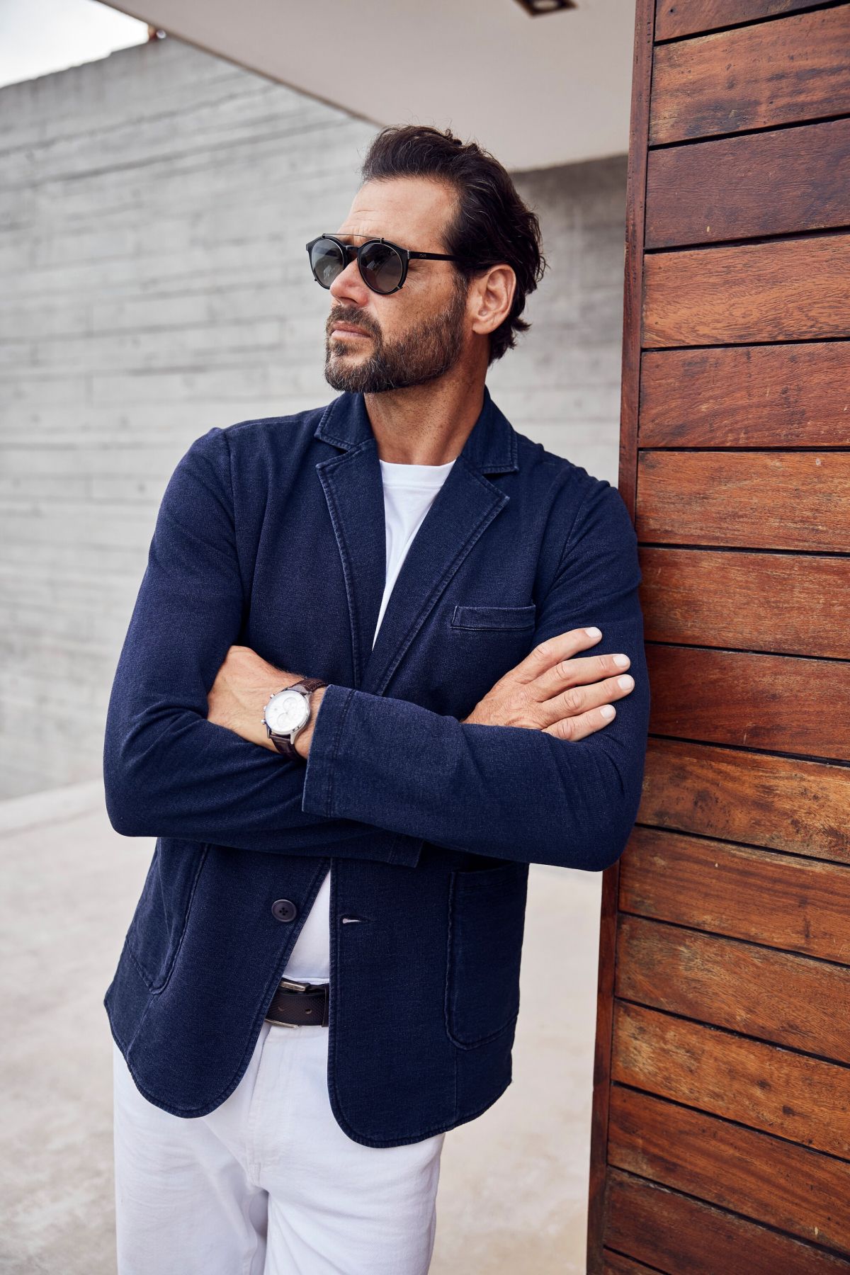 Суитчър в индигов цвят с ежедневен силует от висококачествена материя. С винтидж визия, ревери на яката и копче. Джоб на гърдите и цепка на гърба.