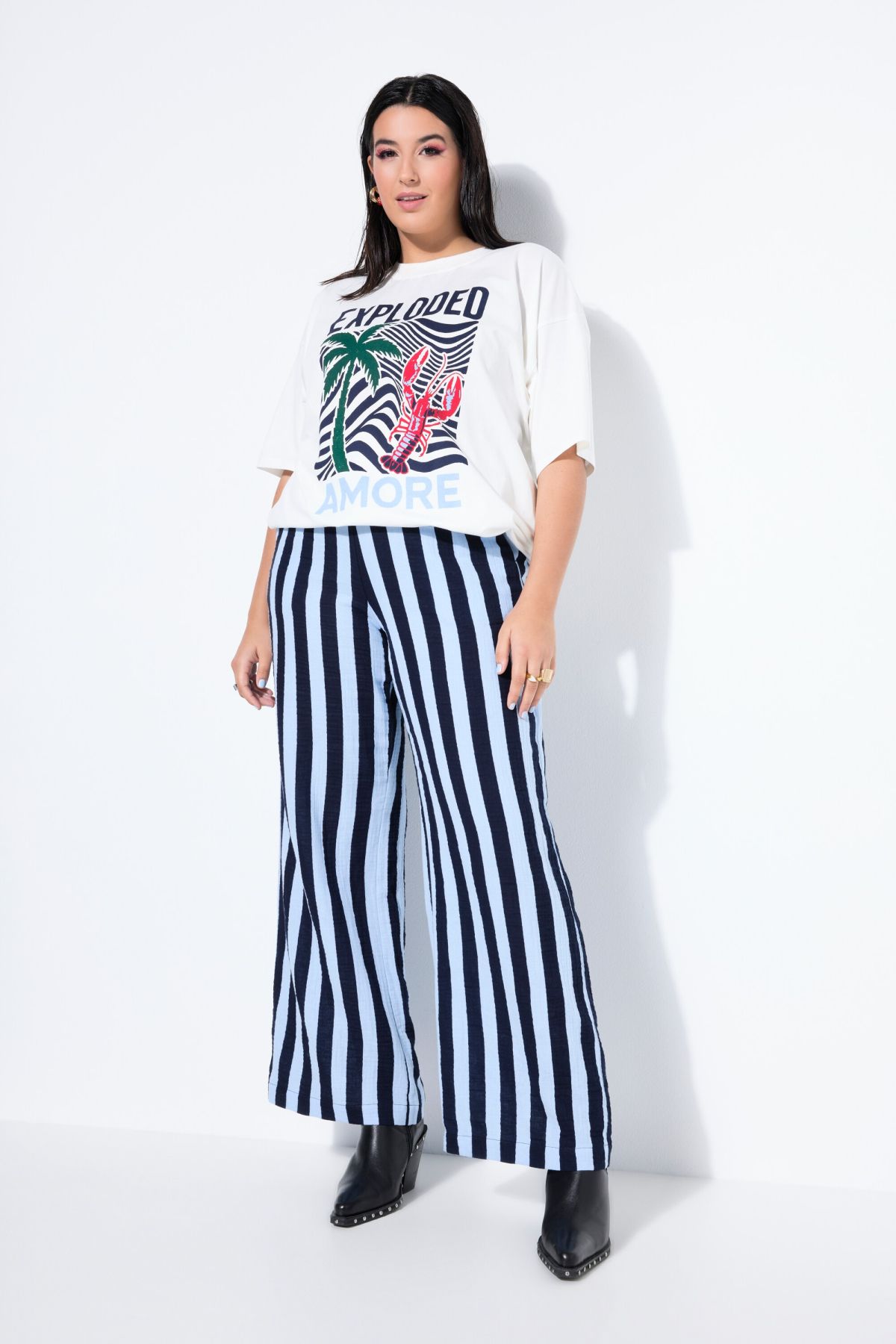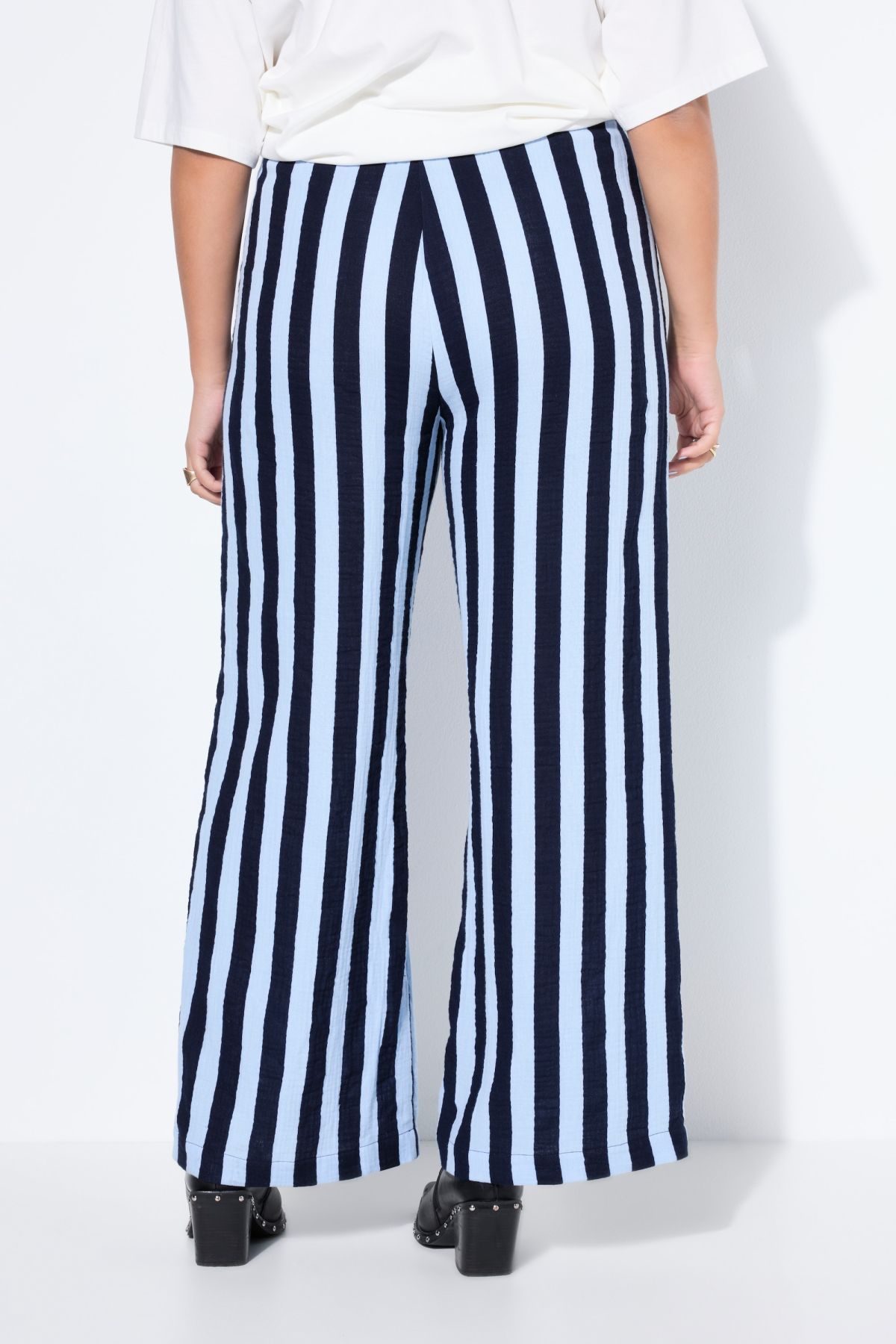 Панталон от муселин с принт на райета. С еластична талия и странични джобове. Мек, памучен и прохладен.
