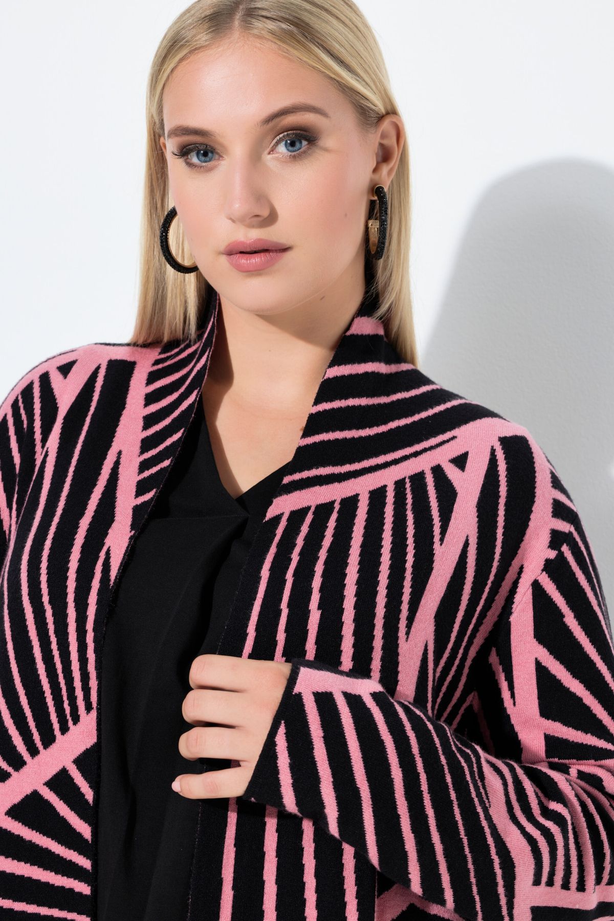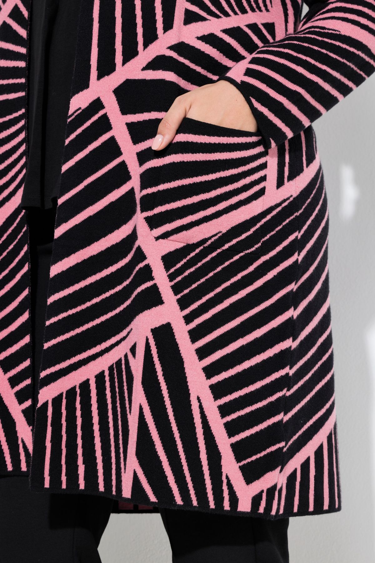 Жилетка с модерен микс от райета. Перфектният избор за офиса. Отворена отпред с дълги ръкави. От фина мека плетка.